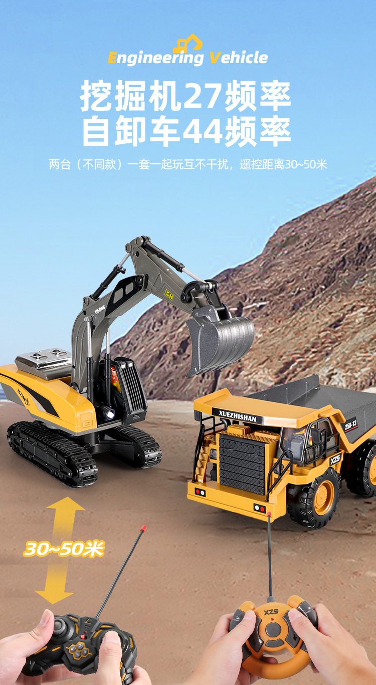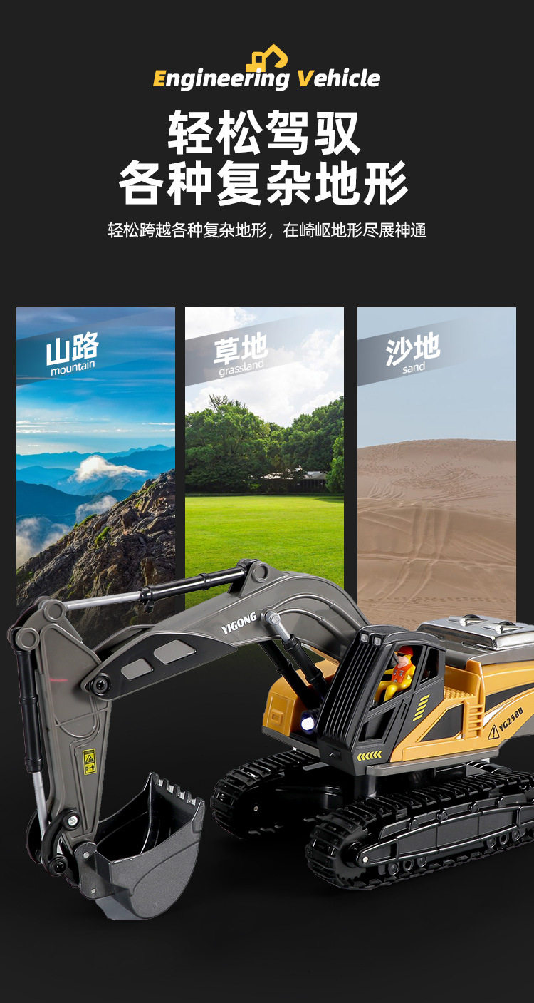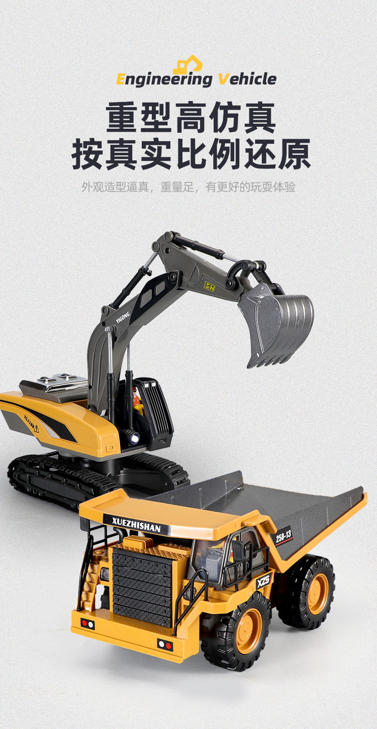 Cross-Border Alloy Remote Control Engineering Vehicle 2.4g Wireless Excavator Bulldozer Dump Truck Shovel Truck Earth Digger Children's Toy
