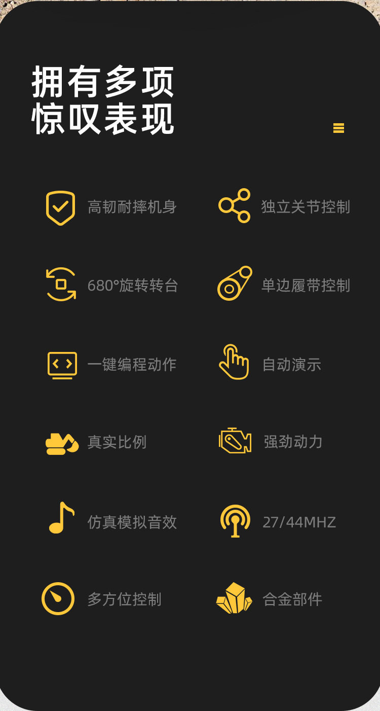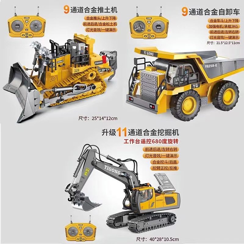 Color Classification Remote Control Excavator (6 Control Instructions) Alloy Model,White - 2.4g Remote Control Excavator (6 Control Commands) - Alloy Model,Remote Control Excavator (8 Control Instructions) Alloy Model,Remote Control Dump Truck (Handle Round Remote Control) Alloy Model,Large Remote Control Excavator (Handle with 11 Control Instructions) Plastic Model,Large Remote Control Excavator (Handle with 11 Control Instructions) Alloy Model,Remote Control Bulldozer (Handle with 9 Control Instructions) Plastic Model,Remote Control Bulldozer (Handle with 9 Control Instructions) Alloy Model,Yellow - Large Square Remote Control Excavator (11 Control Commands),Green - Large Square Remote Control Excavator (11 Control Commands),White - Large Square Remote Control Excavator (11 Control Commands),Yellow - Square Remote Control Bulldozer (9 Control Commands),Yellow - Square Remote Control Dump Truck (9 Control Commands),White - Square Remote Control Dump Truck (9 Control Commands),Yellow - Square Remote Control Forklift (9 Control Instructions),6-Channel Gray Alloy Excavator