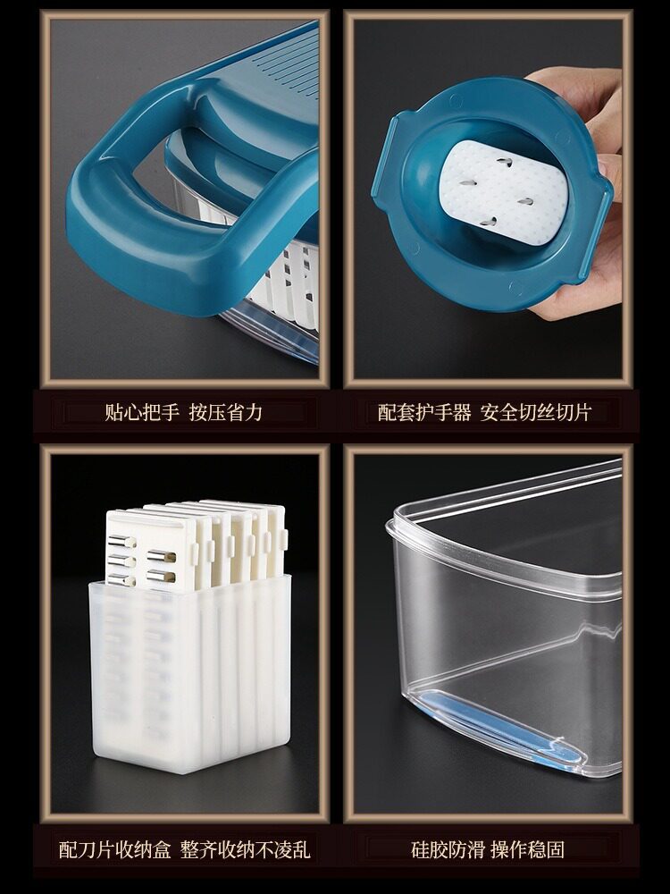 Sort by color Vegetable cutter (grey),Vegetable cutter (blue),Drum storm vegetable cutter white,Drum storm vegetable cutter beige,Curly hand grater,Multifunctional dicing machine,New storm vegetable cutter,Gray grater with handle,Green grater with handle,Hand push vegetable cutter (five blades)
