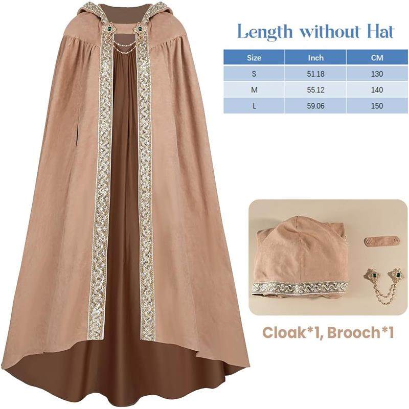 Medieval Hooded Cloak Cape Coat Robe Cosplay Props Npc Costumes Viking Nordic Retro for Men and Women