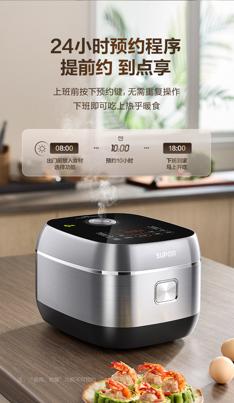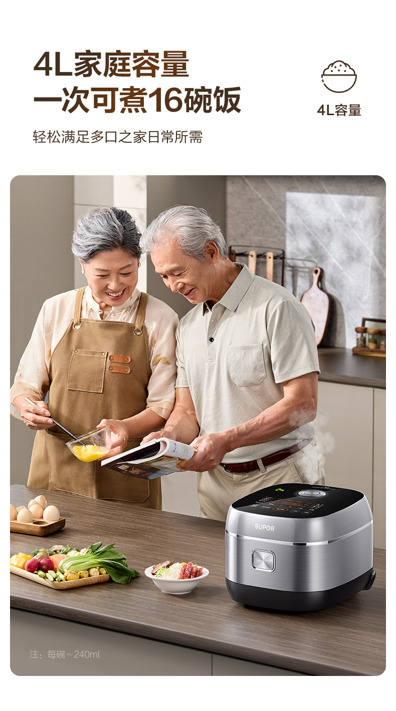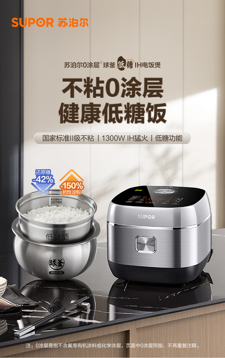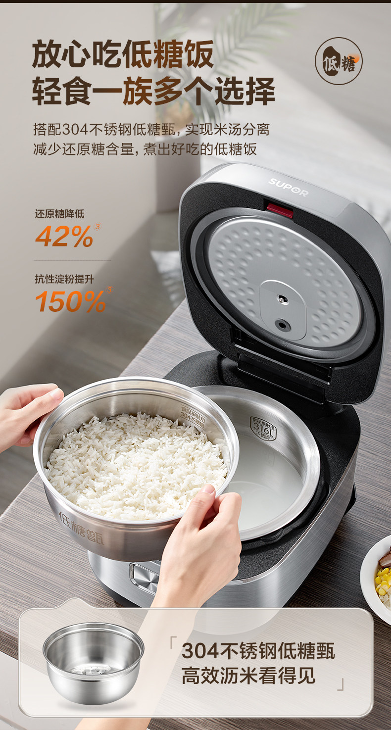 Supor Low-Sugar Rice Cooker with Rice Soup Separation, Steaming Rice Pot, Ih Ball Kettle, 0 Coating, 316L, Official Genuine Product