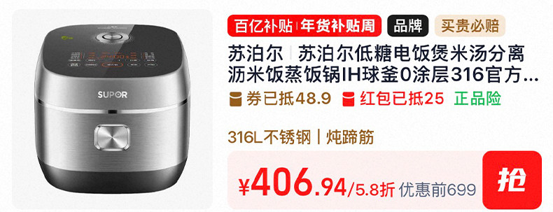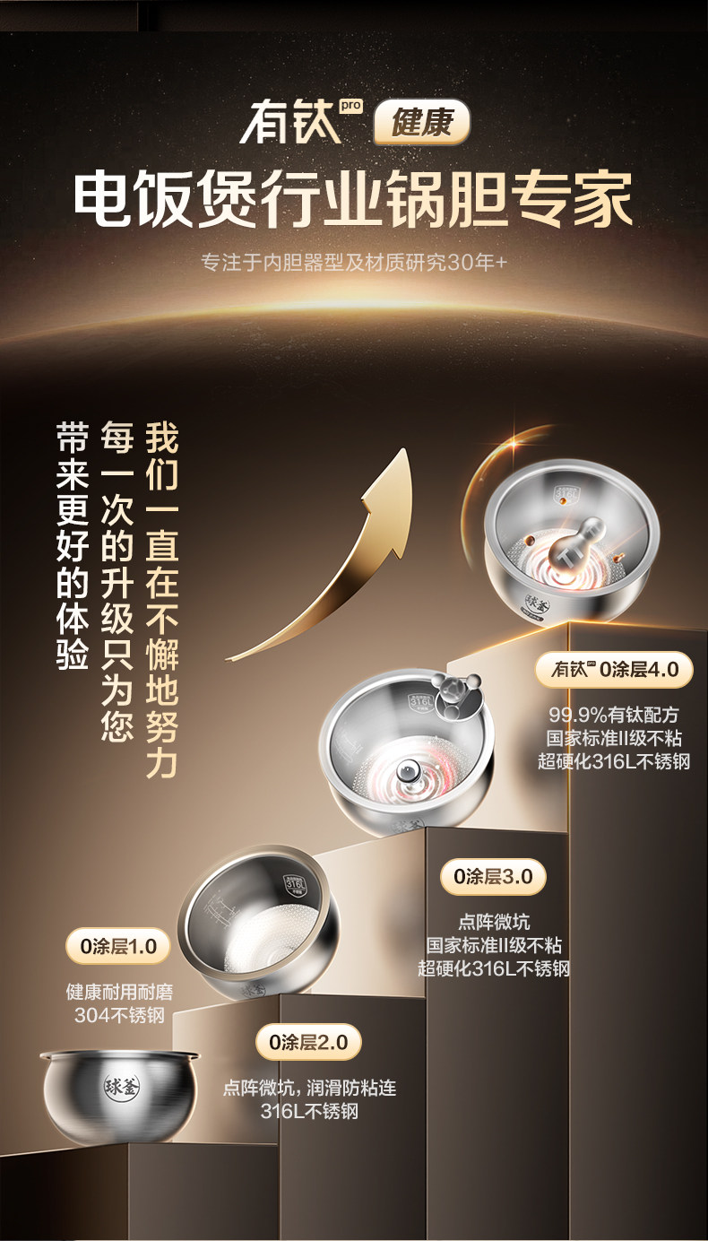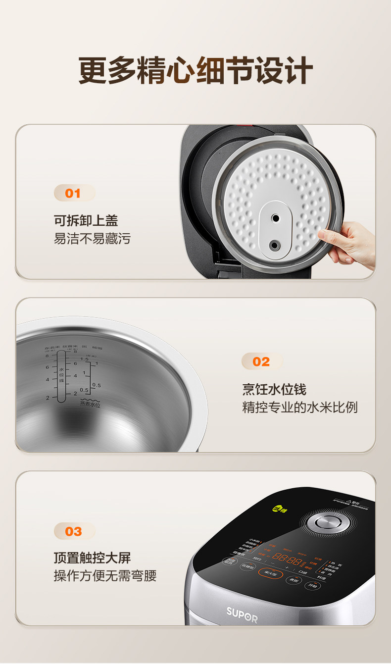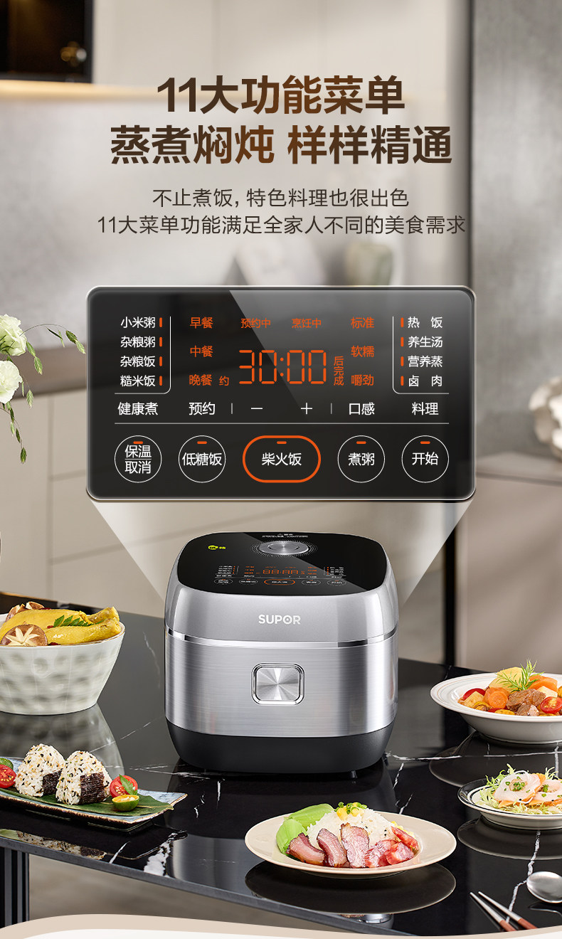 Supor Low-Sugar Rice Cooker with Rice Soup Separation, Steaming Rice Pot, Ih Ball Kettle, 0 Coating, 316L, Official Genuine Product