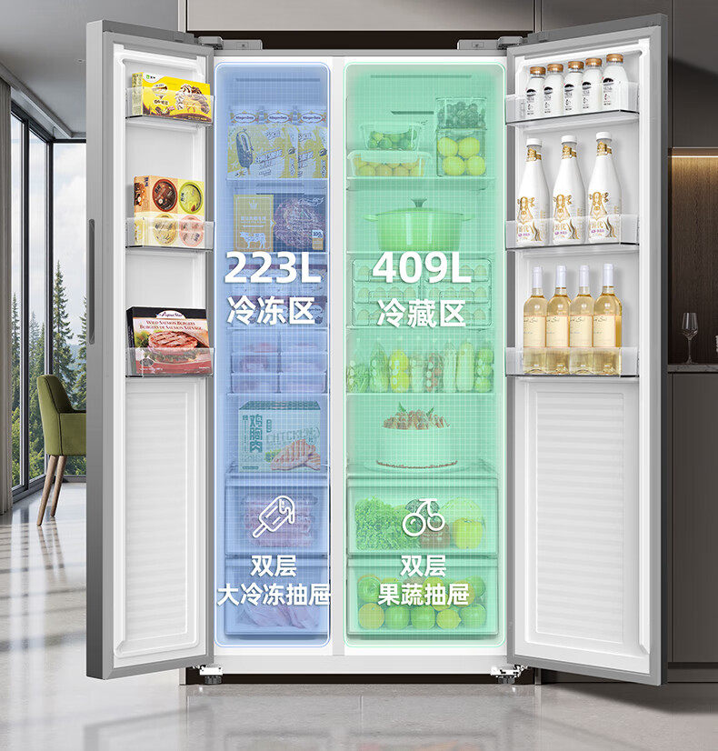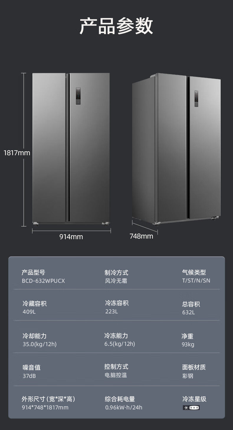 Meiling 632-Liter Side-By-Side Frost-Free Refrigerator with Inverter Technology Bcd-632Wpucx