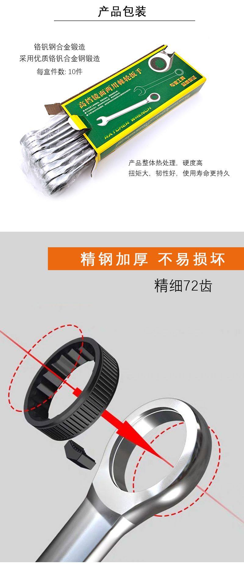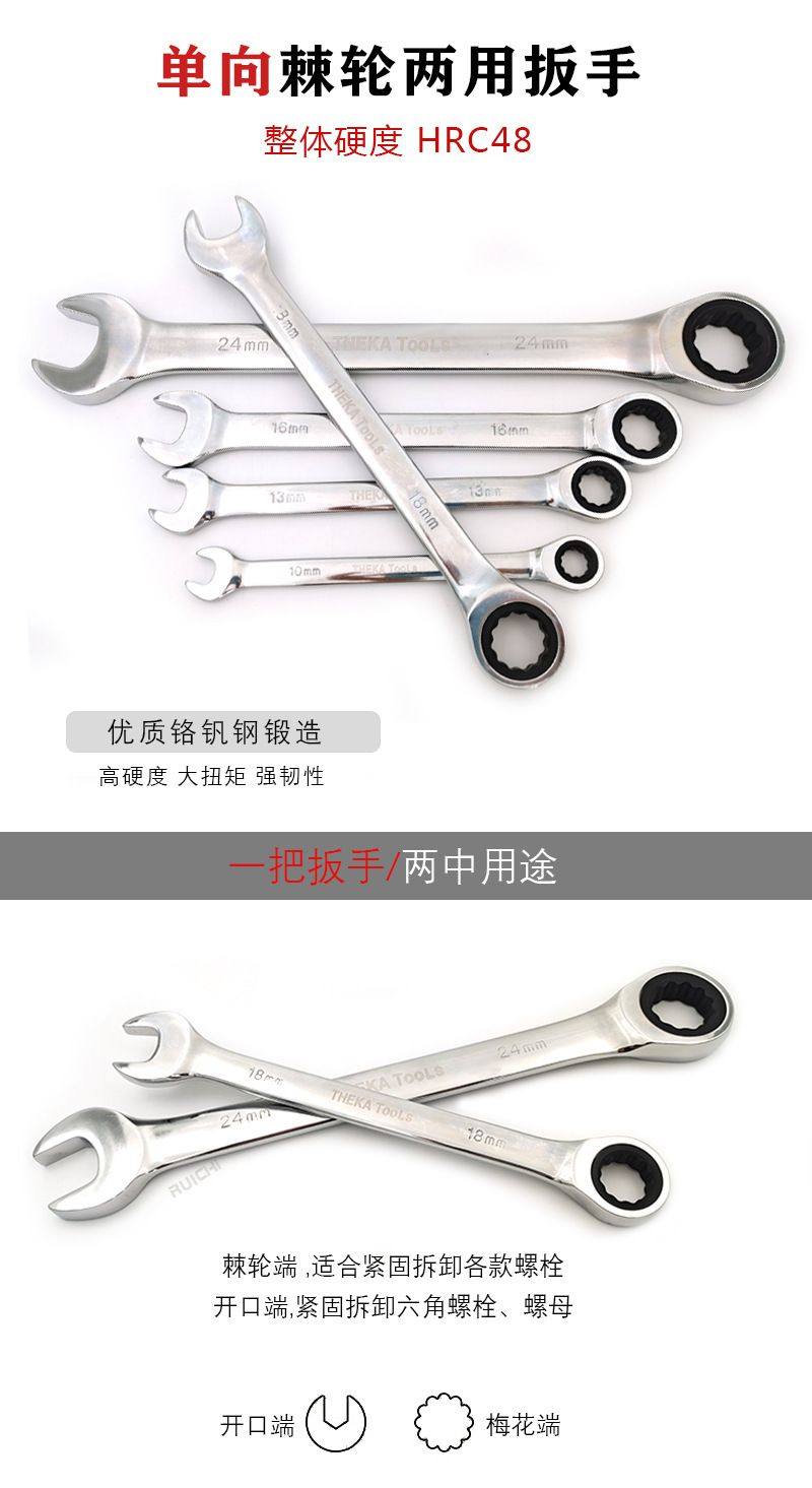 German Imported Technology 72-Tooth One-Way Quick-Release Ratchet Wrench Automatic Dual-Purpose Wrench Open-End Ratchet Wrench
