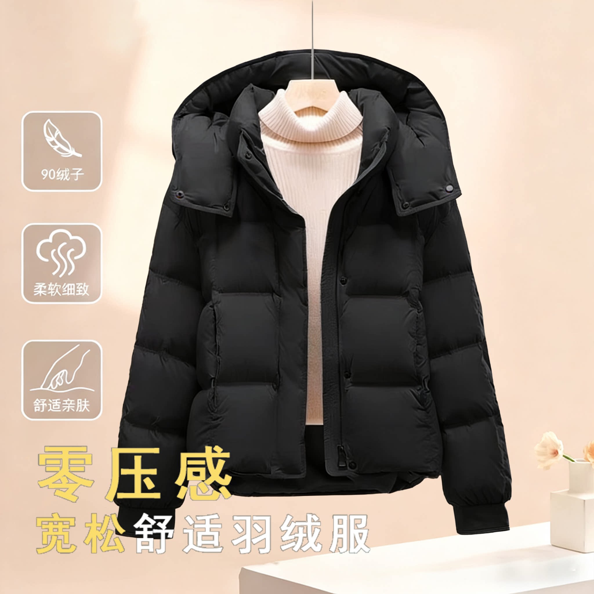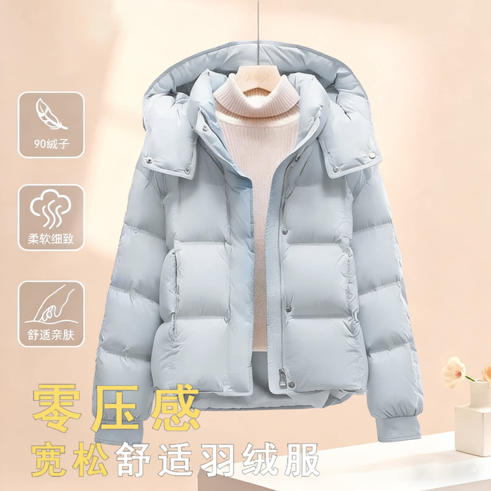 Yalu 90 white duck down jacket women's short winter new hooded solid color warm light luxury foreign style high-end jacket