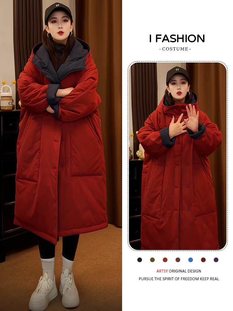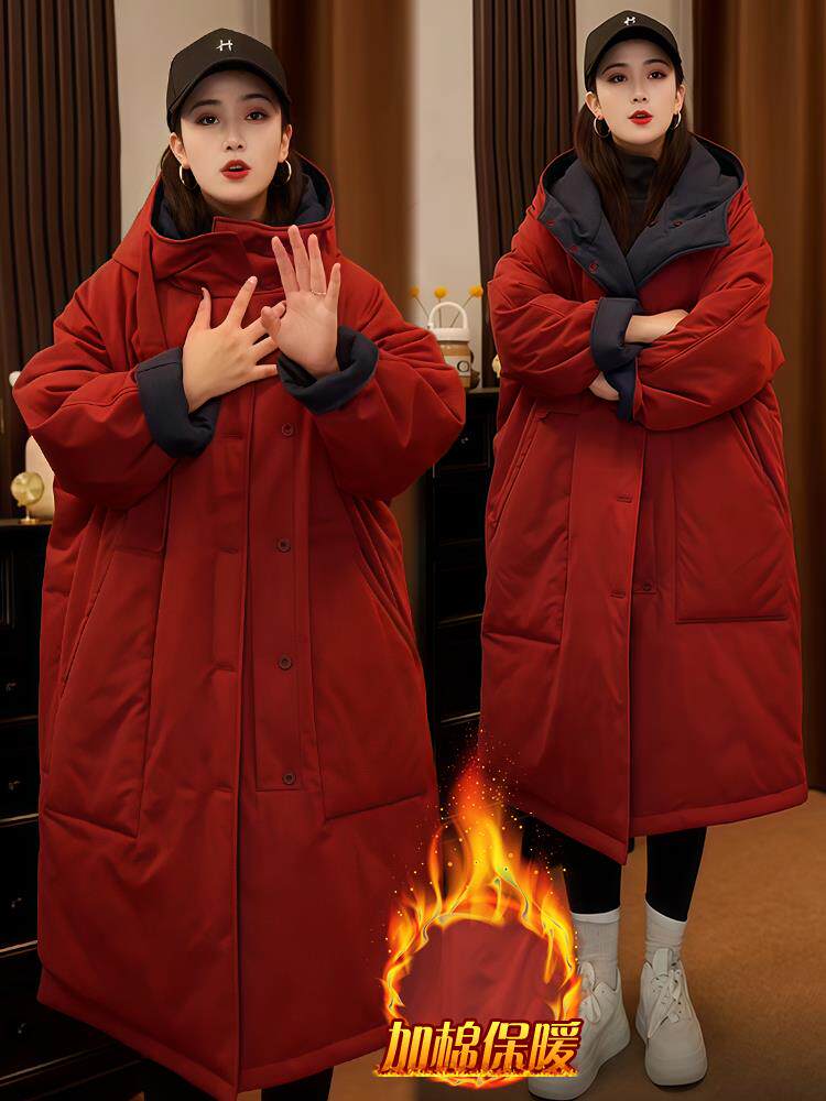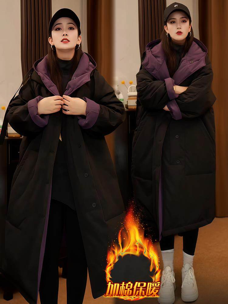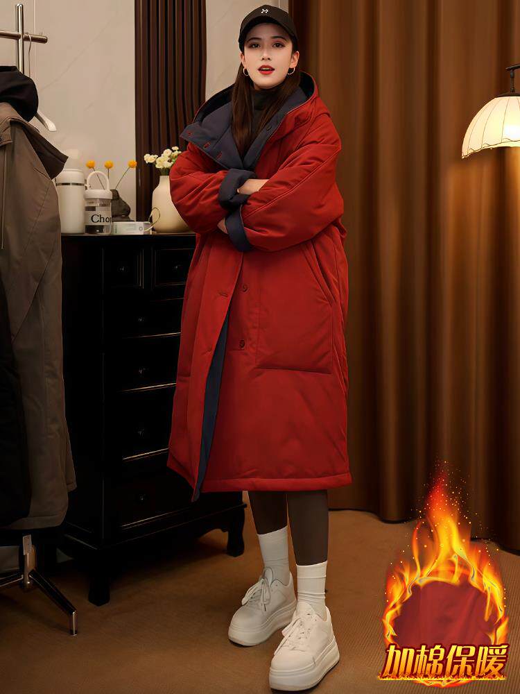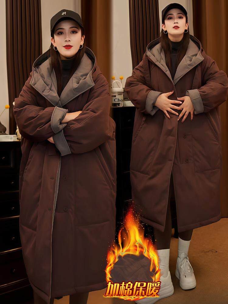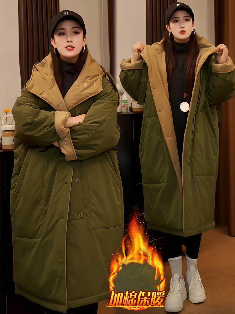 2025 new winter women's fashionable and slim mid-length coat thickened loose warm jacket cotton coat trendy