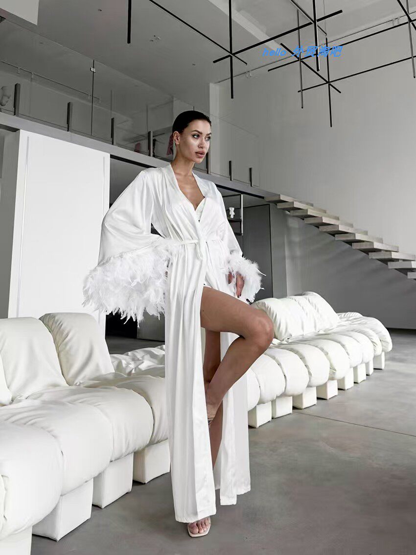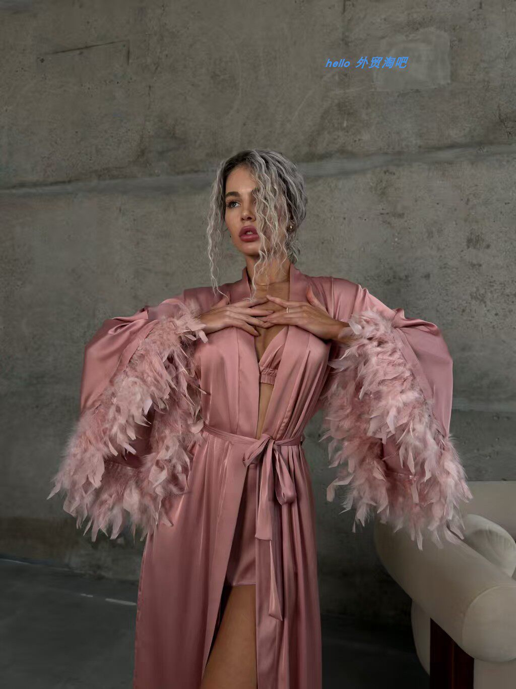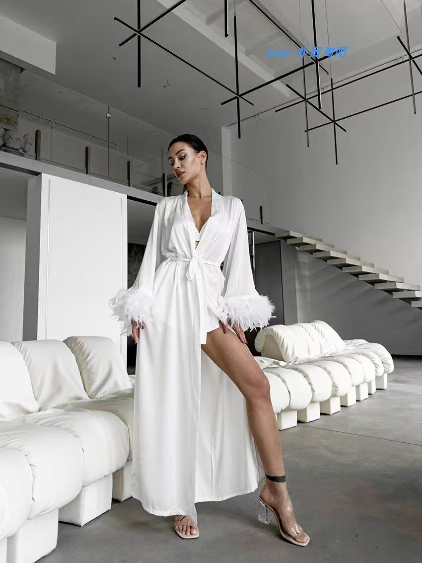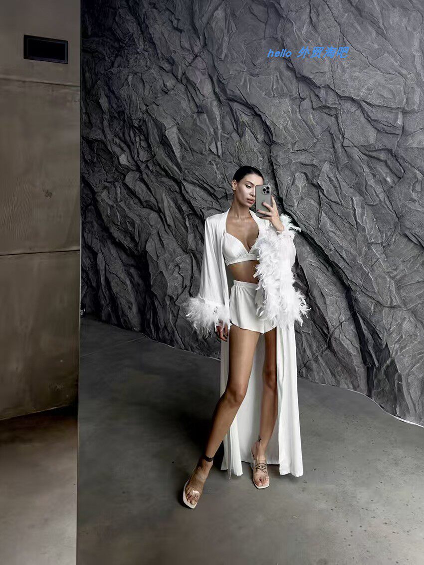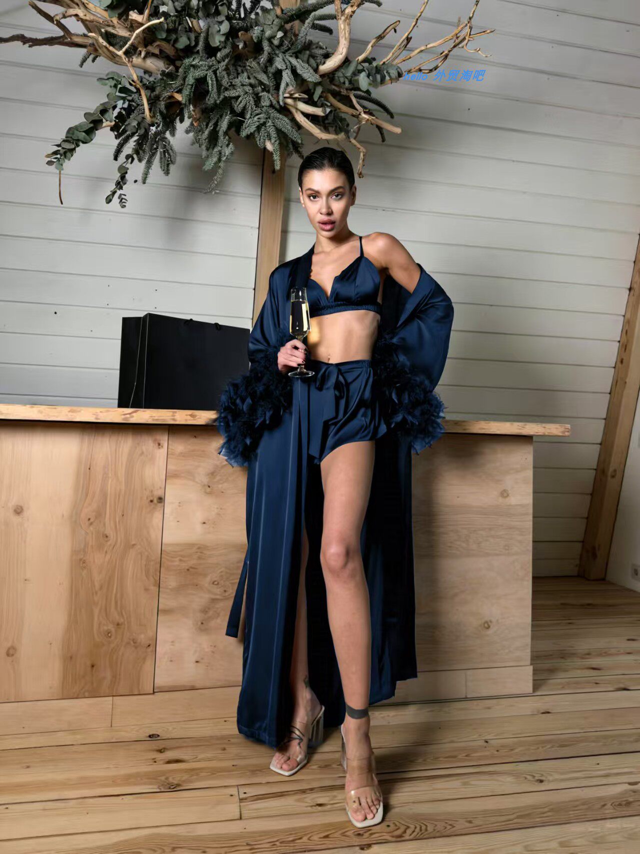 European and American style sexy satin robe underwear shorts three piece home suit Three piece home suit