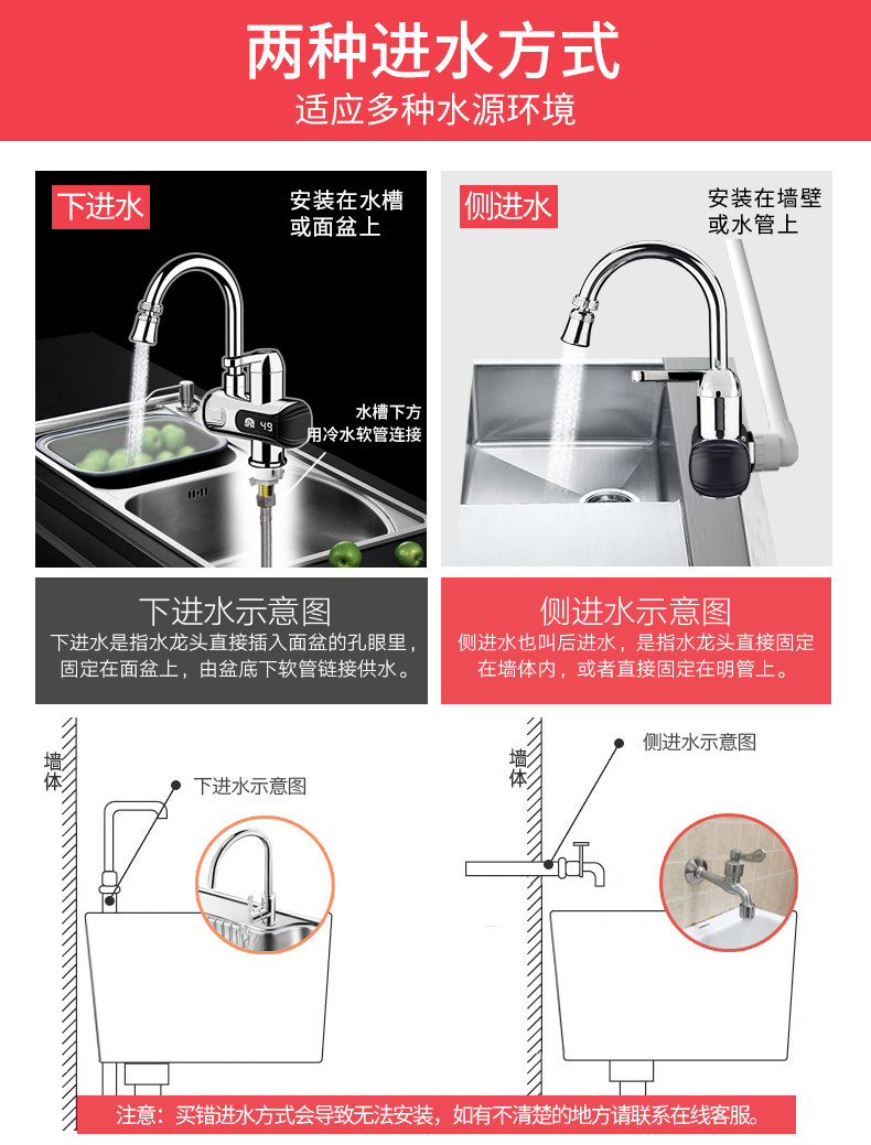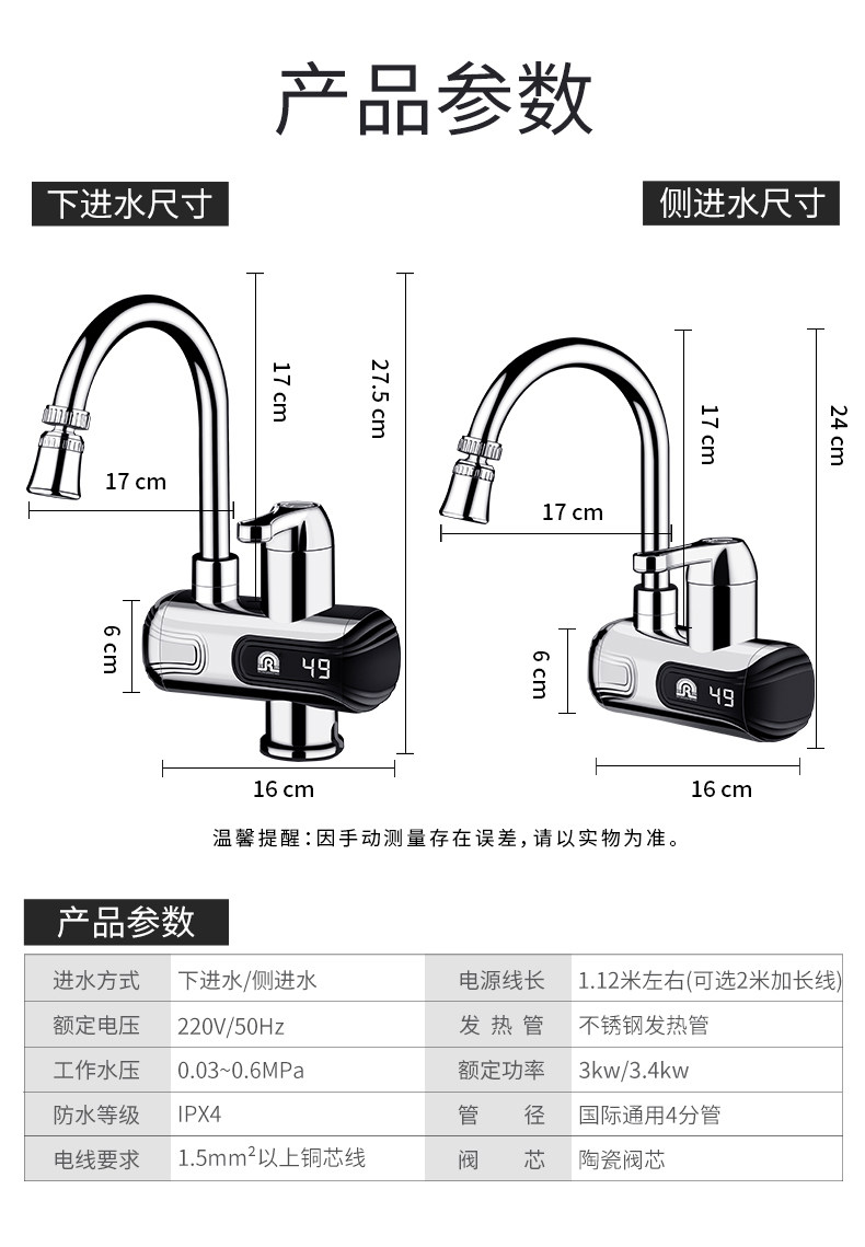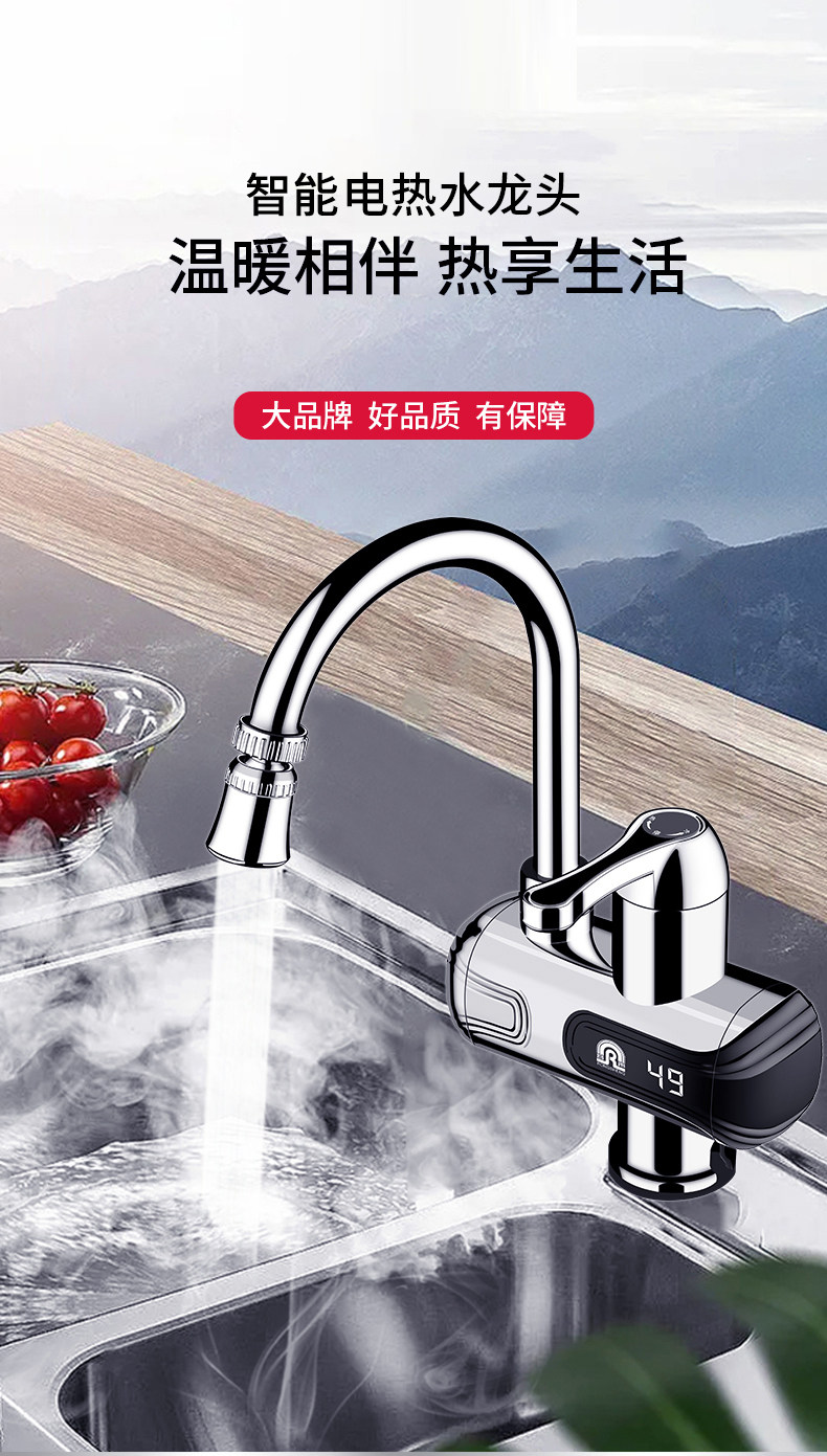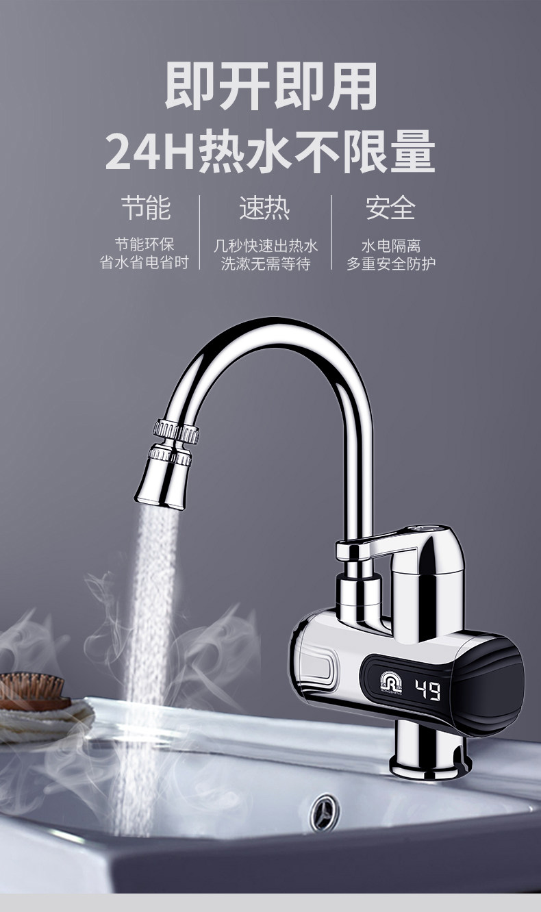Electric hot water faucet side inlet kitchen instant hot water overflow heat capacity sound small heater bathroom
