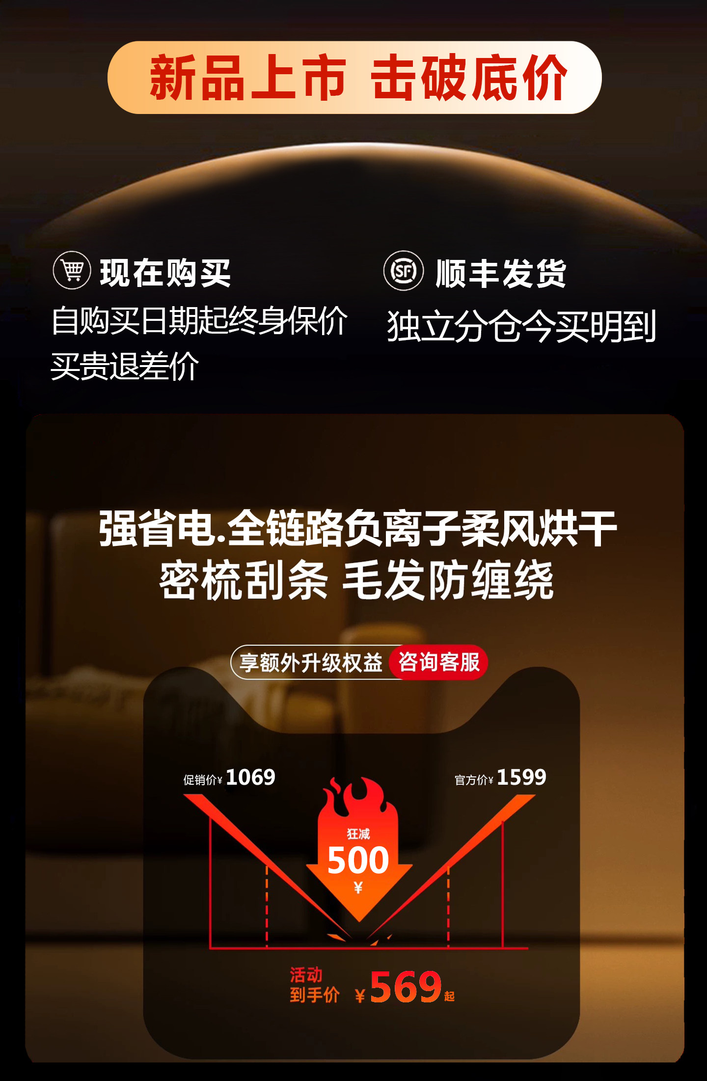 Sort by color Deluxe version 230000 whale suction + 20 core imported brushless motor,Standard version 230000 whale suction + 20 core imported brushless motor,Exclusive version 260000 whale suction + 22-core imported brushless motor + electrolytic sterilization + super long standby,Clean version can lie flat + 300000 whale suction + 26-core imported brushless motor + electrolytic sterilization + anti-hair tangle,Intelligent version can lie flat + 320000 whale suction + 28-core imported brushless motor + electrolytic sterilization + tooth comb anti-tangle + ion soft drying,Intelligent clean version can lie flat + 360000 whale suction + 30-core imported brushless motor + electrolytic sterilization + tooth comb anti-tangle + full chain ion soft drying