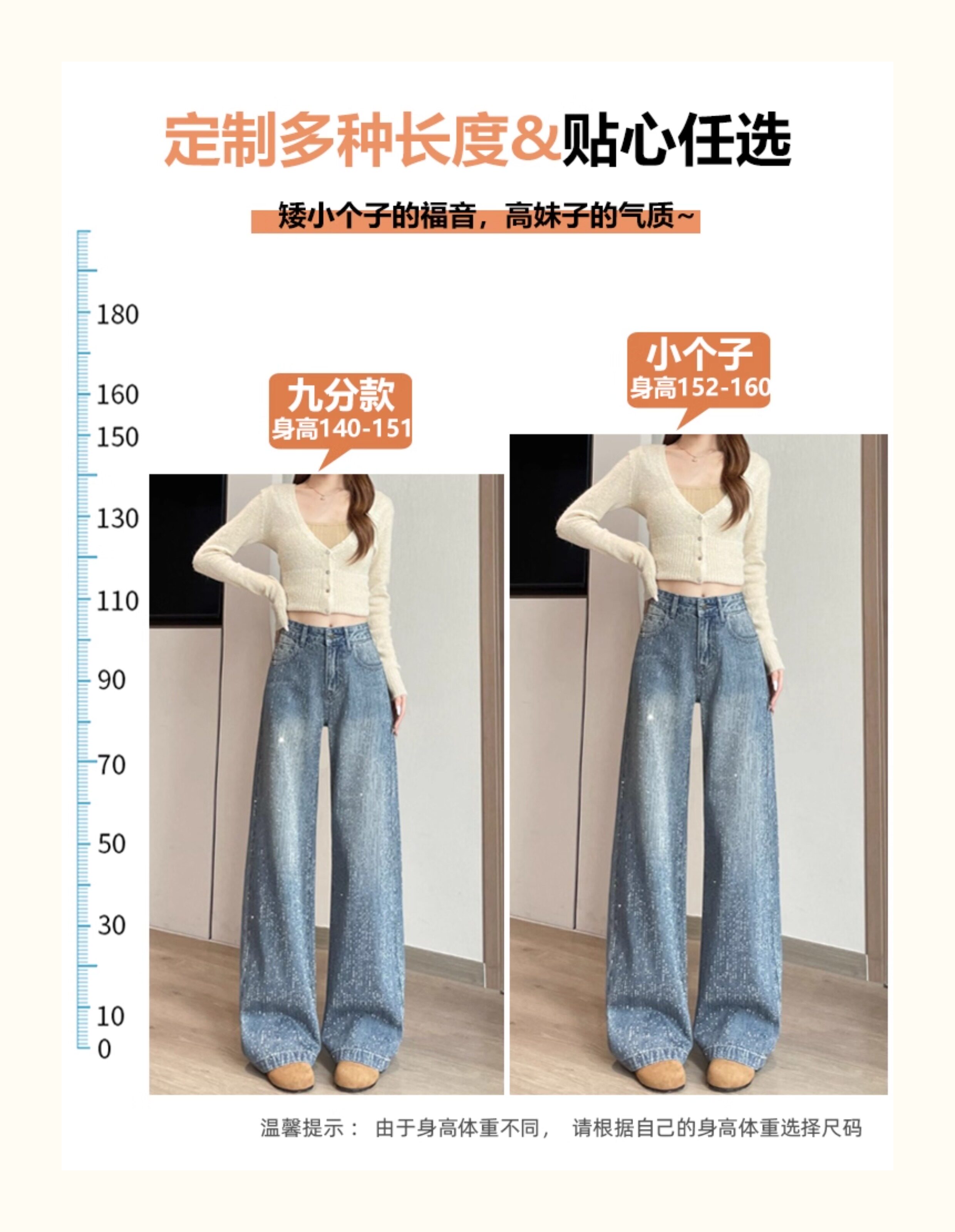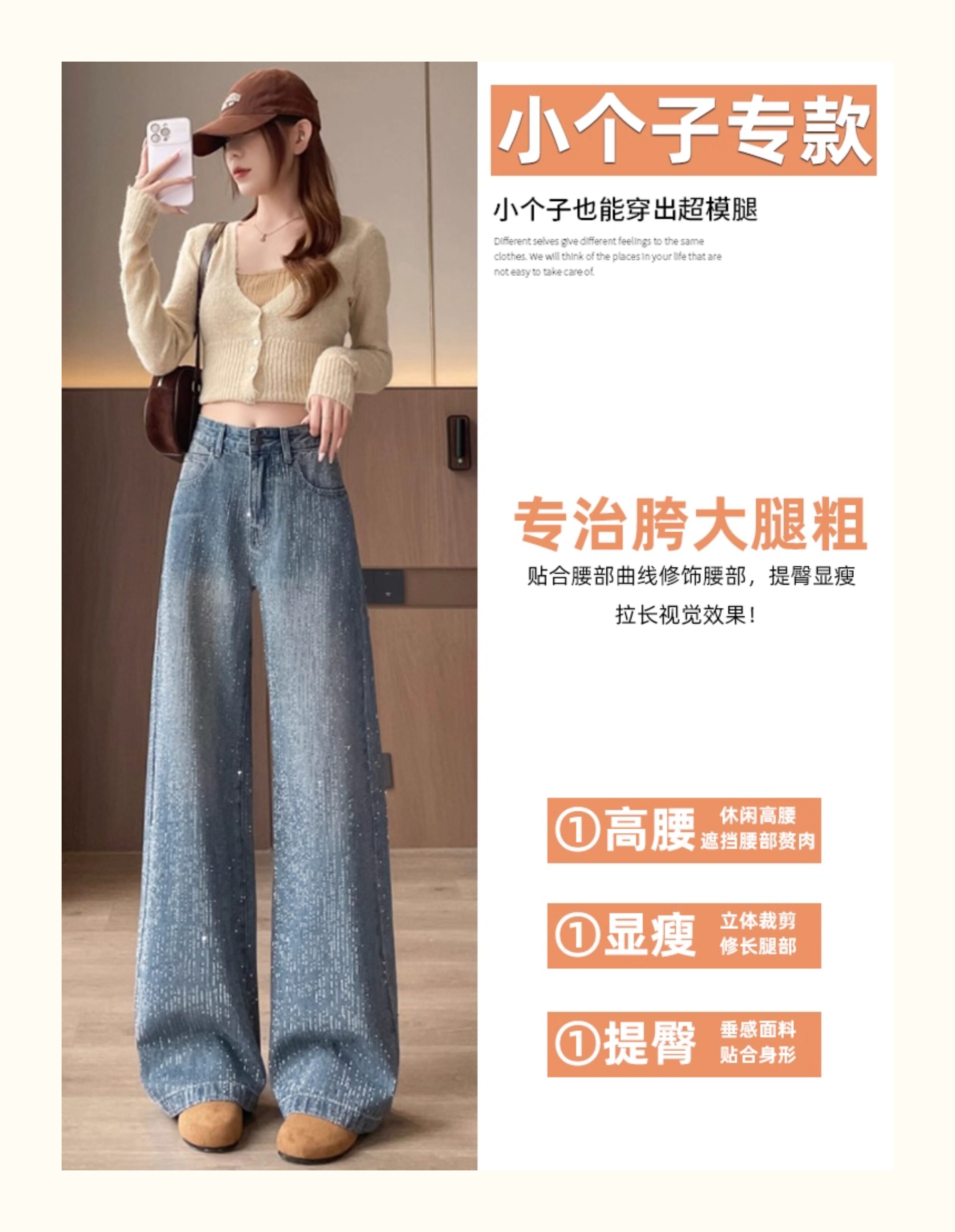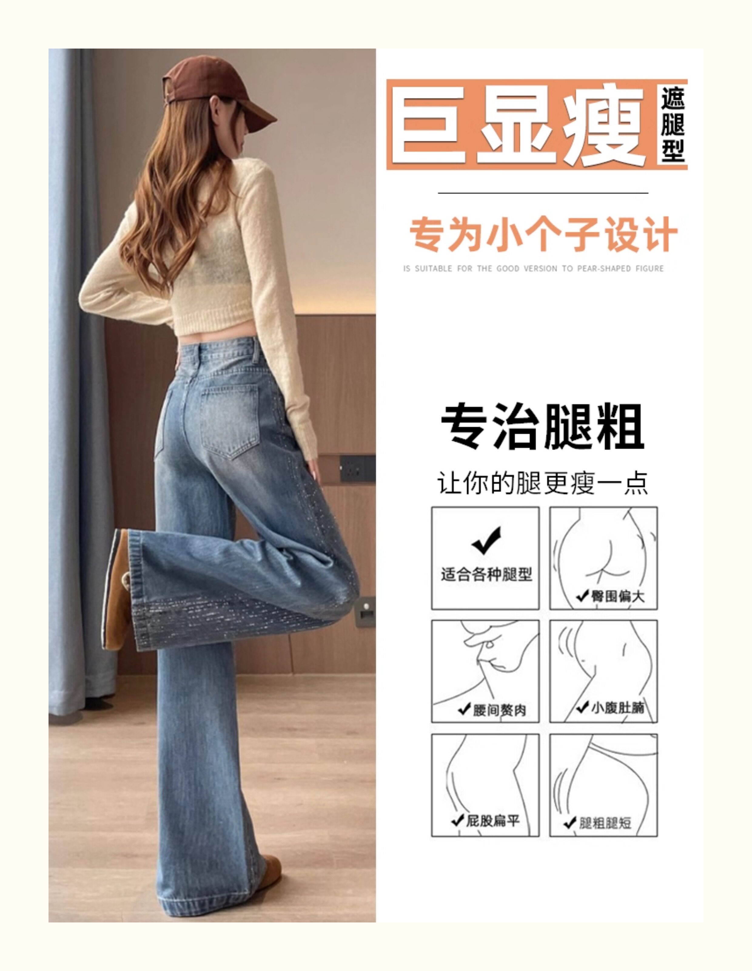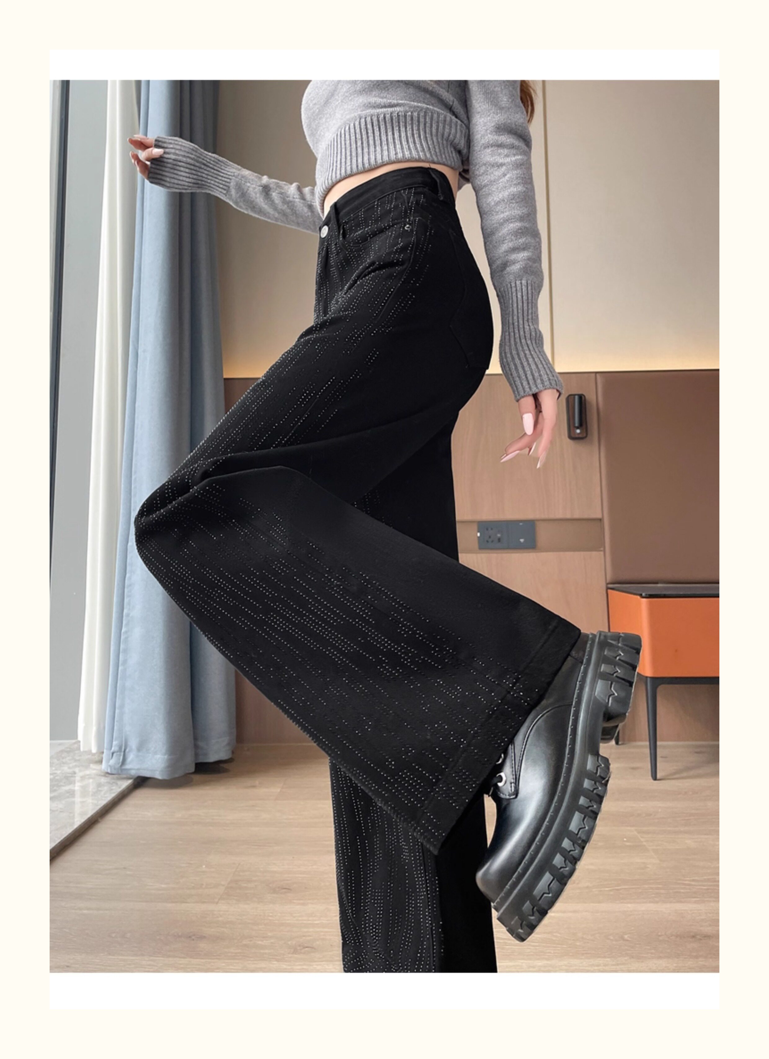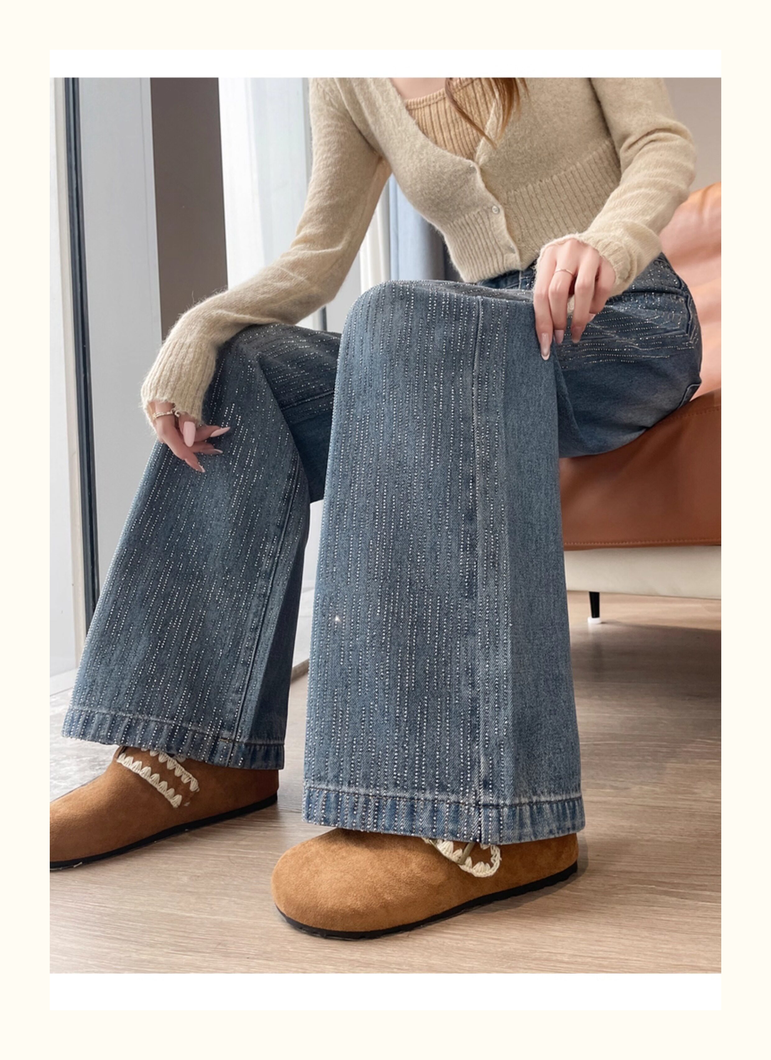 Gypsophila hot diamond jeans for women in autumn and winter plus velvet high waist 150 small people this year's popular huge good-looking wide leg pants