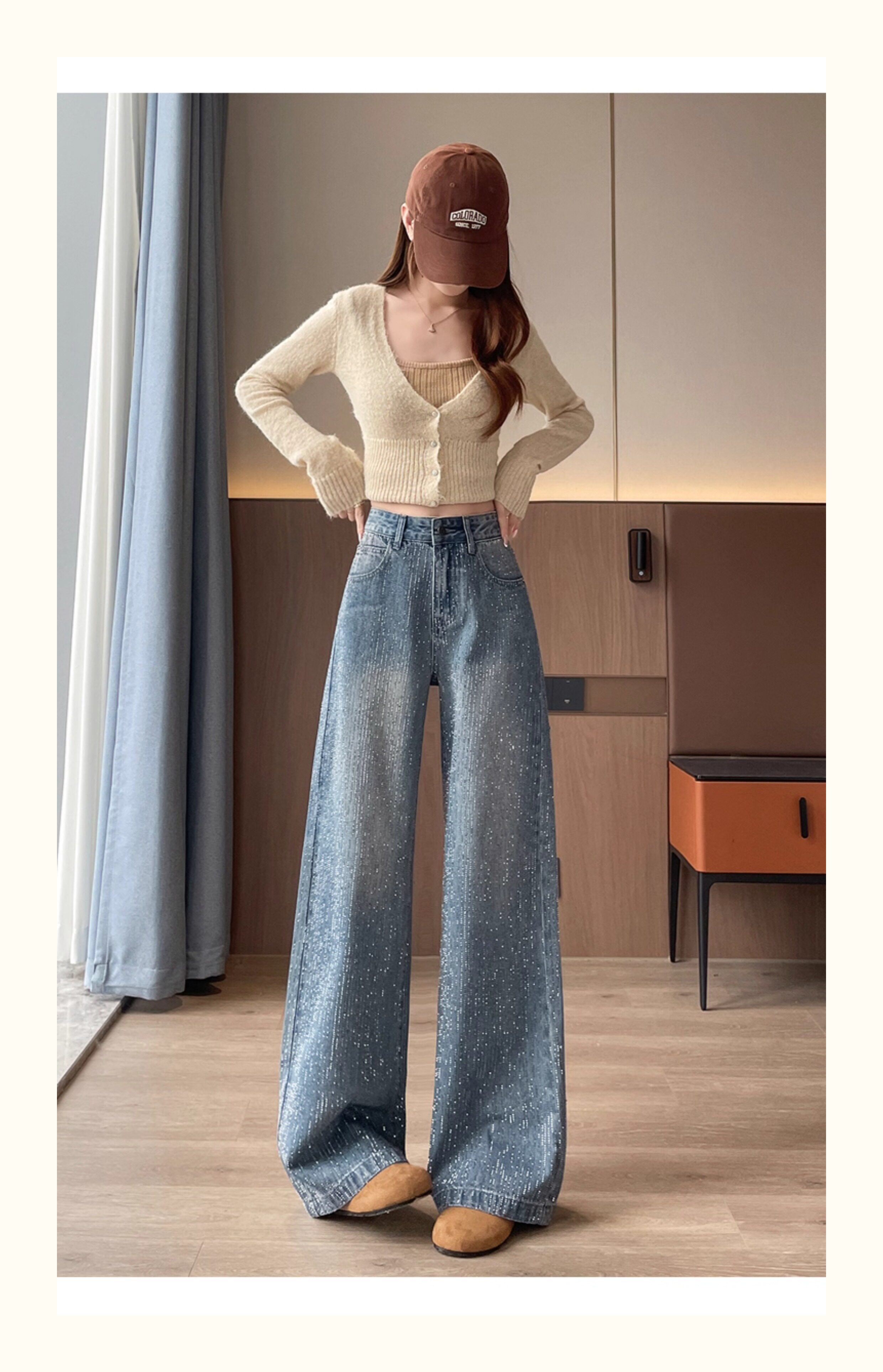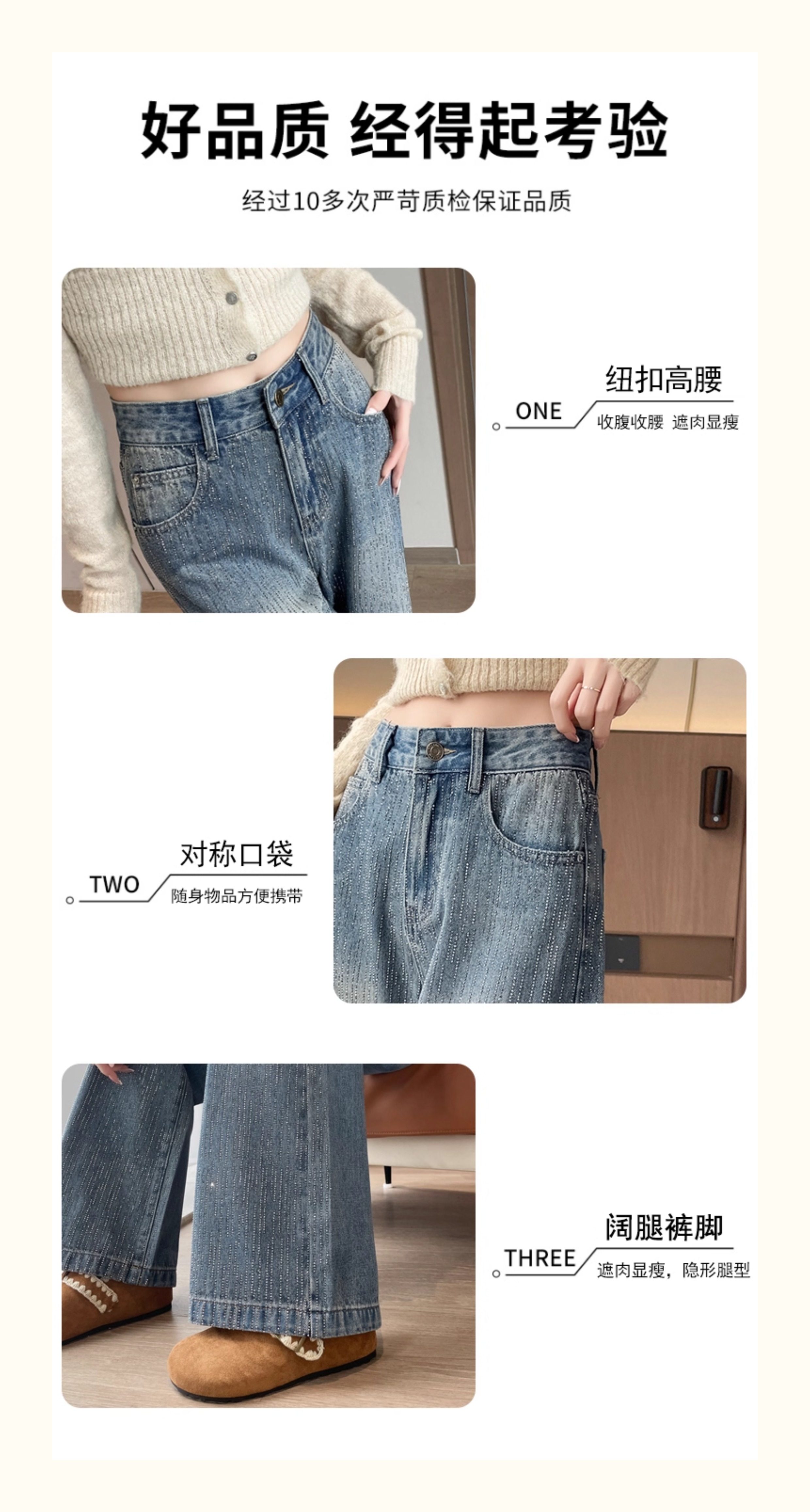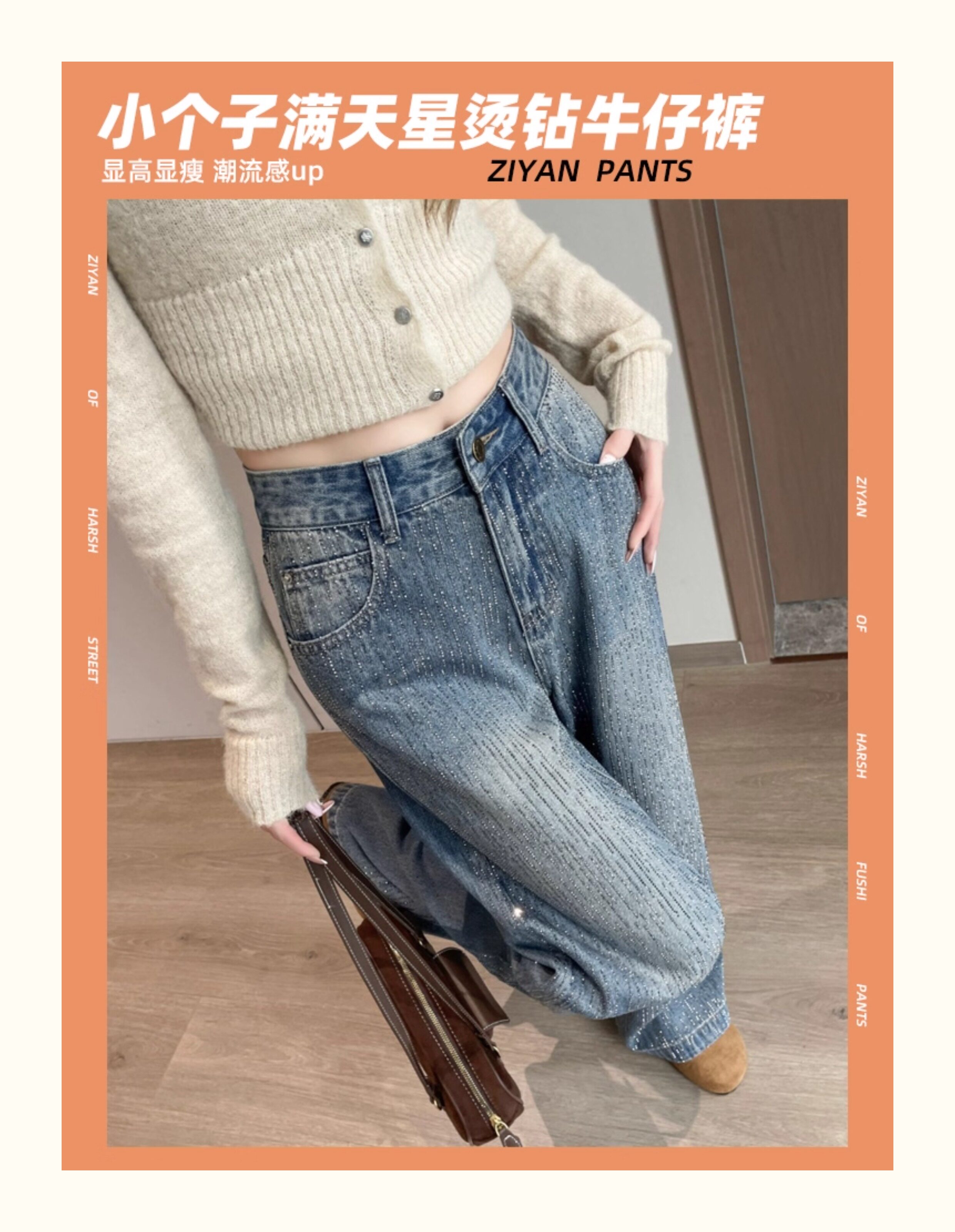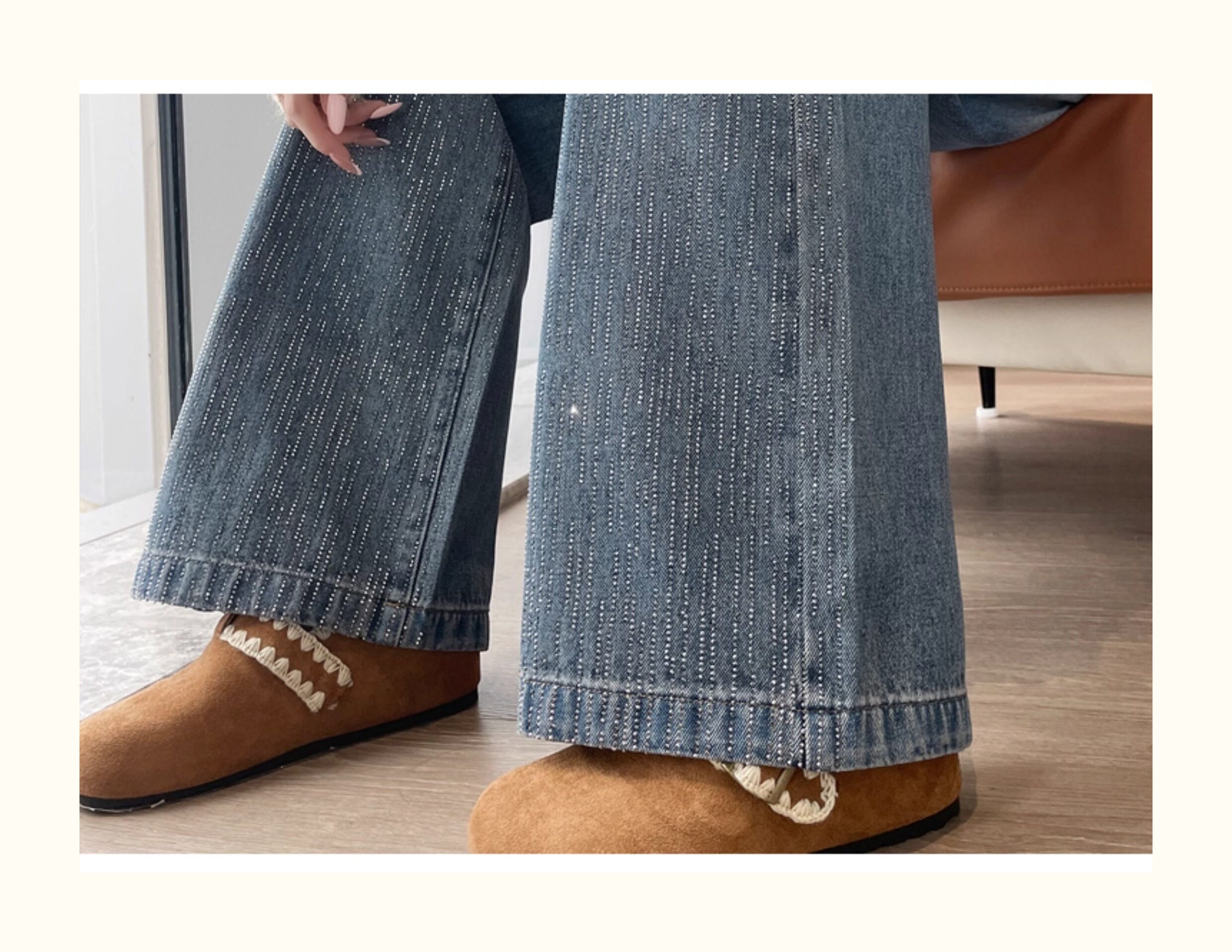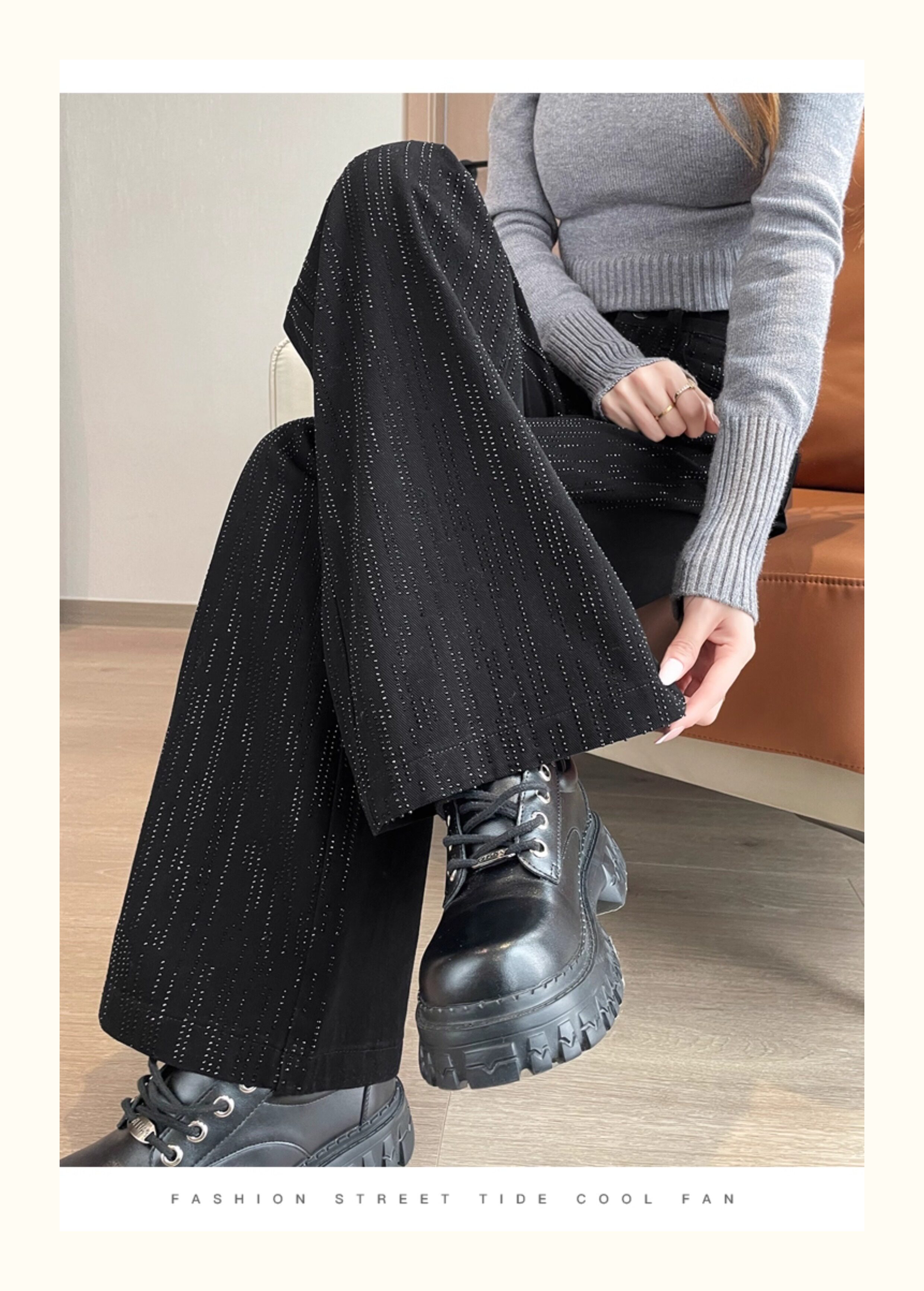 Gypsophila hot diamond jeans for women in autumn and winter plus velvet high waist 150 small people this year's popular huge good-looking wide leg pants