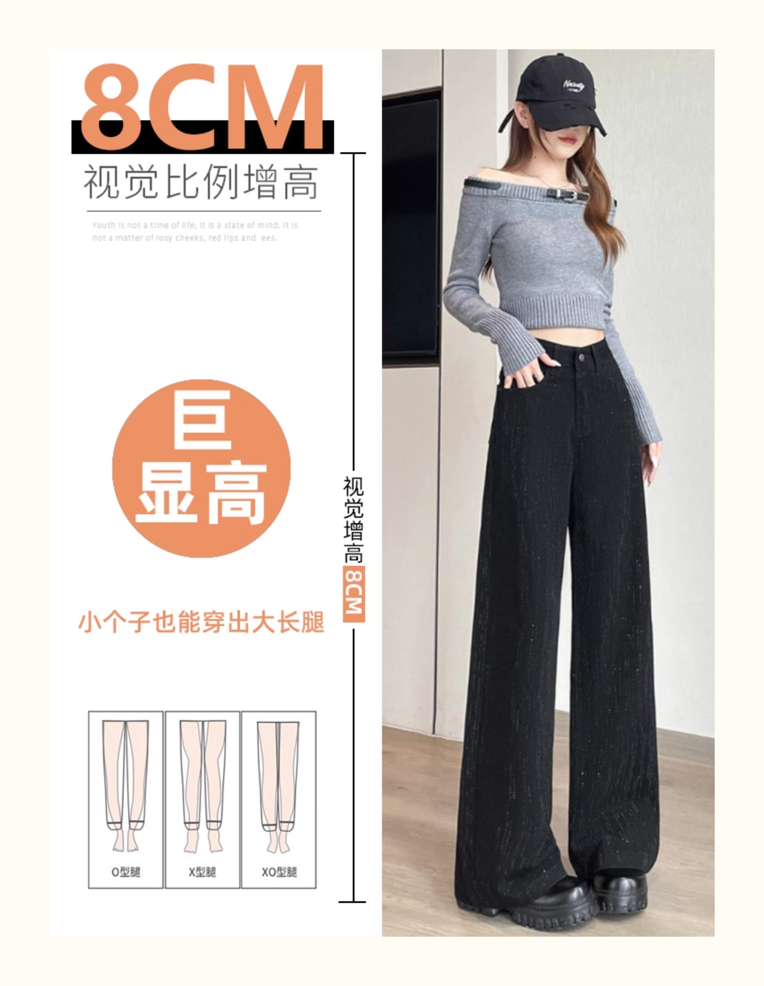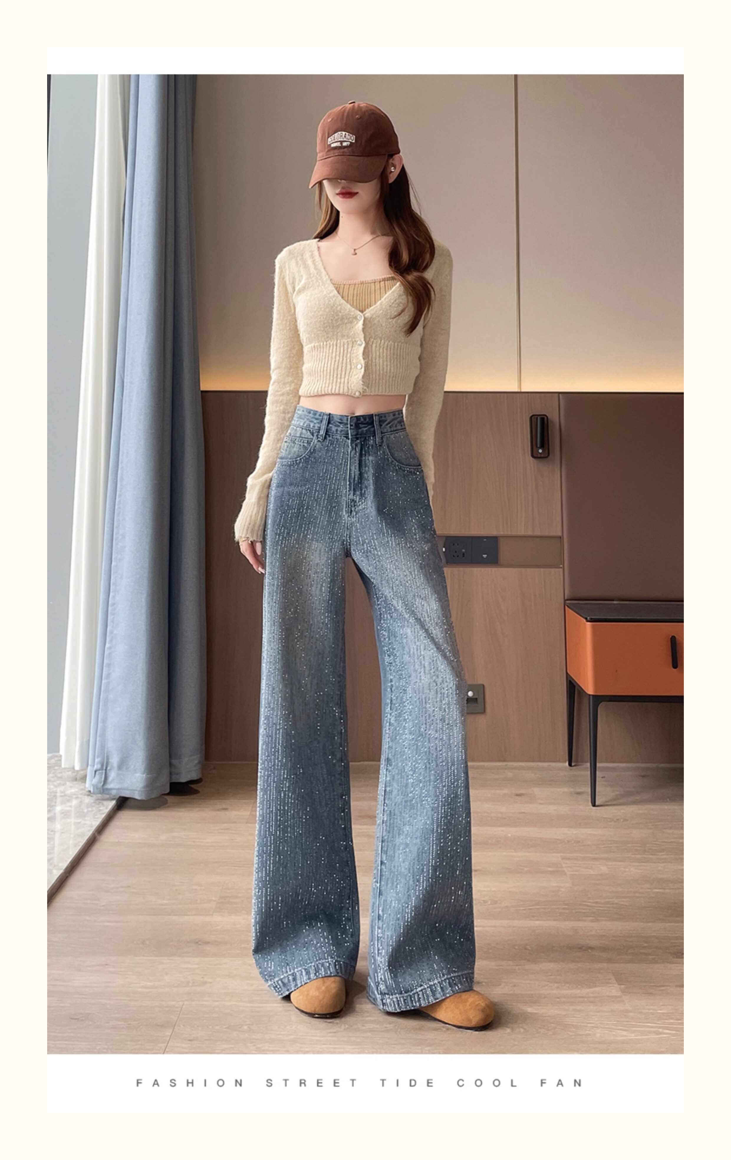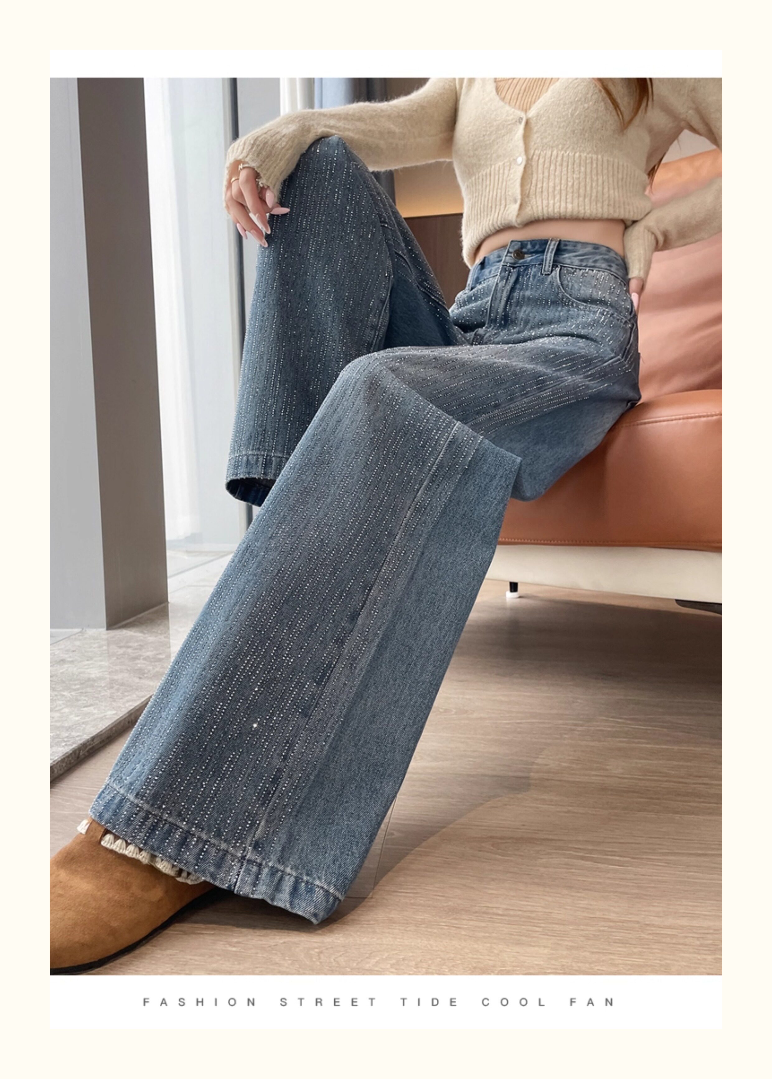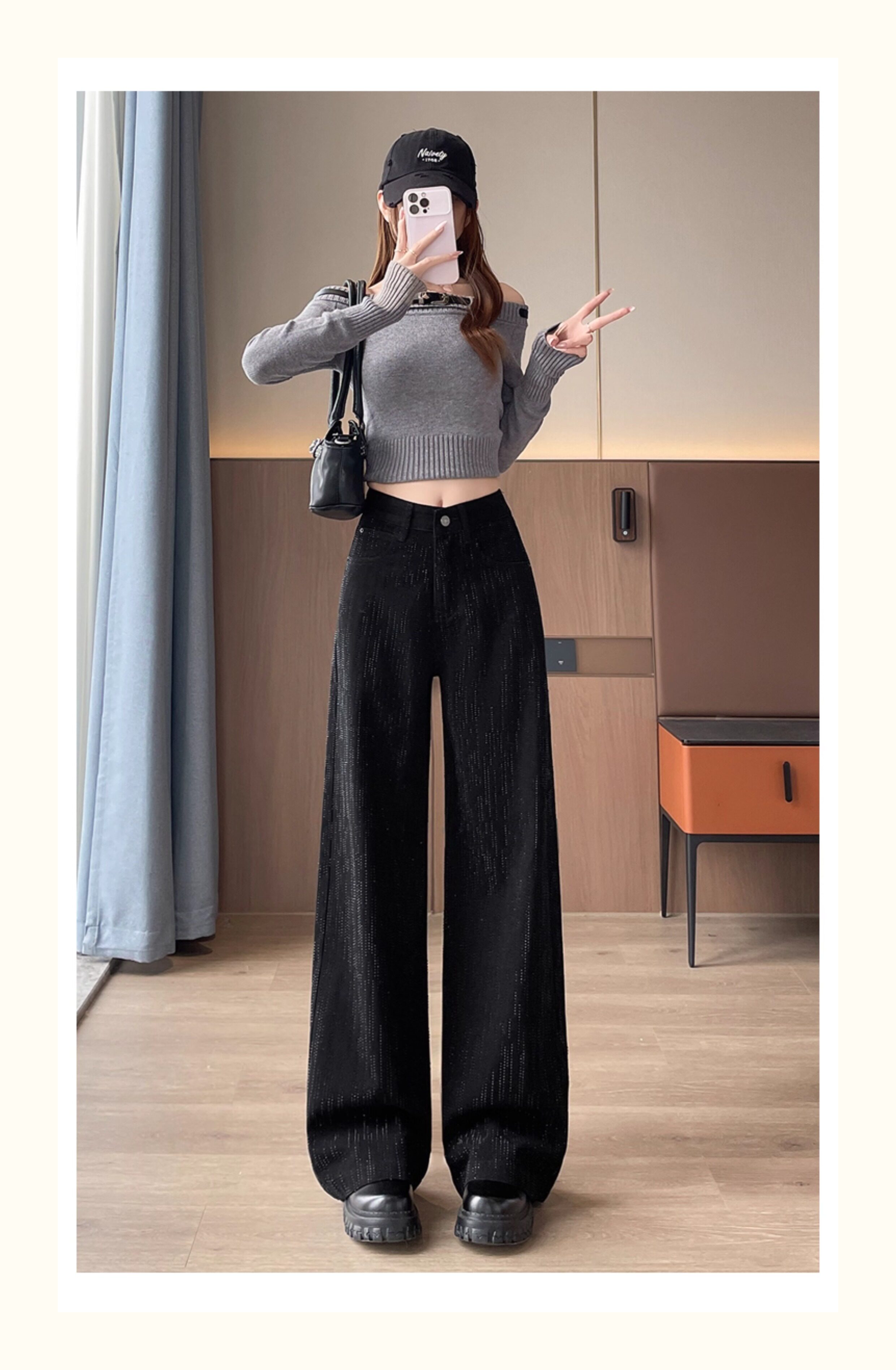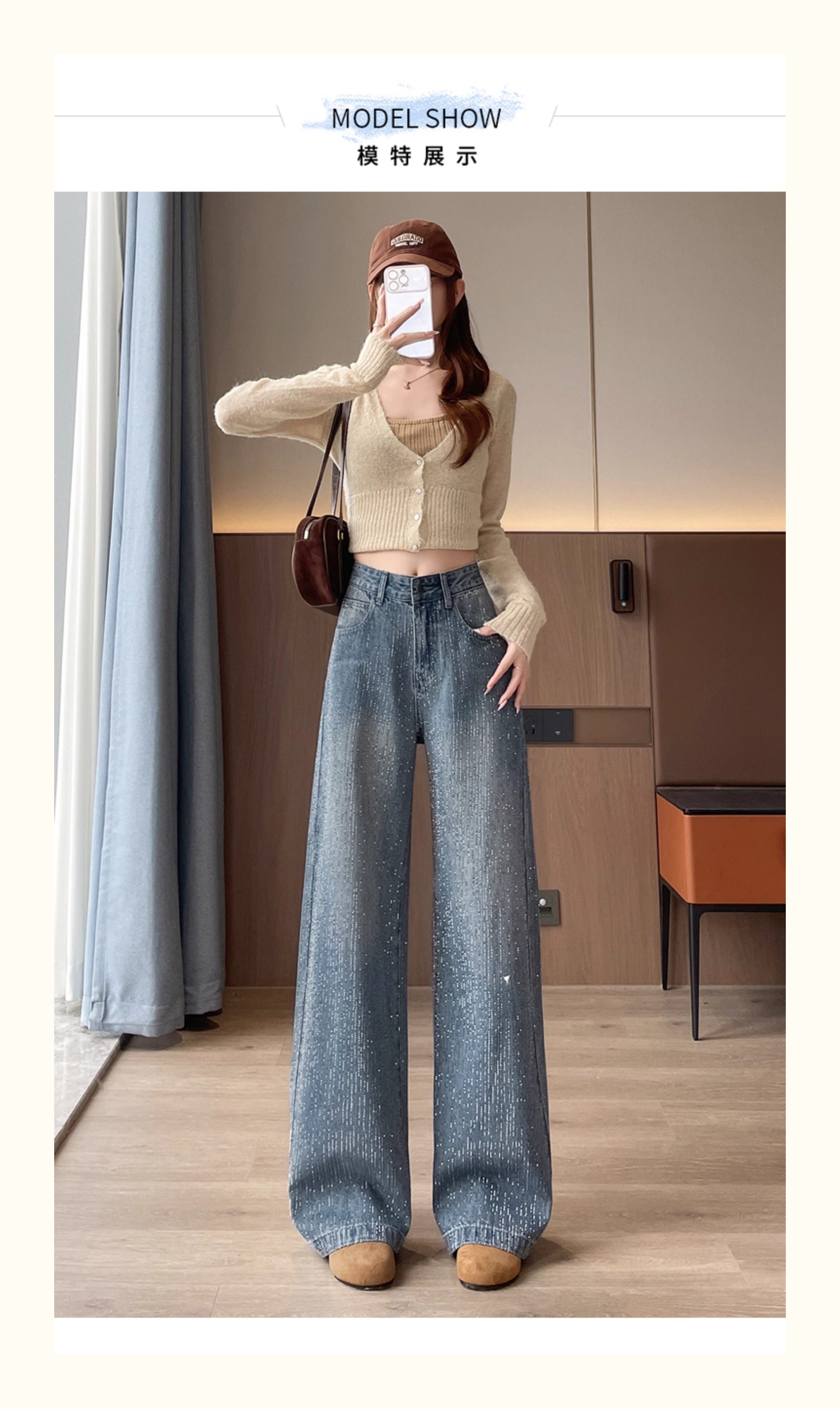 Gypsophila hot diamond jeans for women in autumn and winter plus velvet high waist 150 small people this year's popular huge good-looking wide leg pants