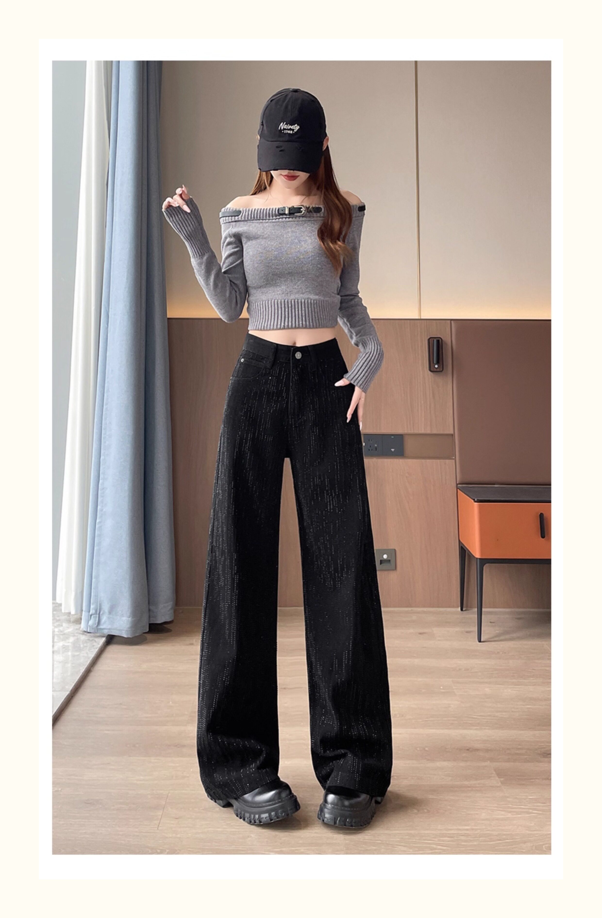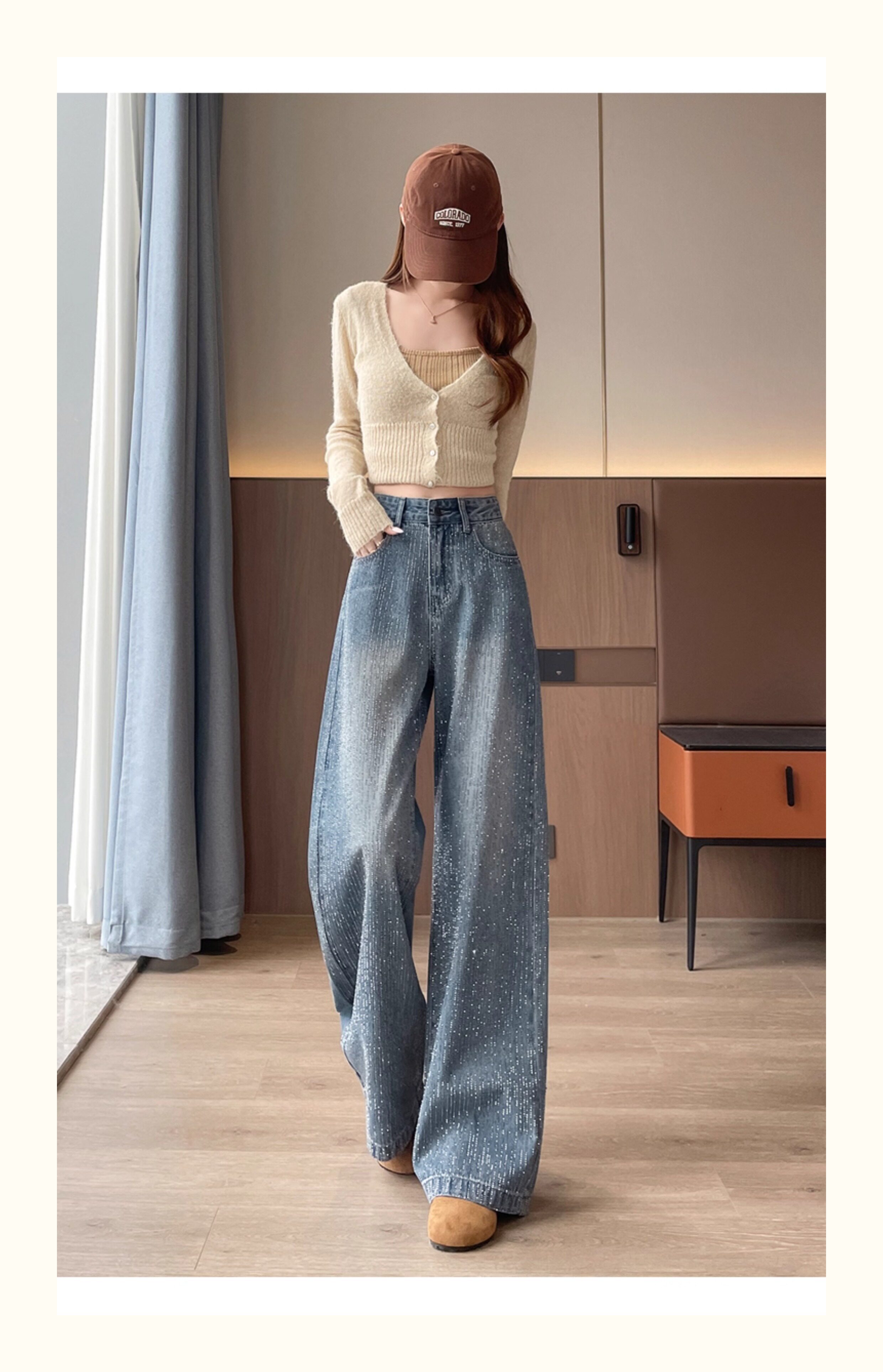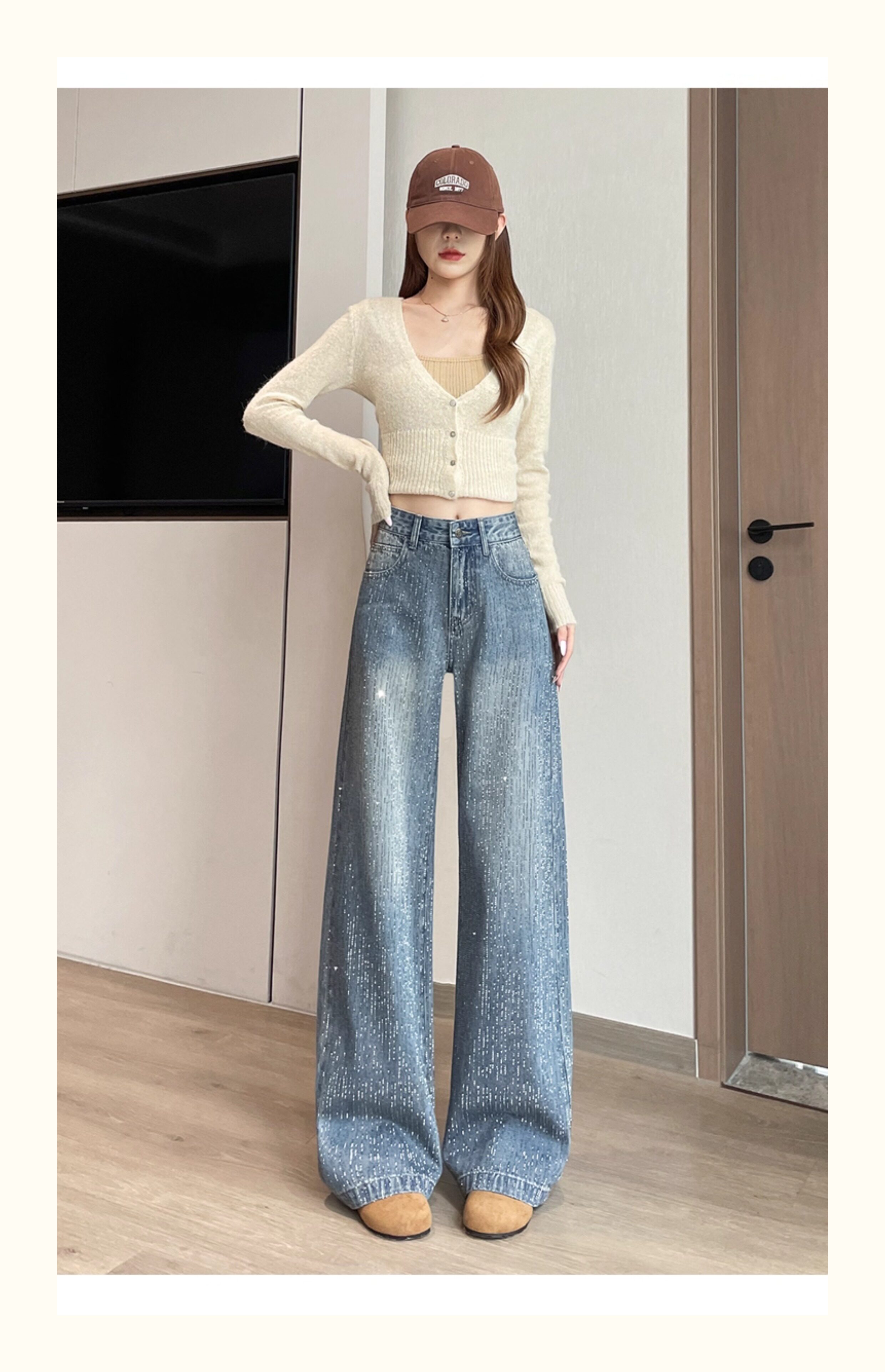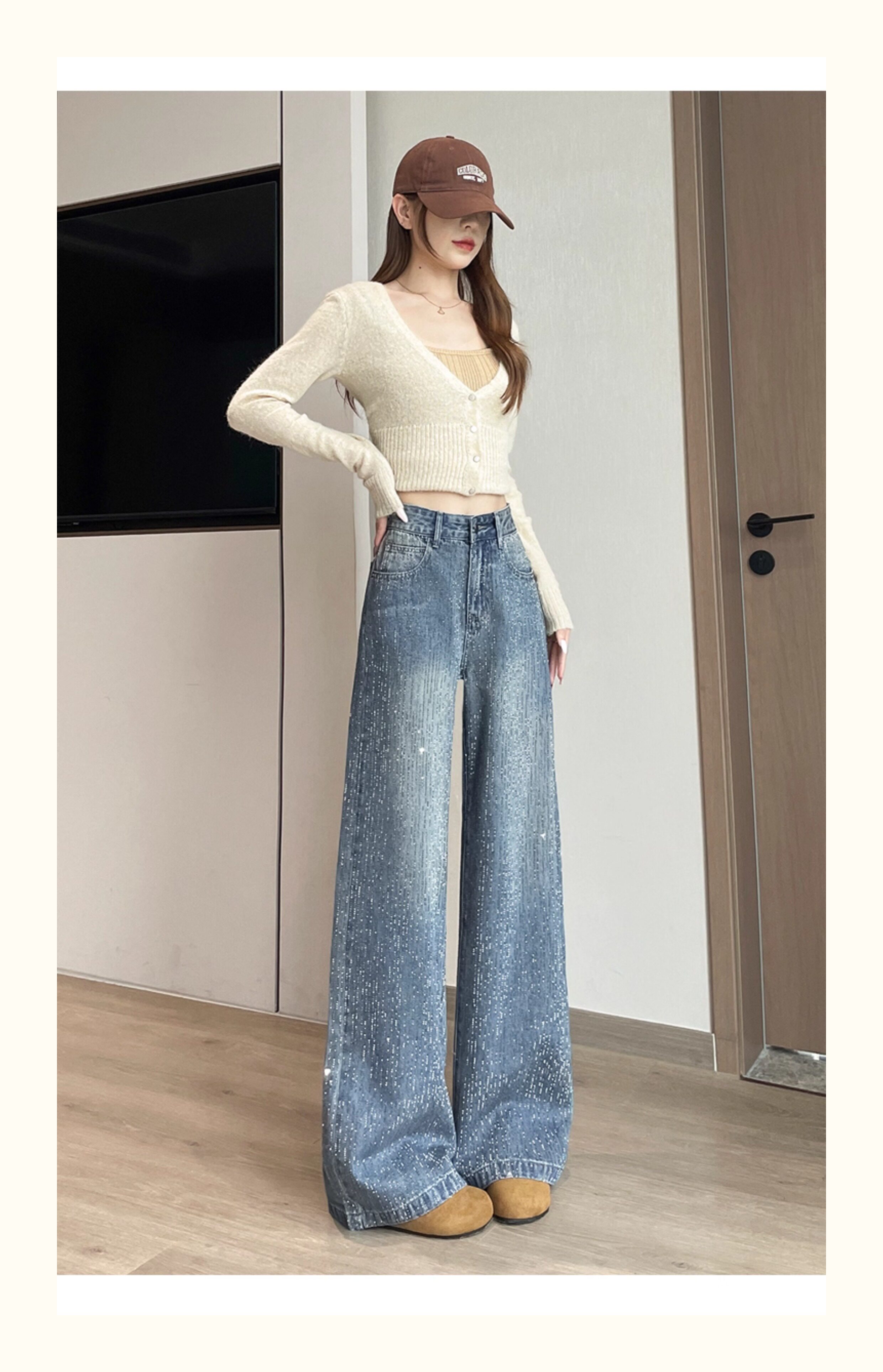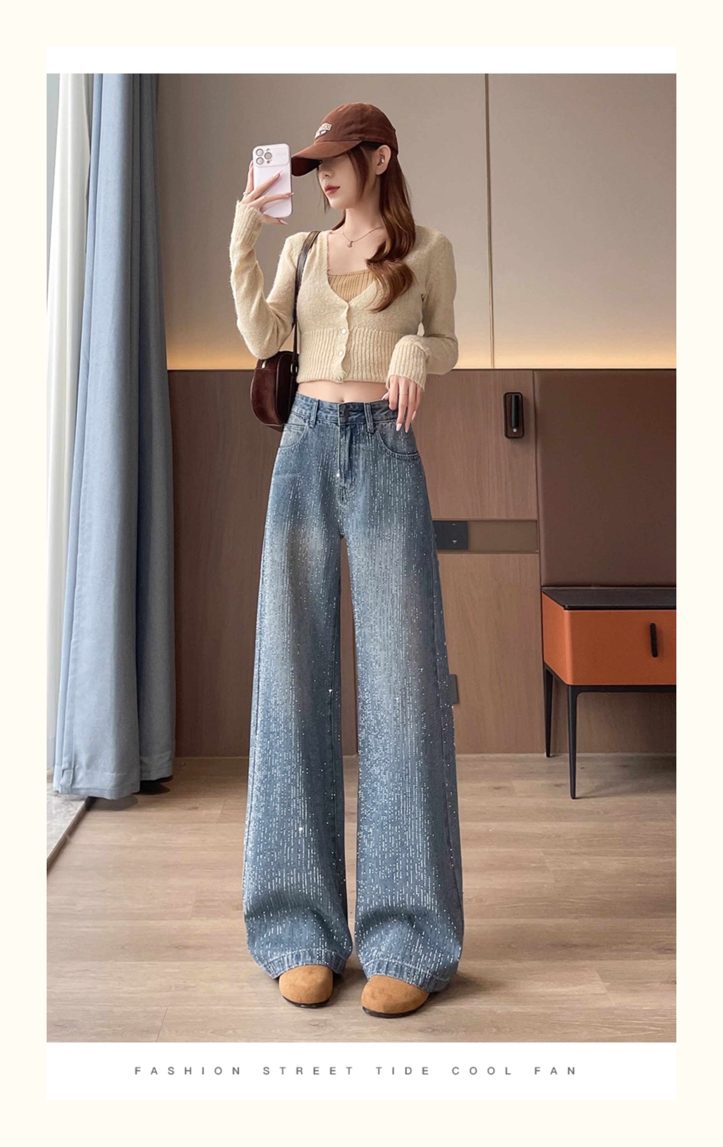 Gypsophila hot diamond jeans for women in autumn and winter plus velvet high waist 150 small people this year's popular huge good-looking wide leg pants