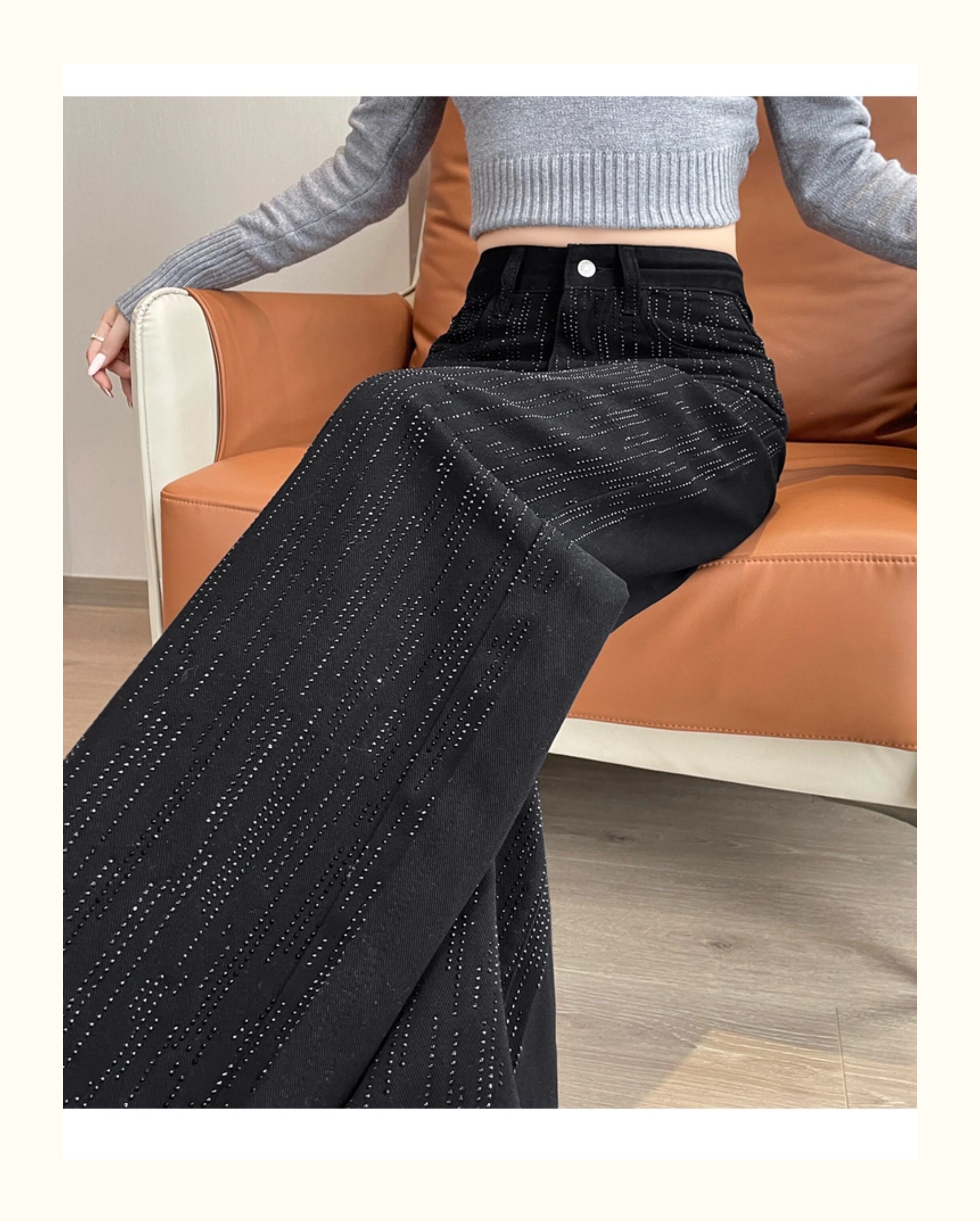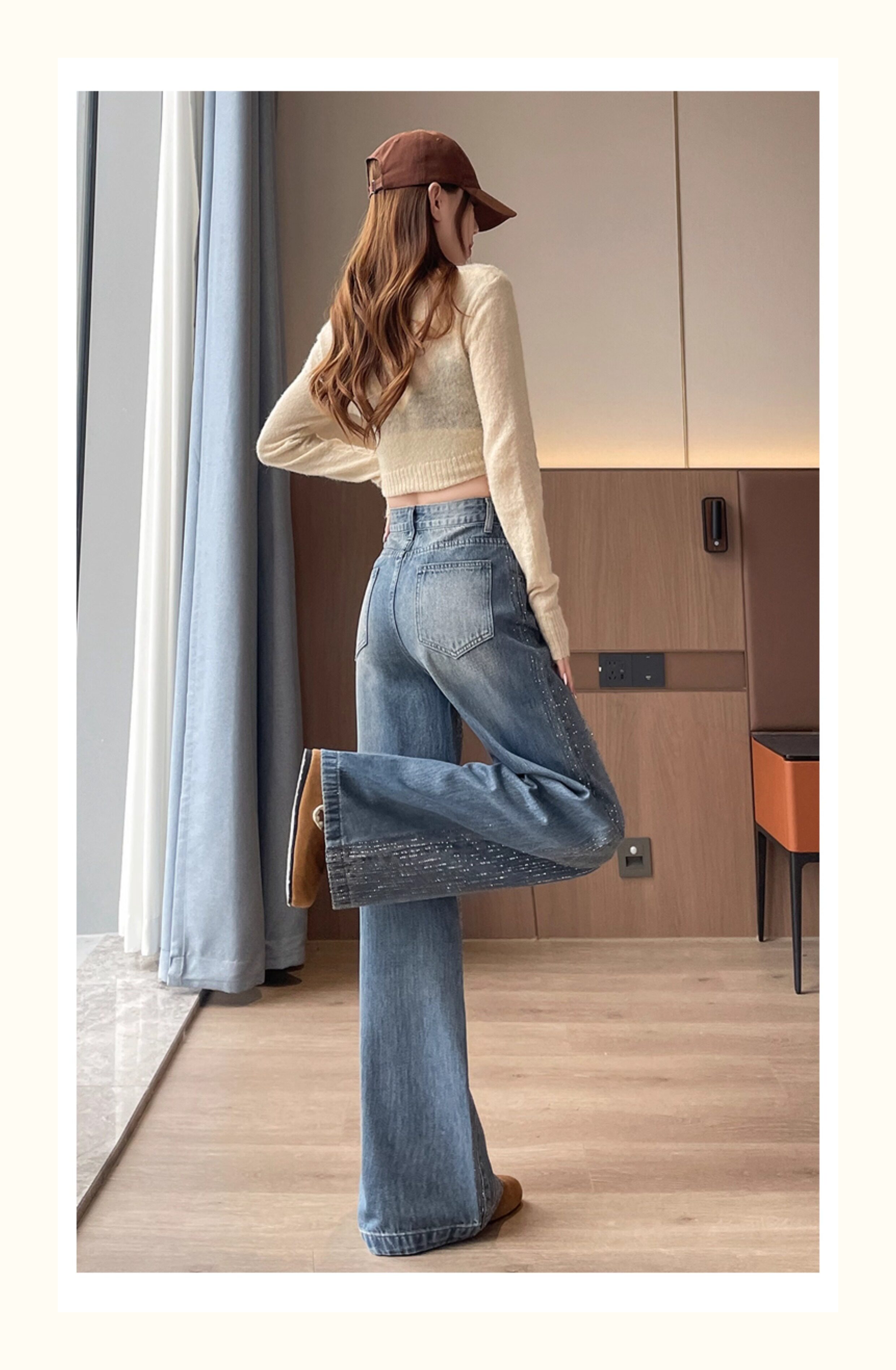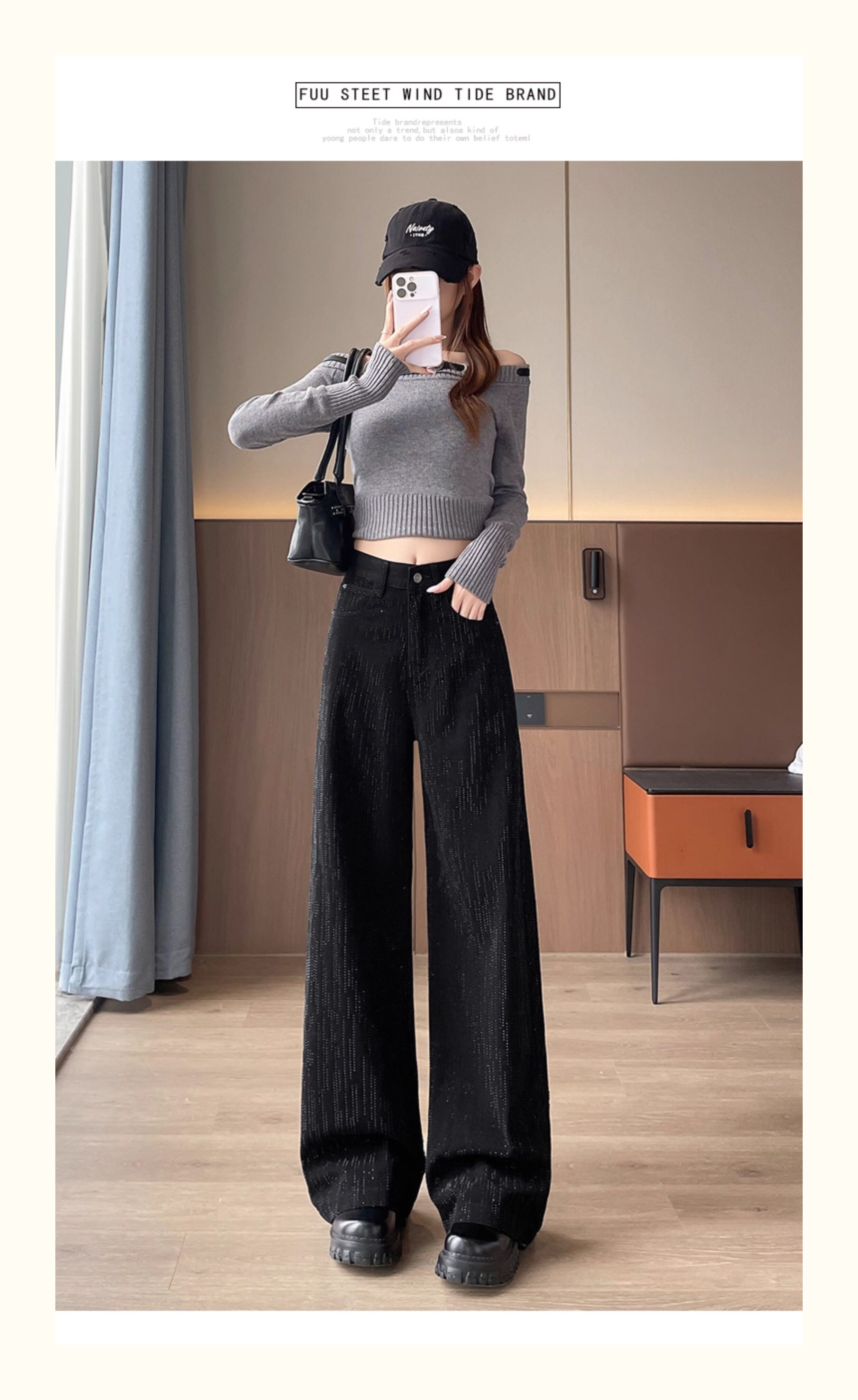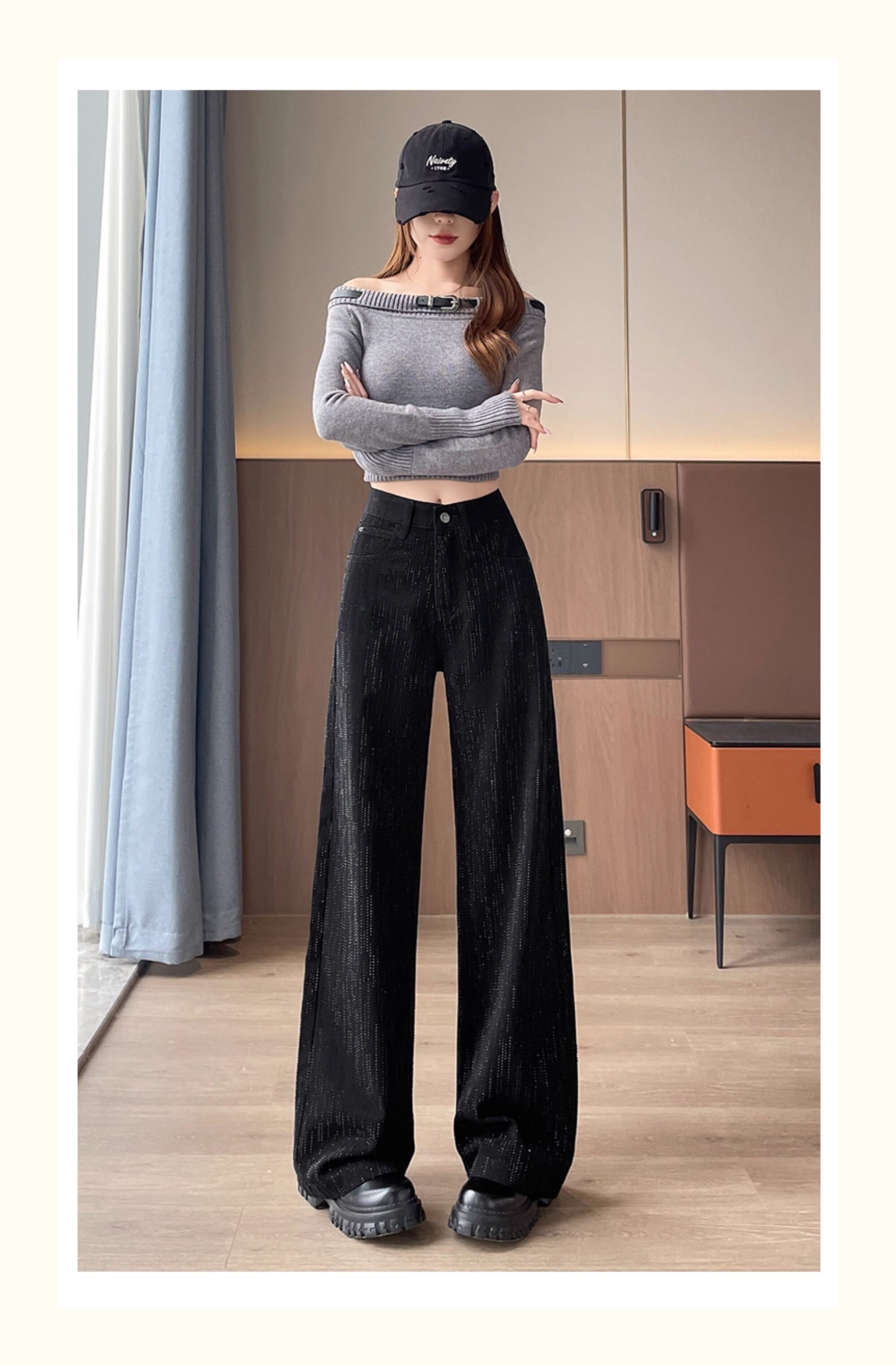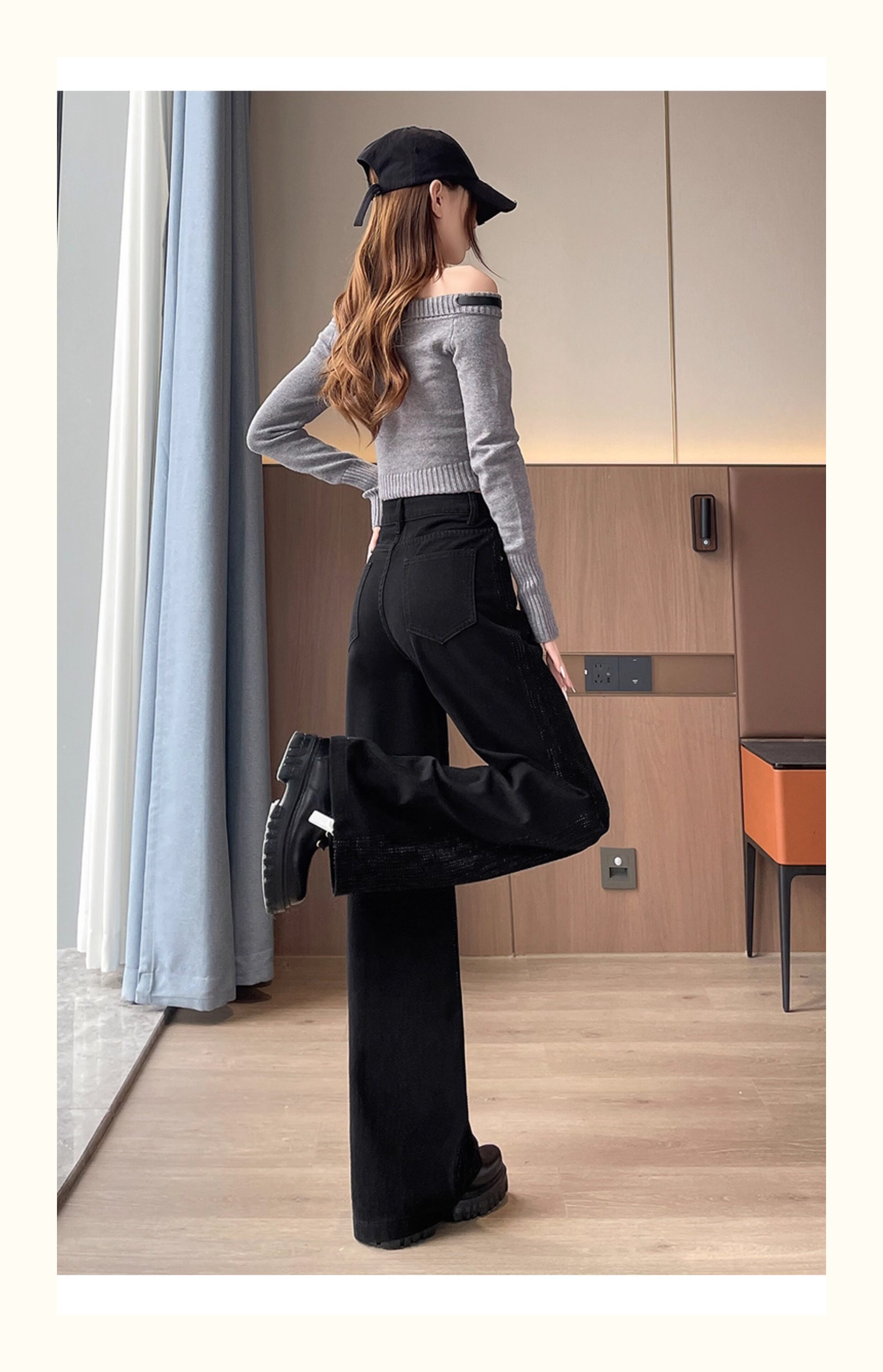 Gypsophila hot diamond jeans for women in autumn and winter plus velvet high waist 150 small people this year's popular huge good-looking wide leg pants