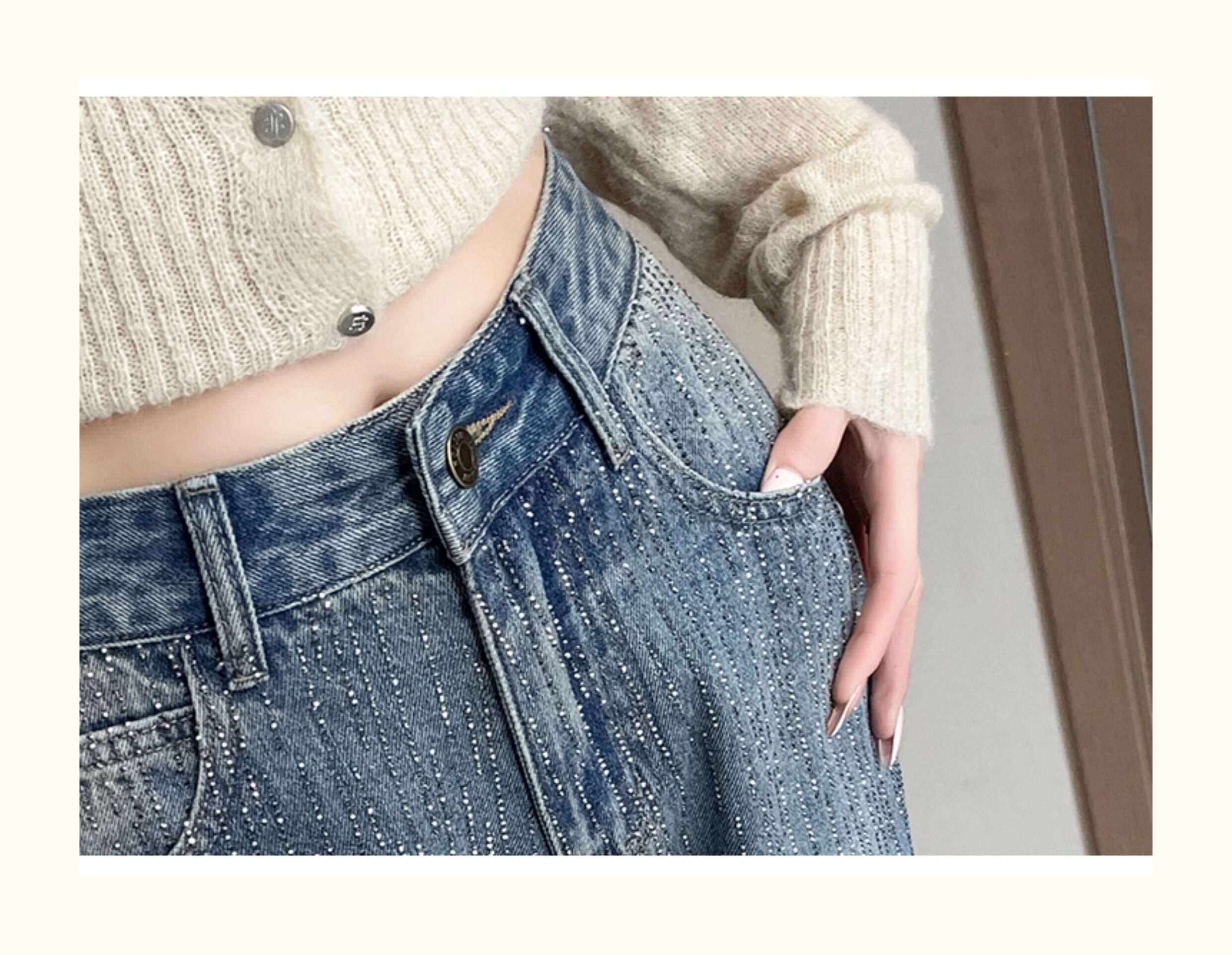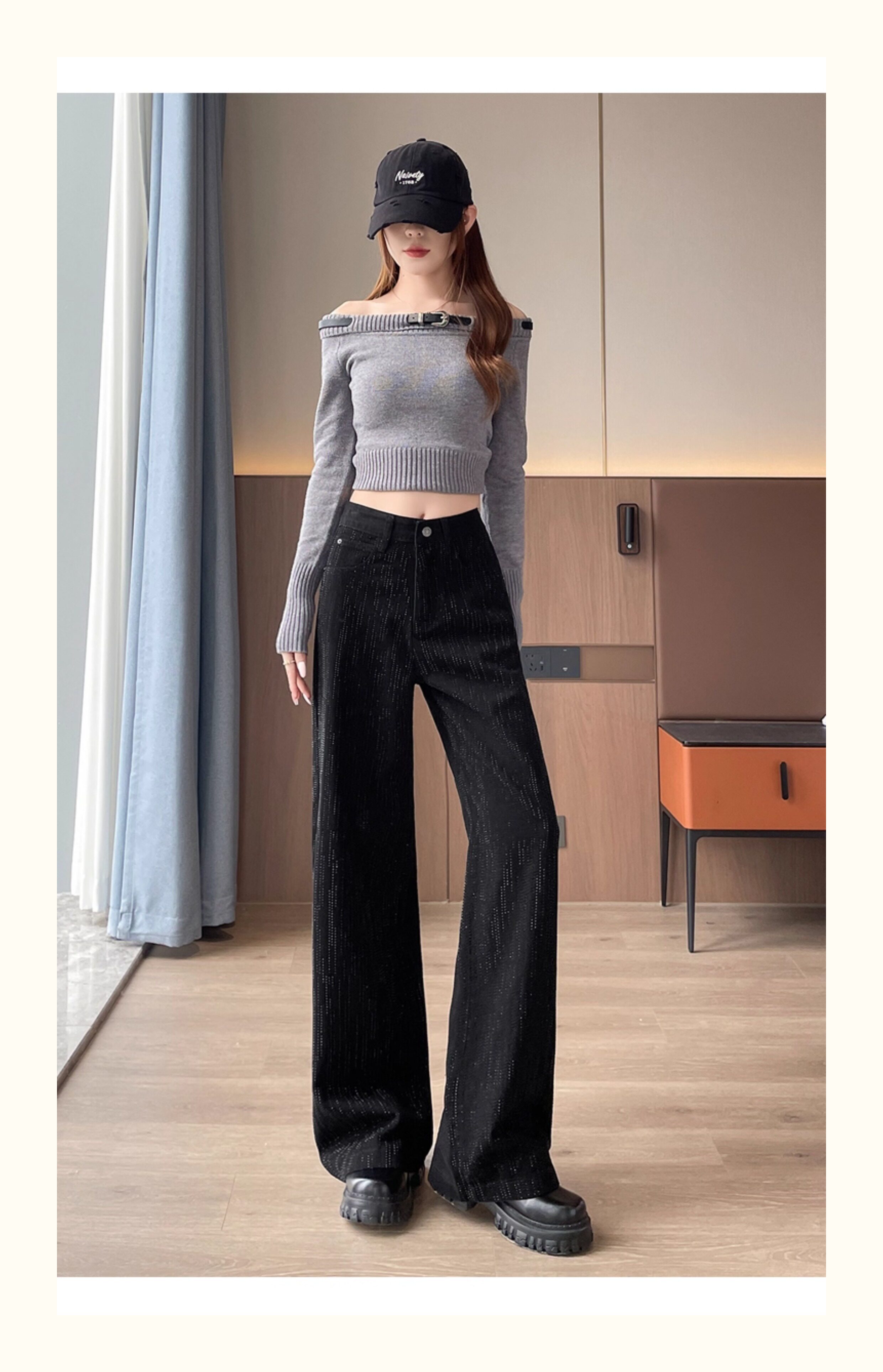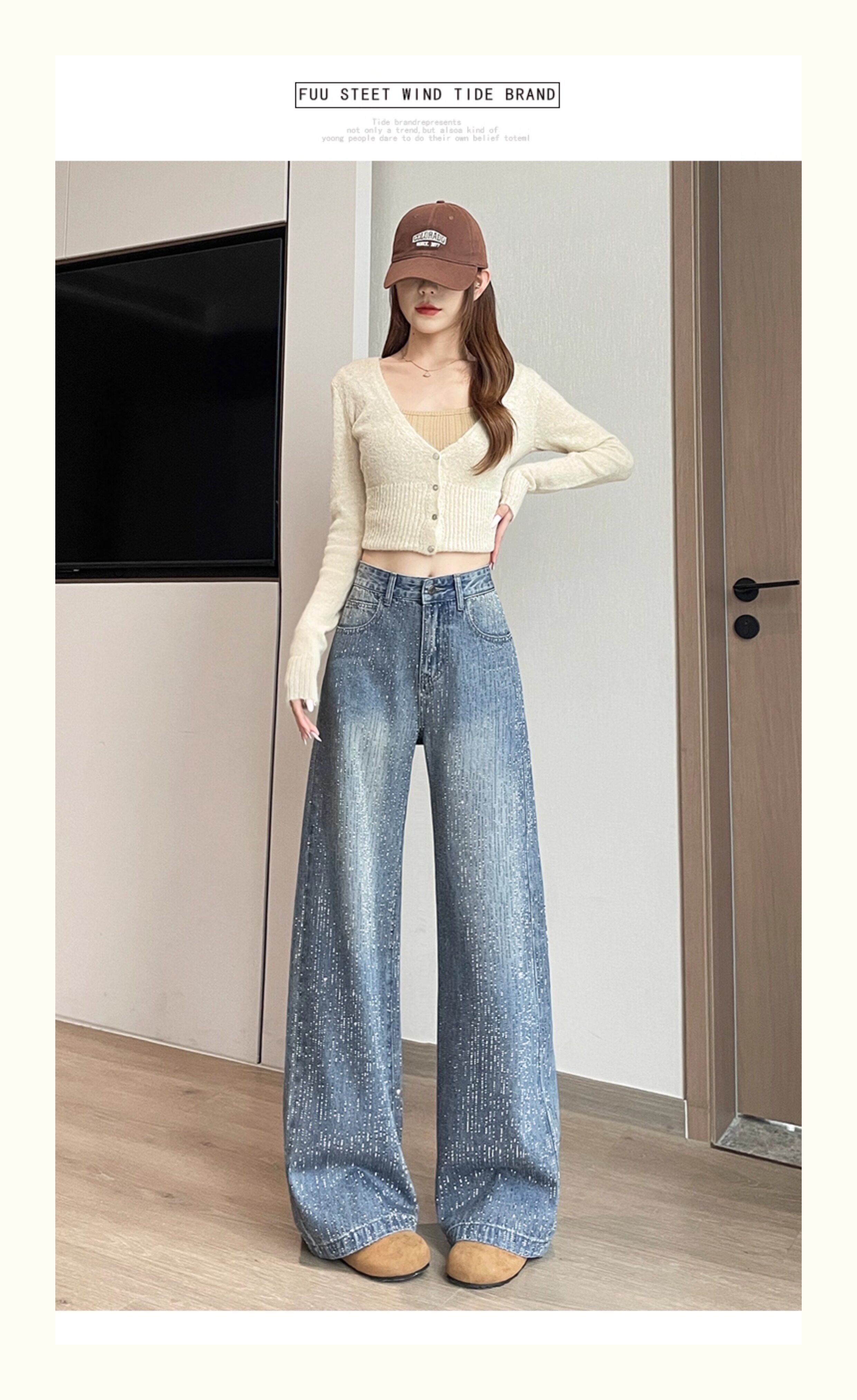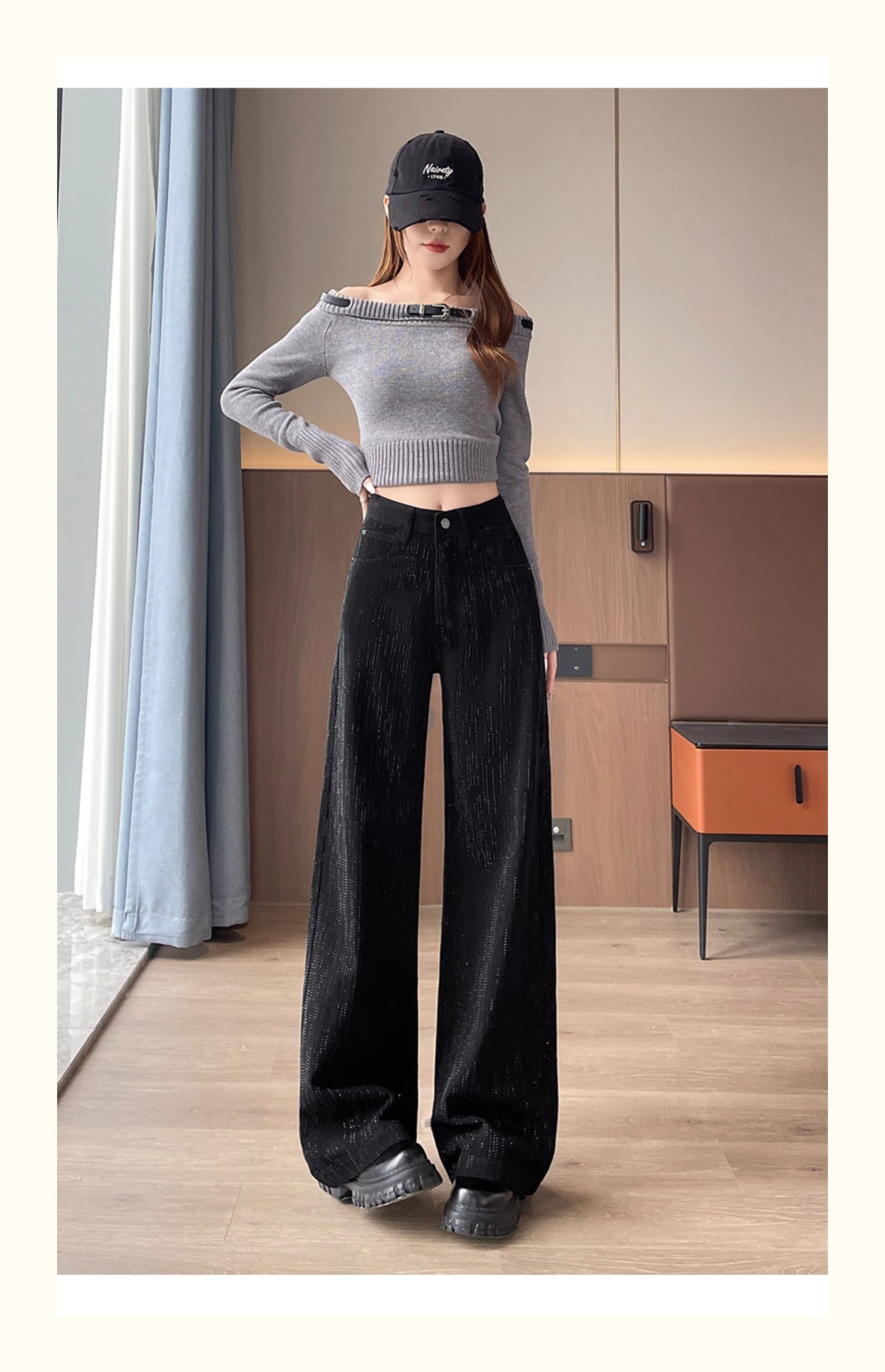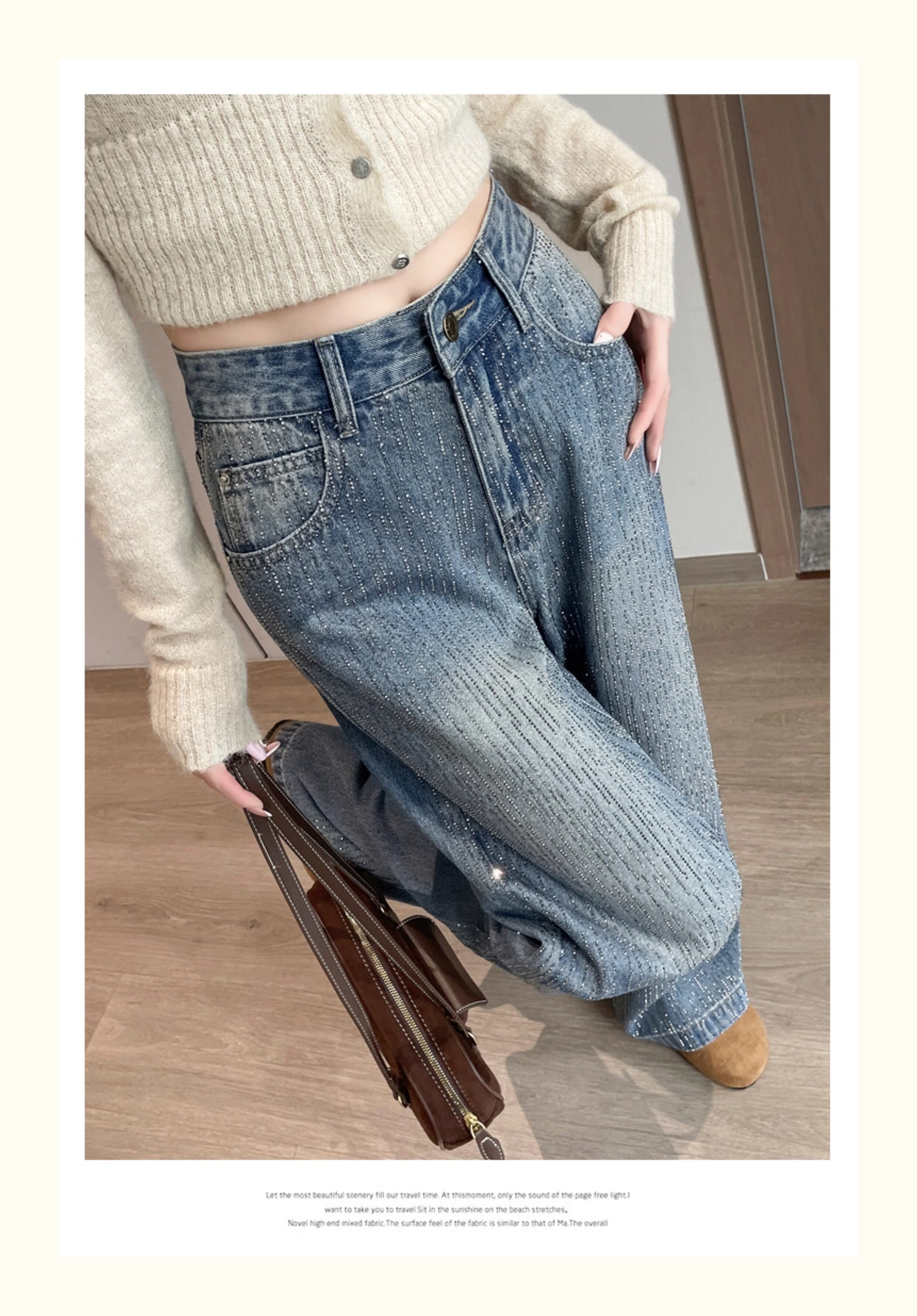 Gypsophila hot diamond jeans for women in autumn and winter plus velvet high waist 150 small people this year's popular huge good-looking wide leg pants