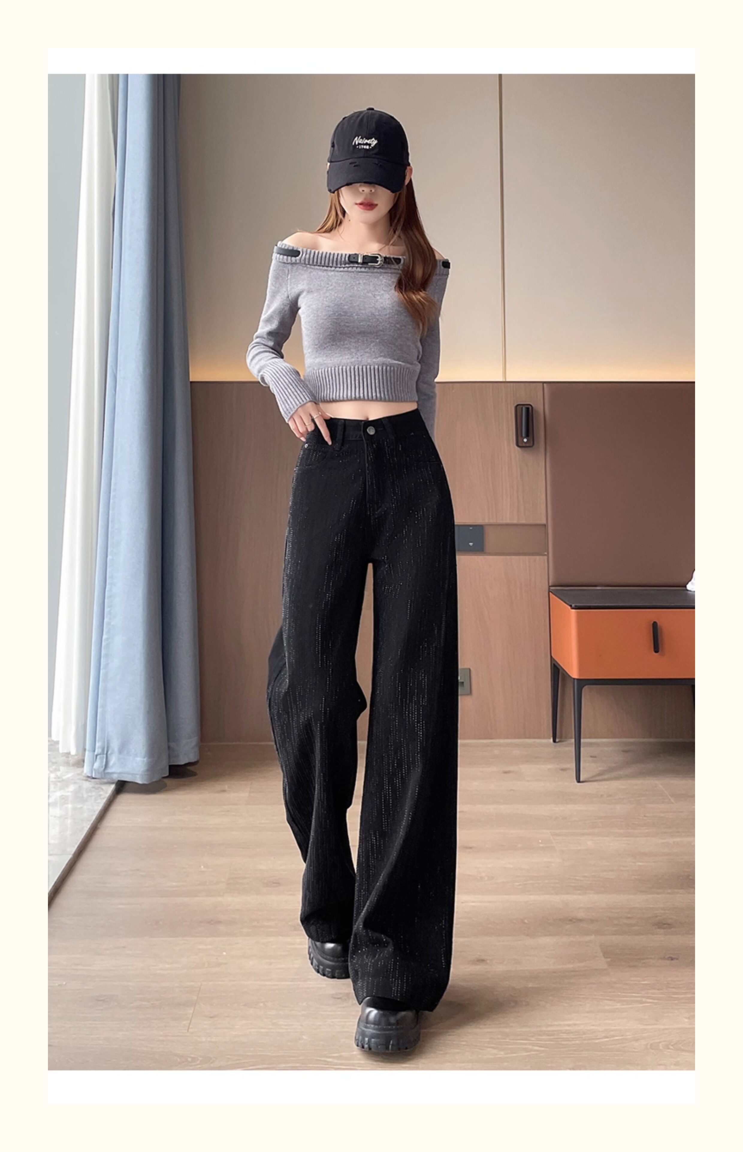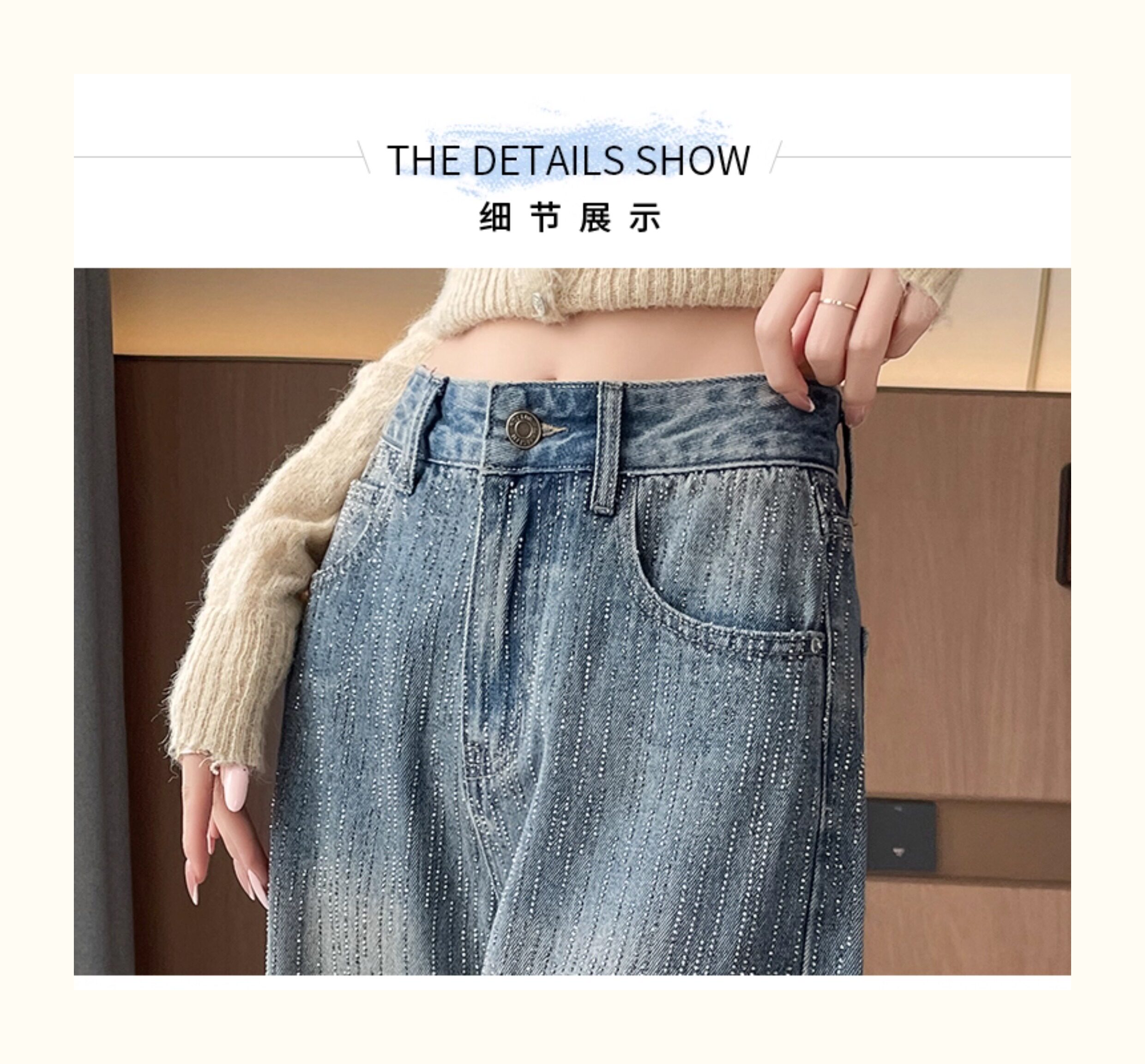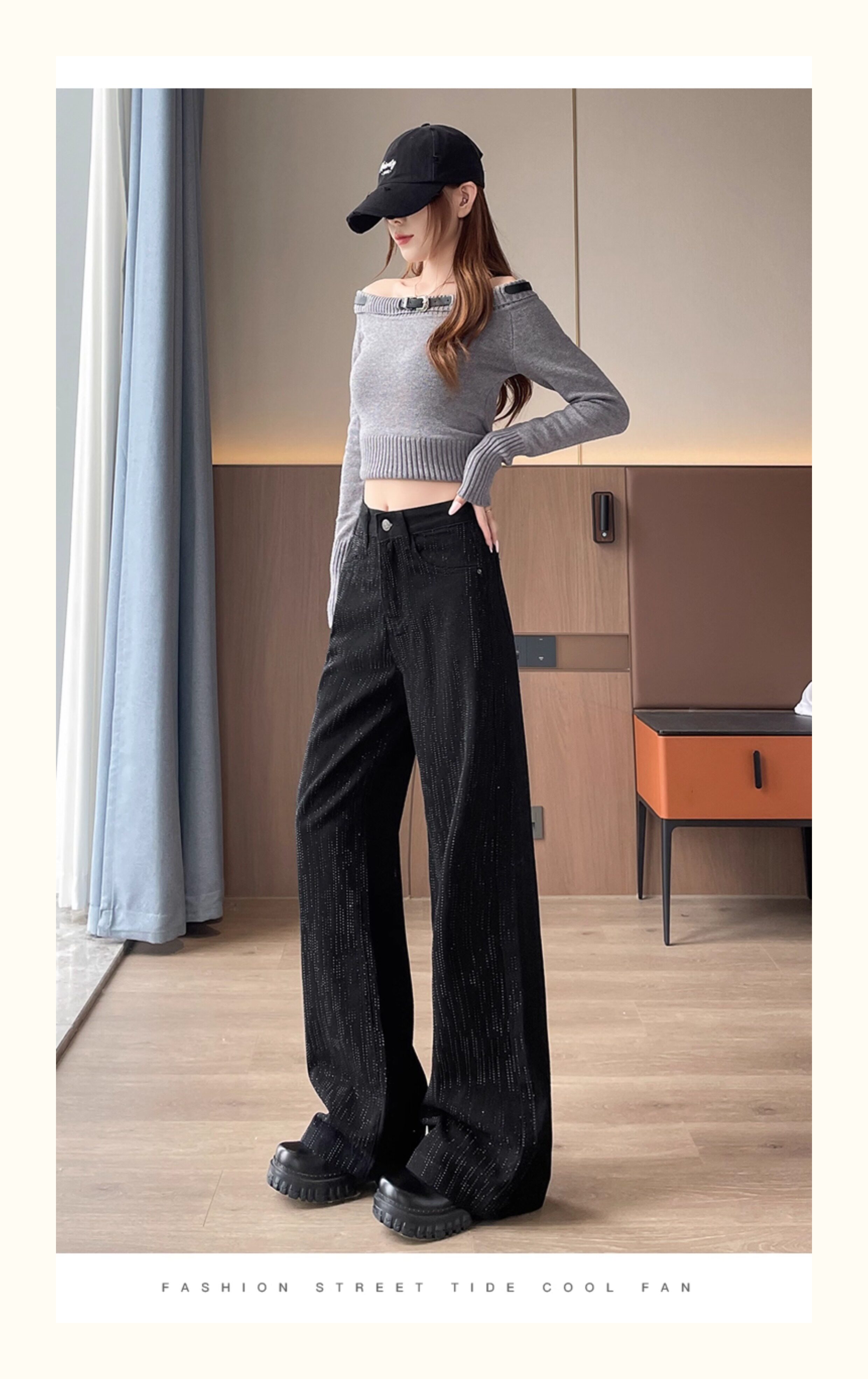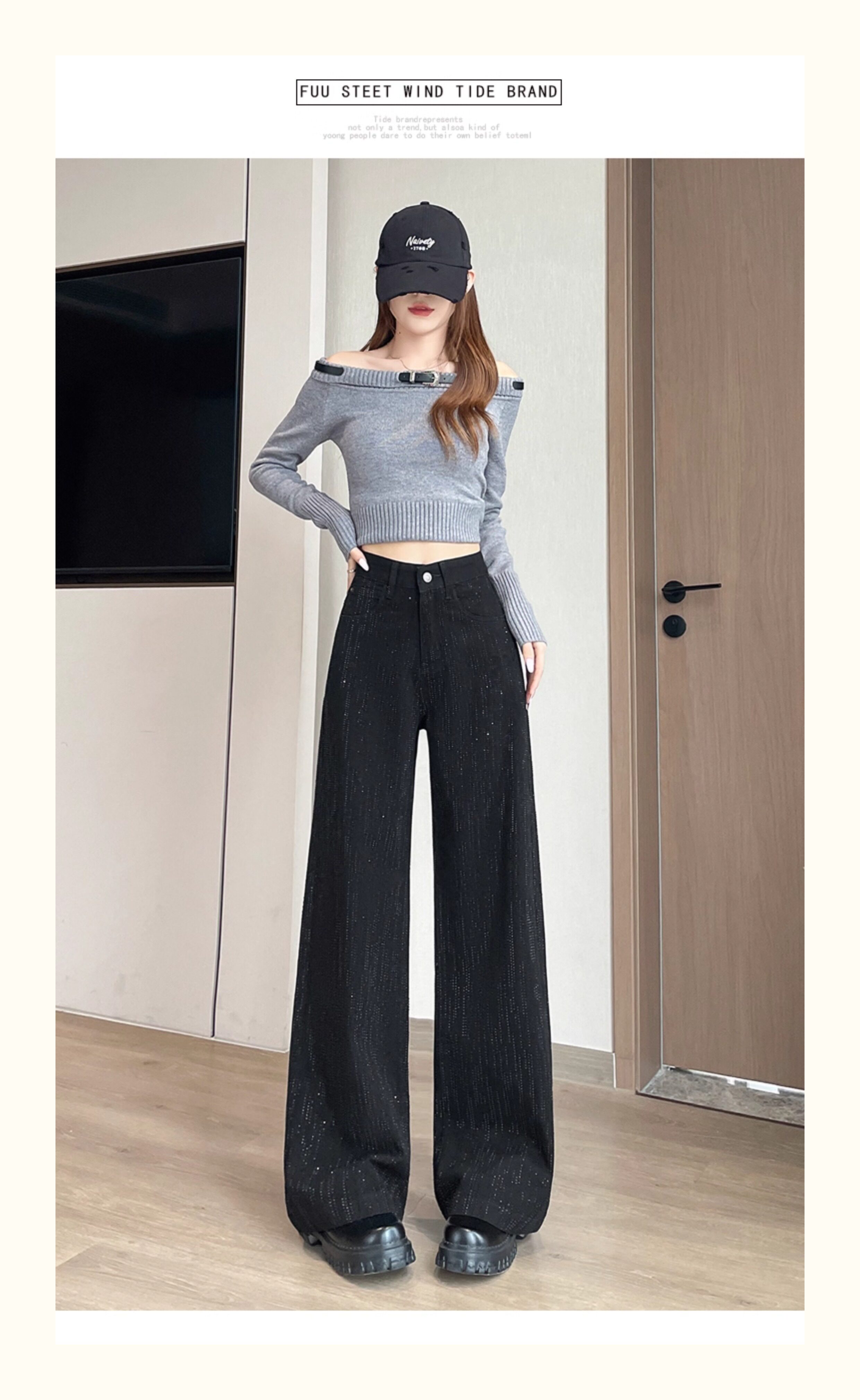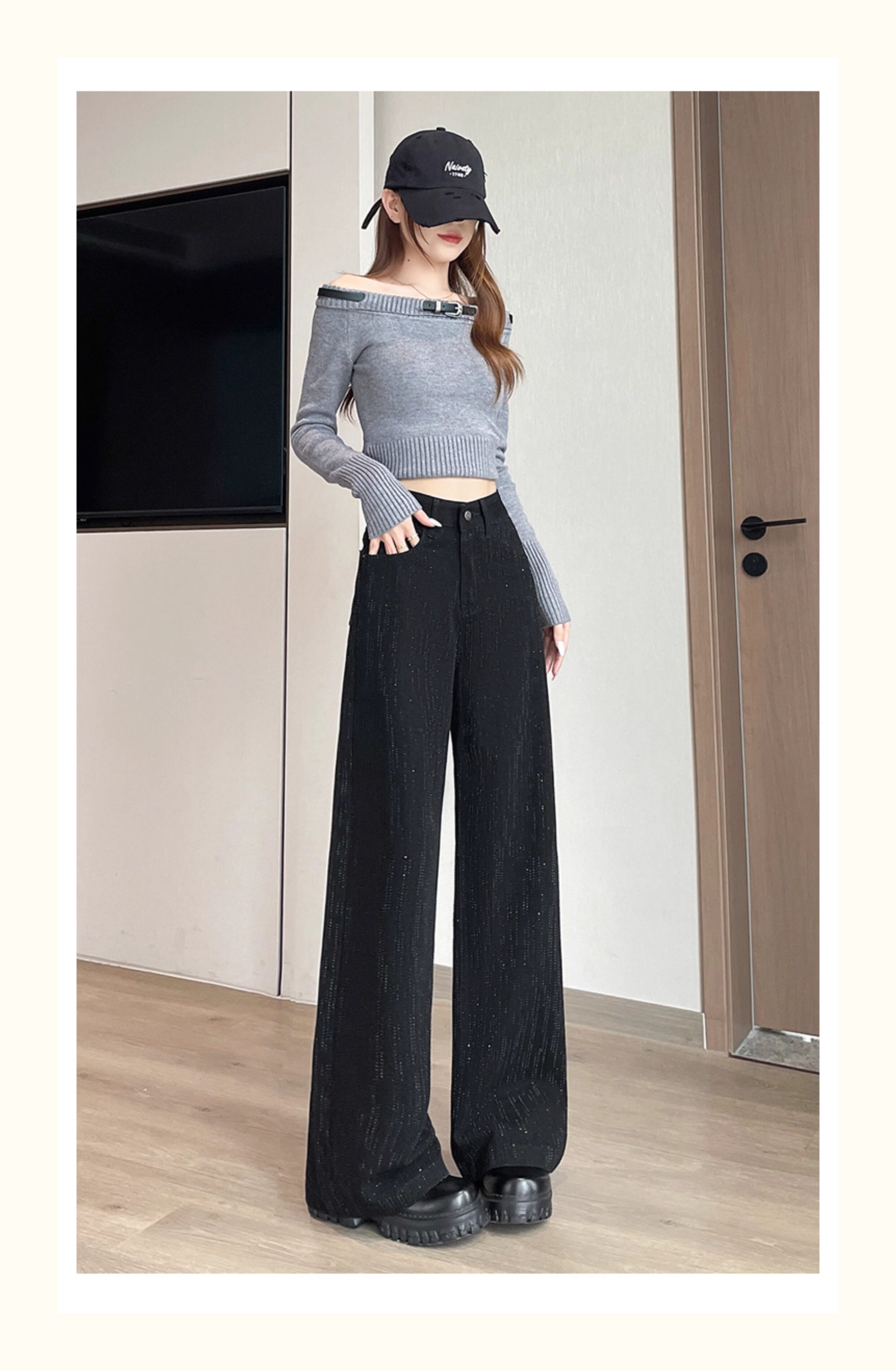 Gypsophila hot diamond jeans for women in autumn and winter plus velvet high waist 150 small people this year's popular huge good-looking wide leg pants