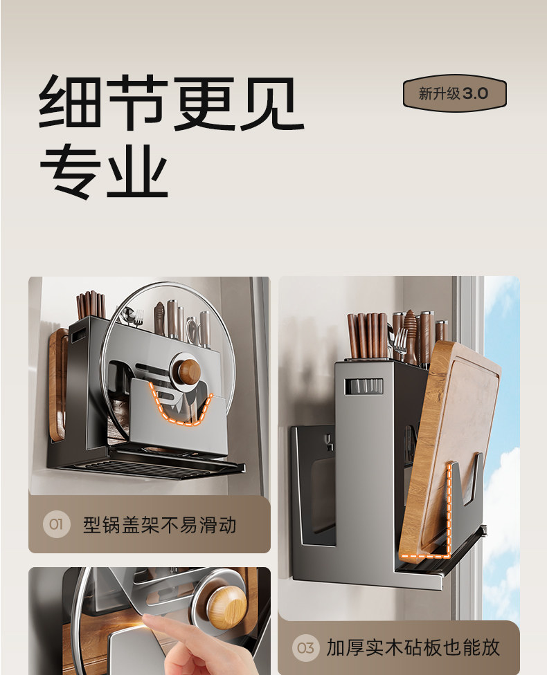 German High-End Kitchen Cutting Board Knife Holder Storage Rack Stainless Steel Integrated Wall-Mounted Chopping Board Pot Lid Knife Storage Rack
