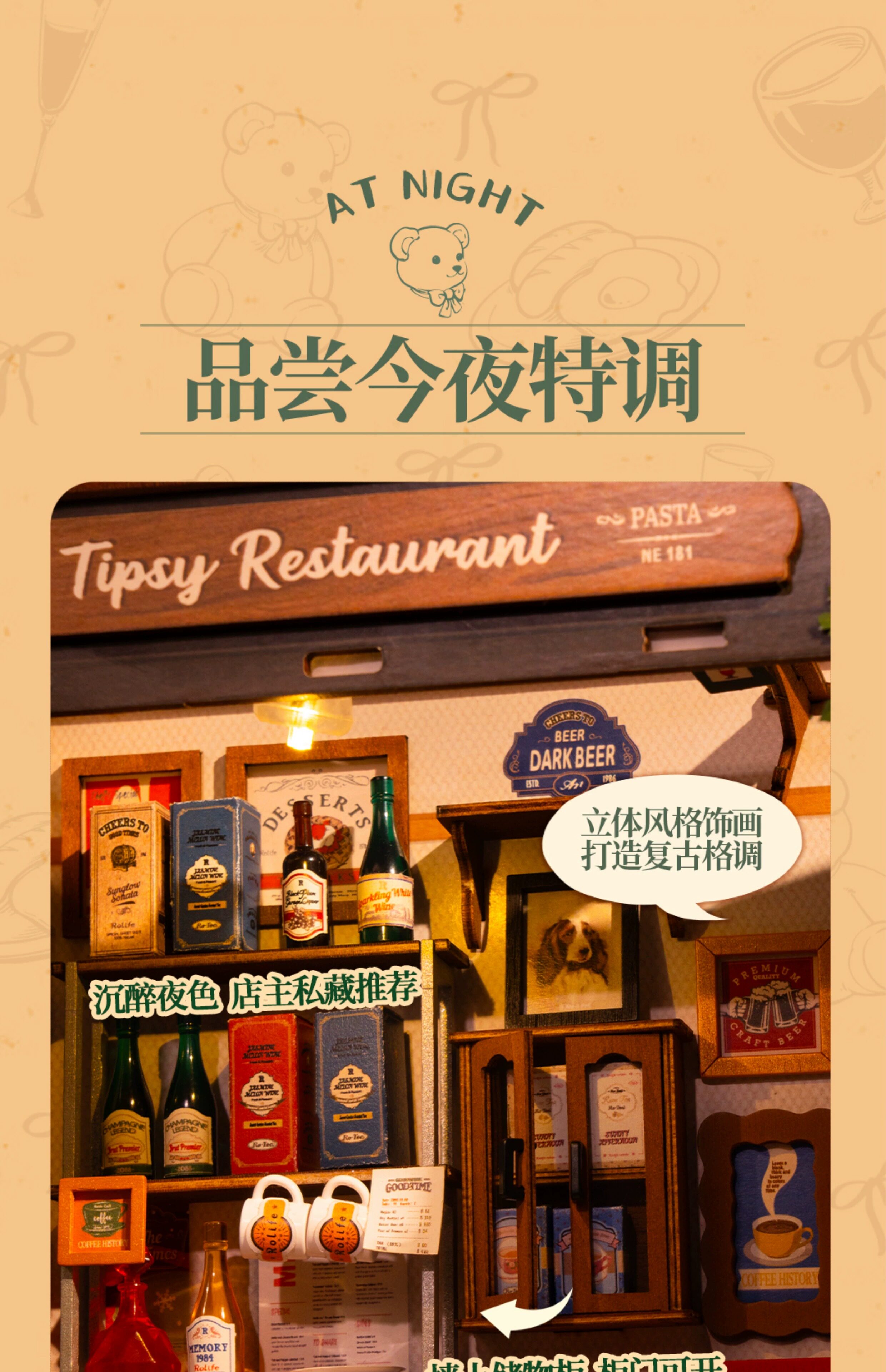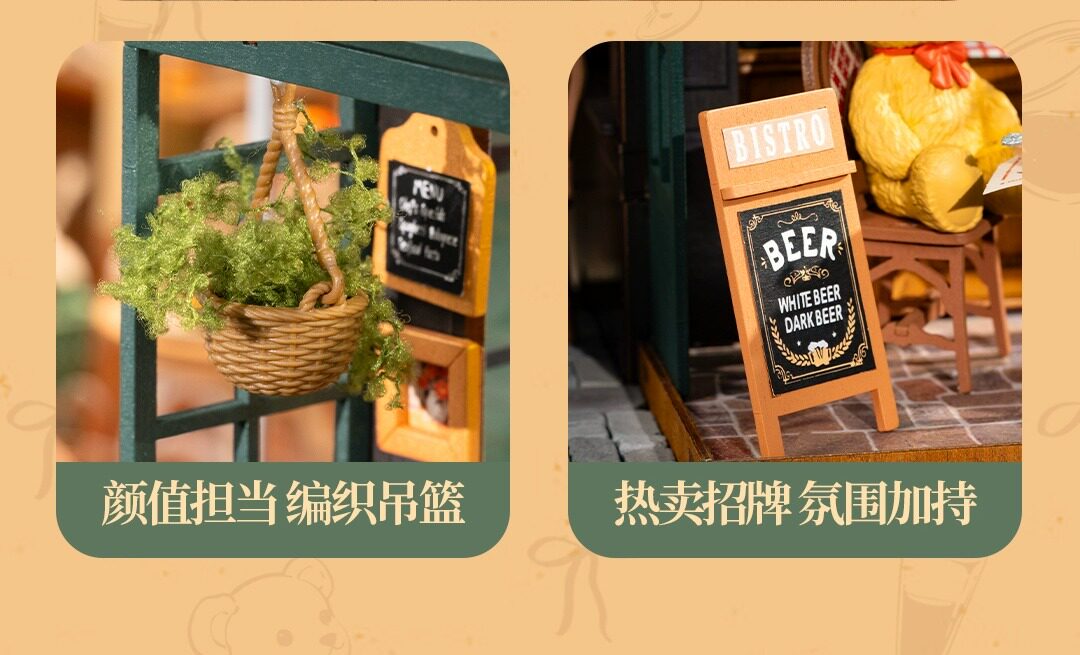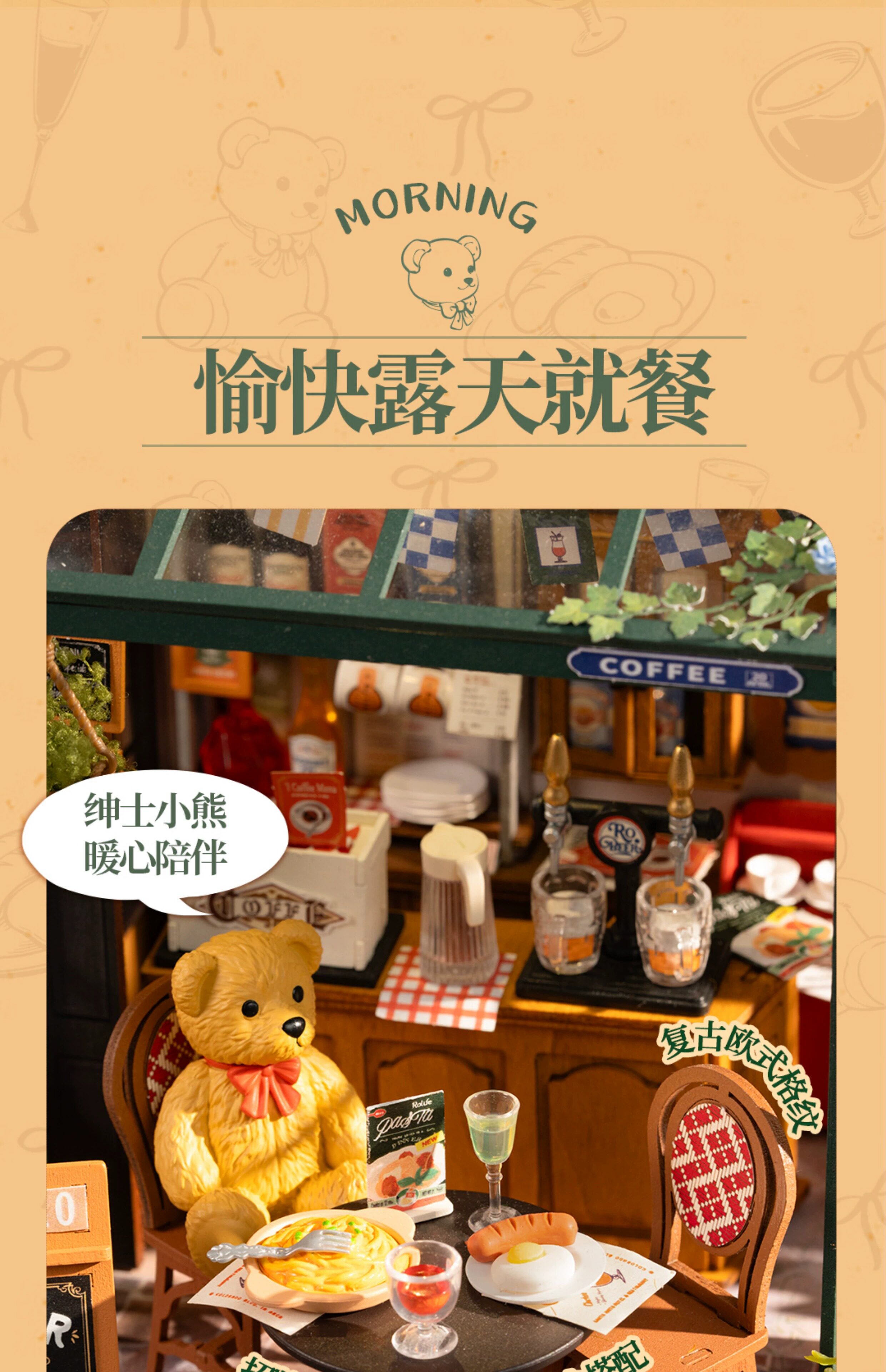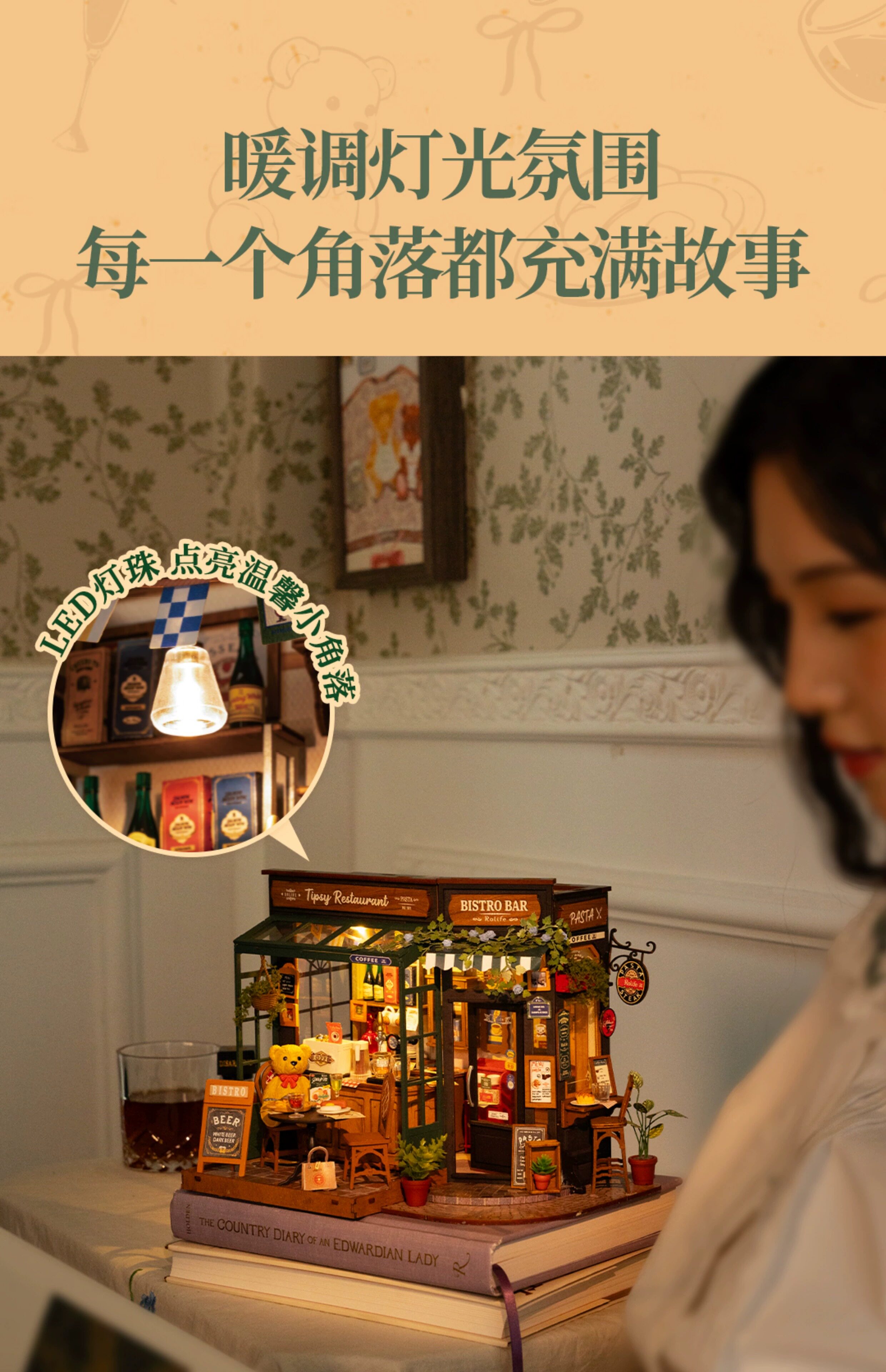 Rolife Ruo come to the bear restaurant DIY handmade hut art house miniature model house assembled house building blocks for women
