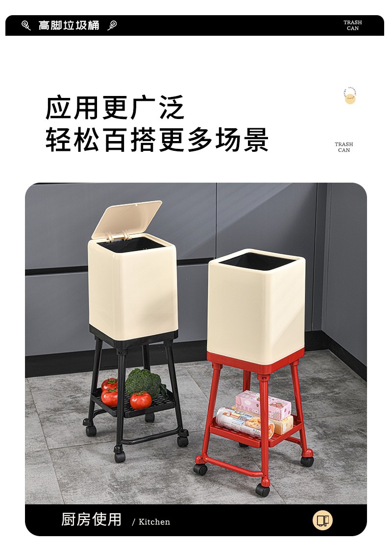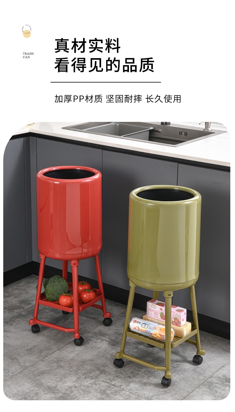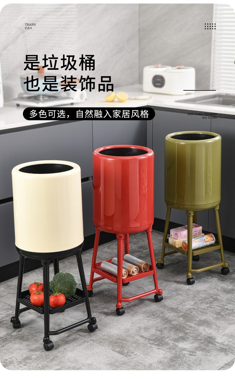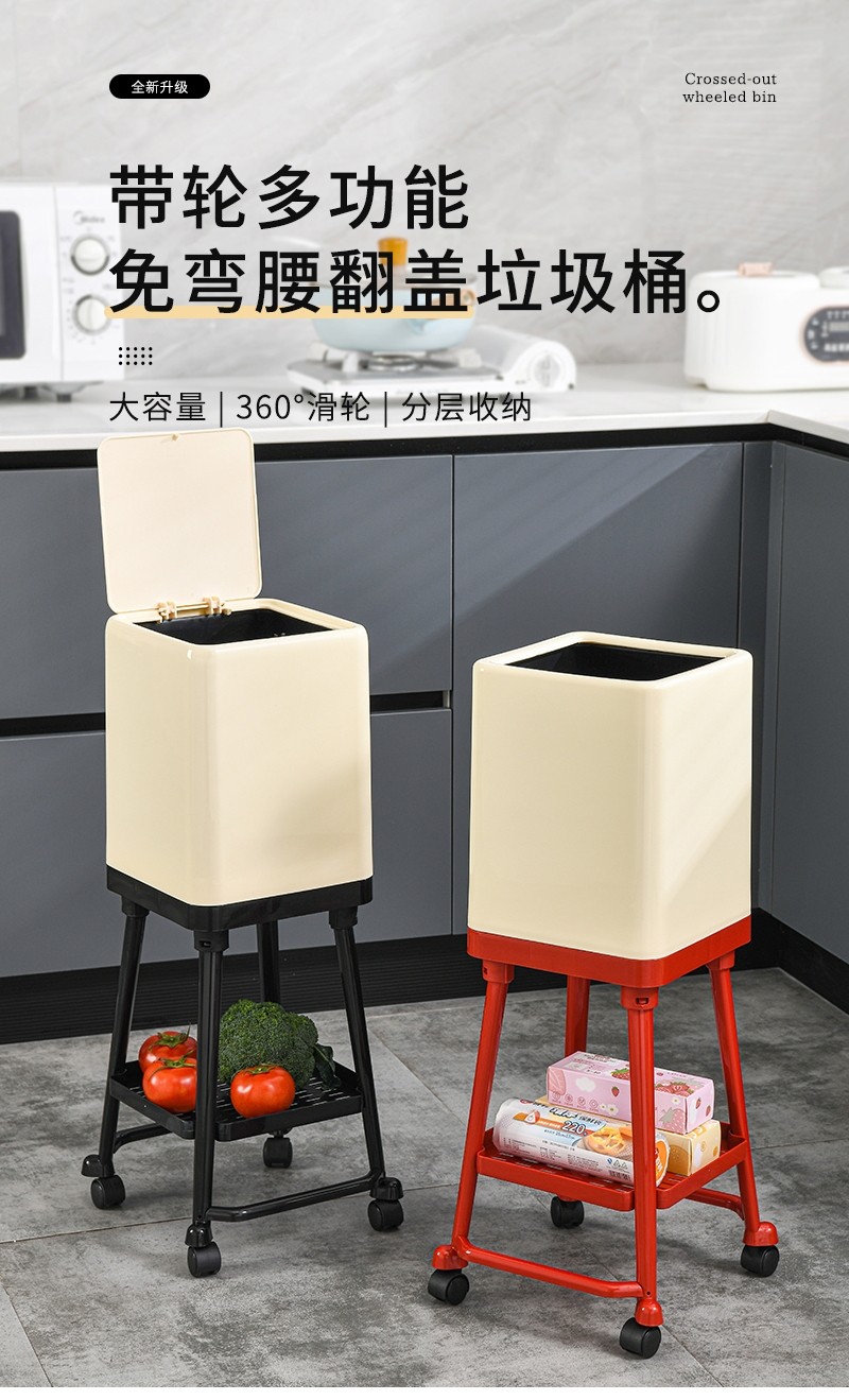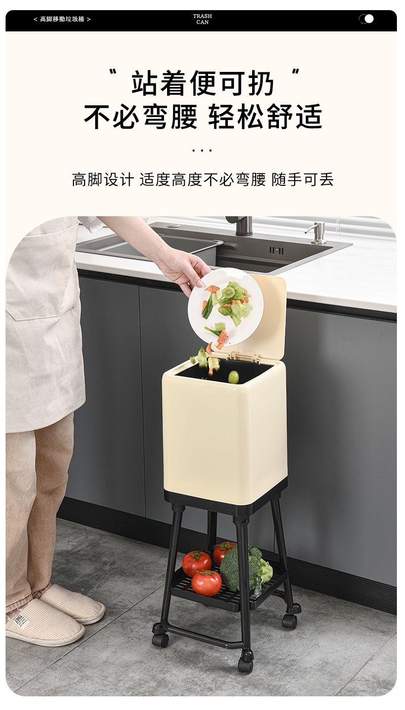 Japanese Imported Kitchen-Specific Household Trash Can, No Need to Bend Over, High Aesthetic Value, with Lid, Movable, Large Capacity