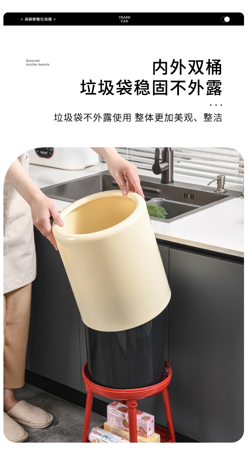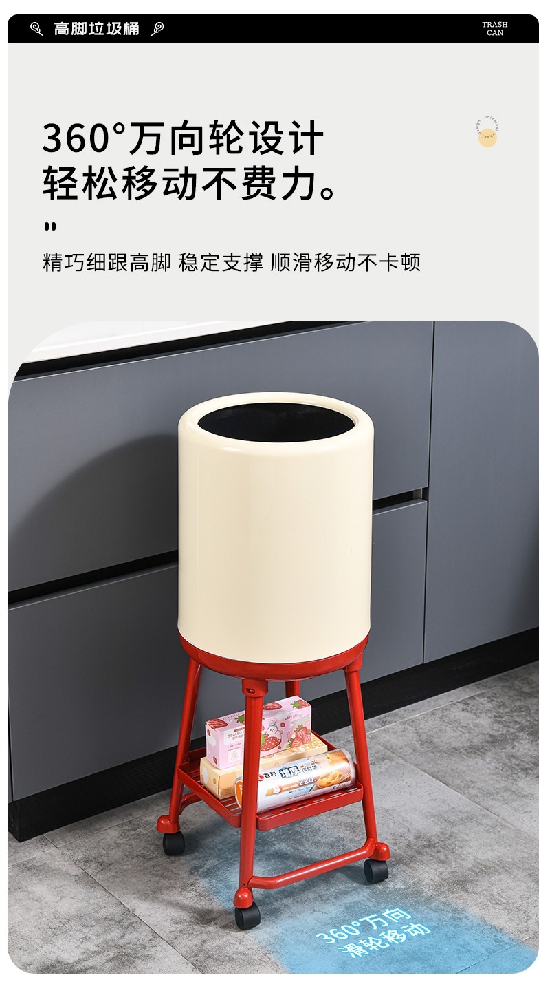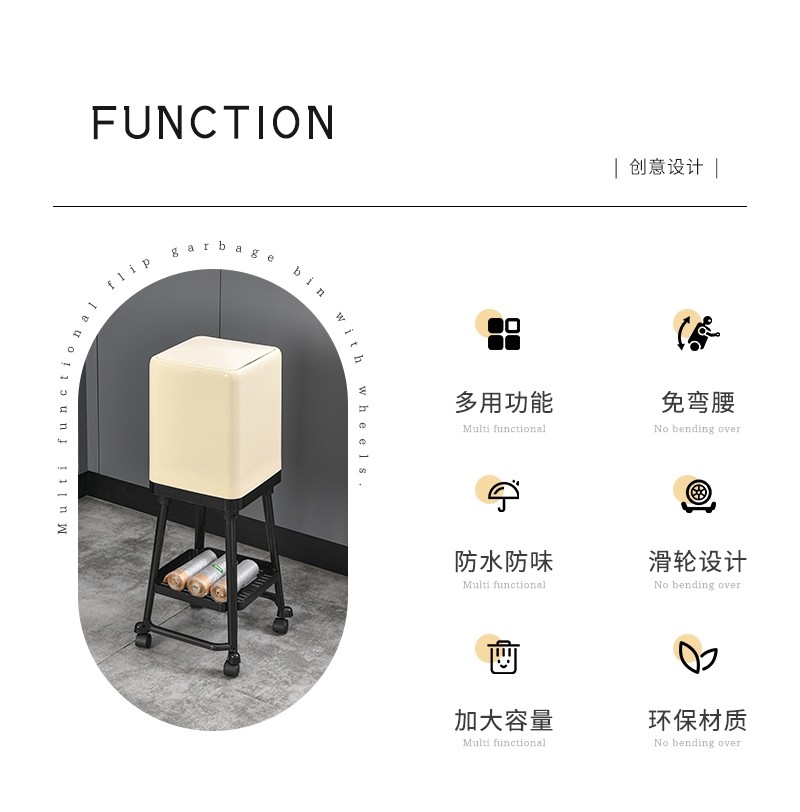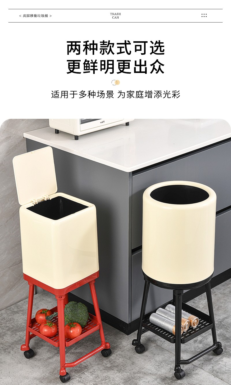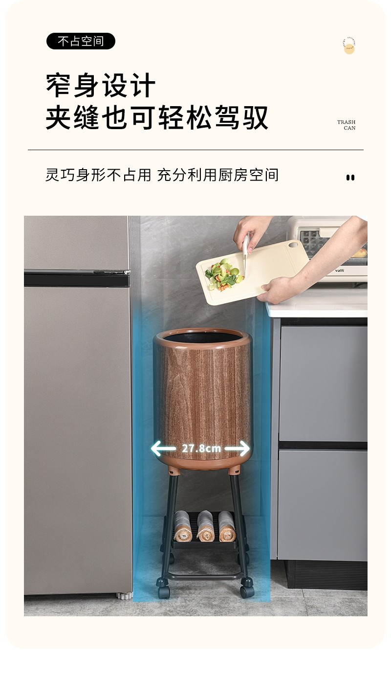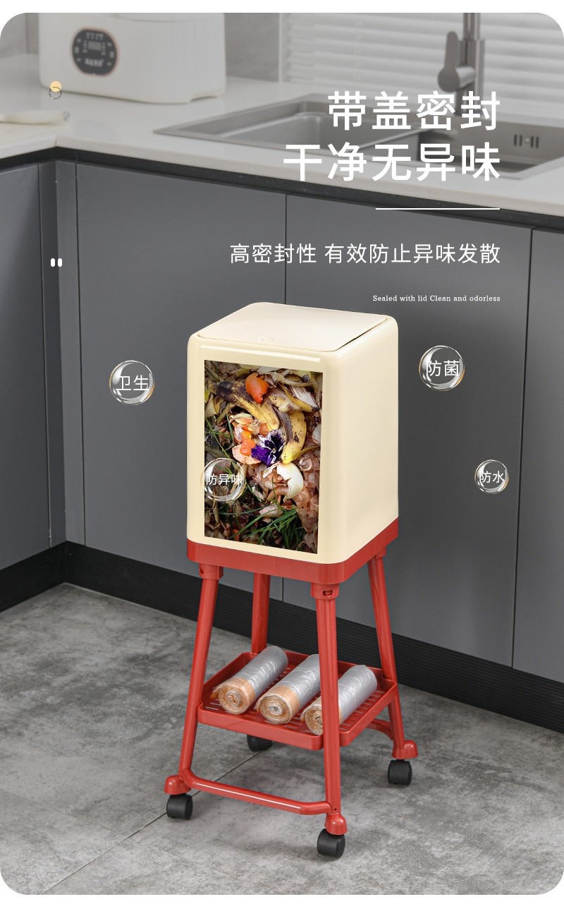 Japanese Imported Kitchen-Specific Household Trash Can, No Need to Bend Over, High Aesthetic Value, with Lid, Movable, Large Capacity