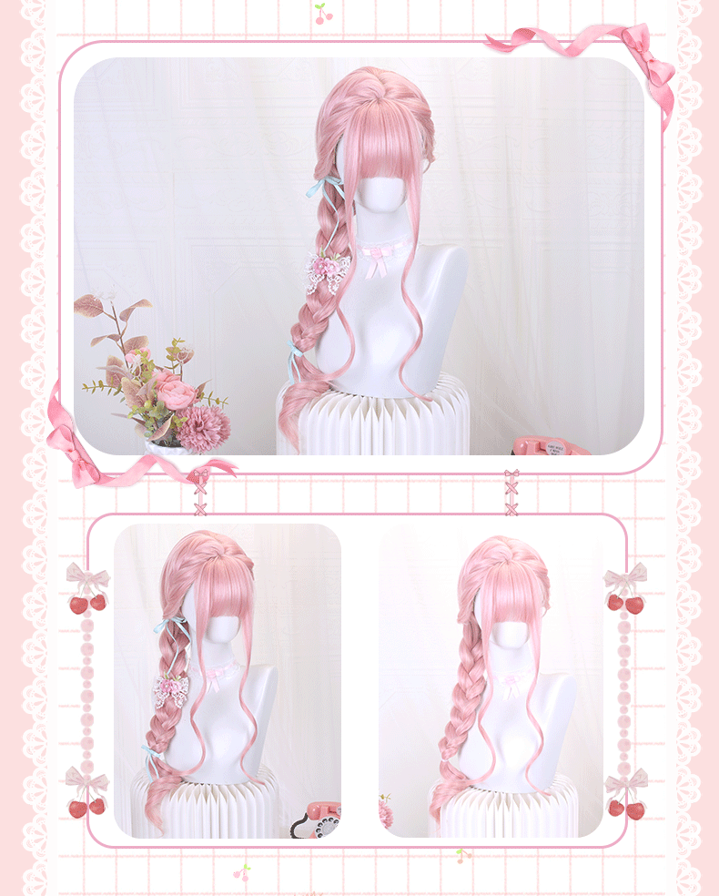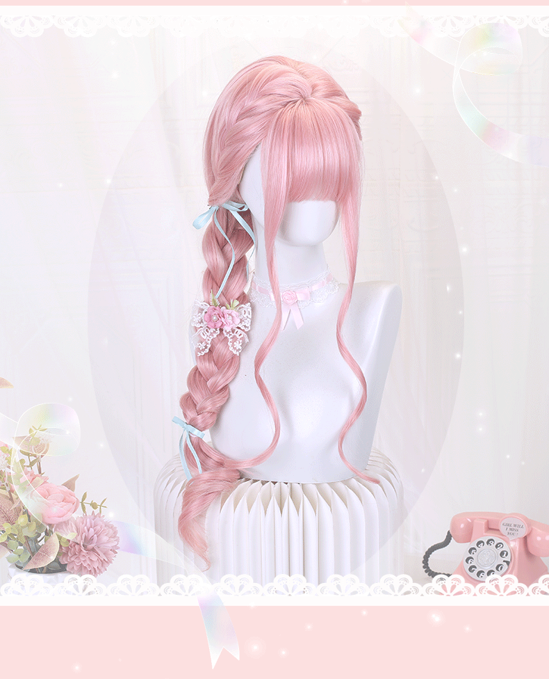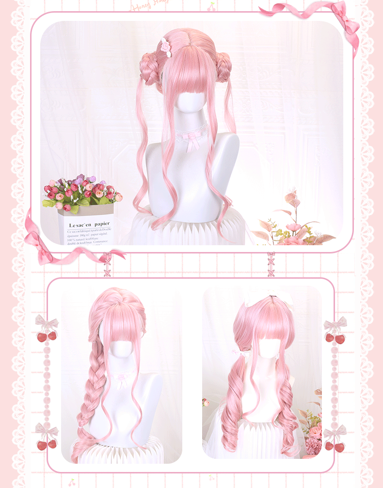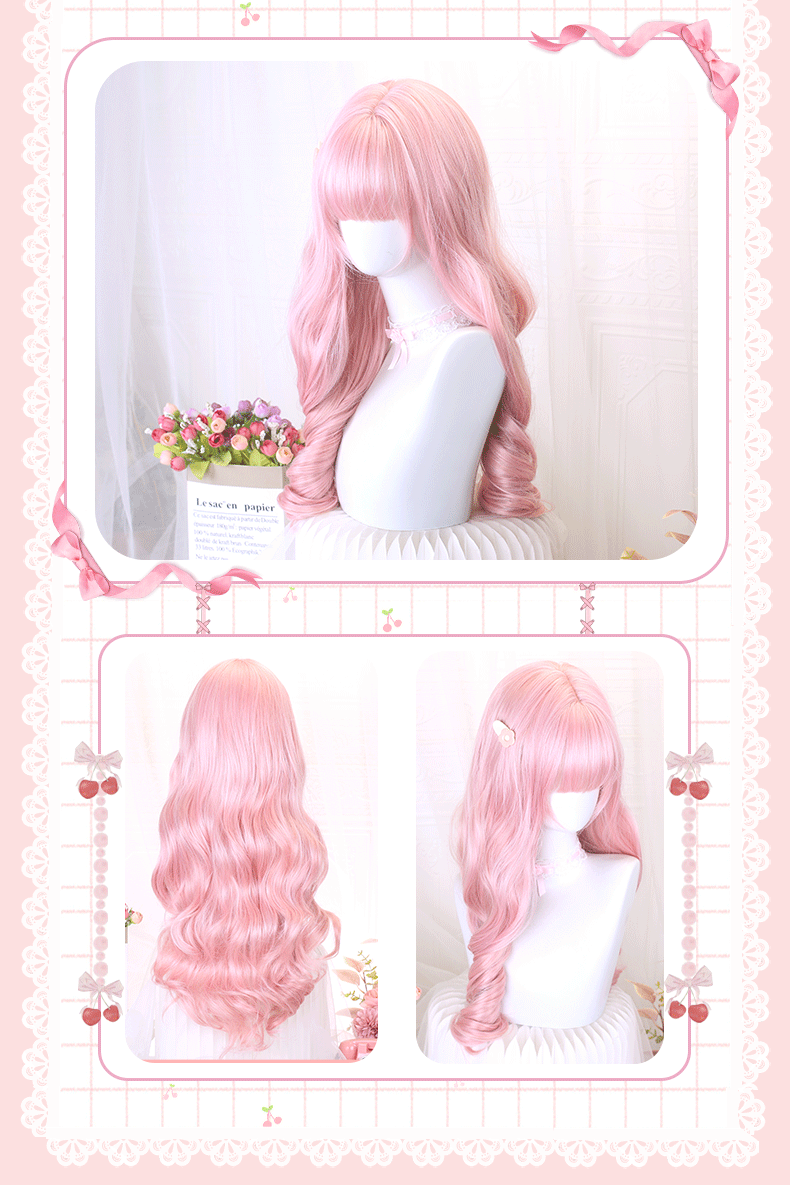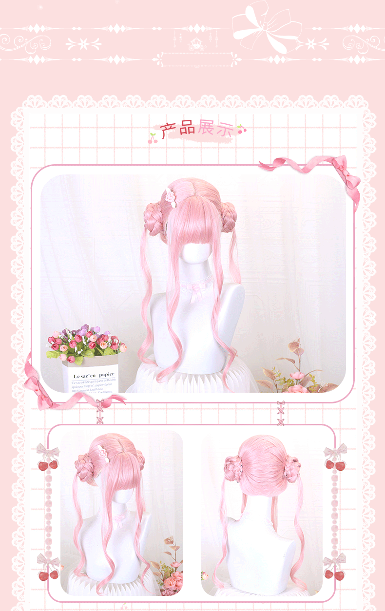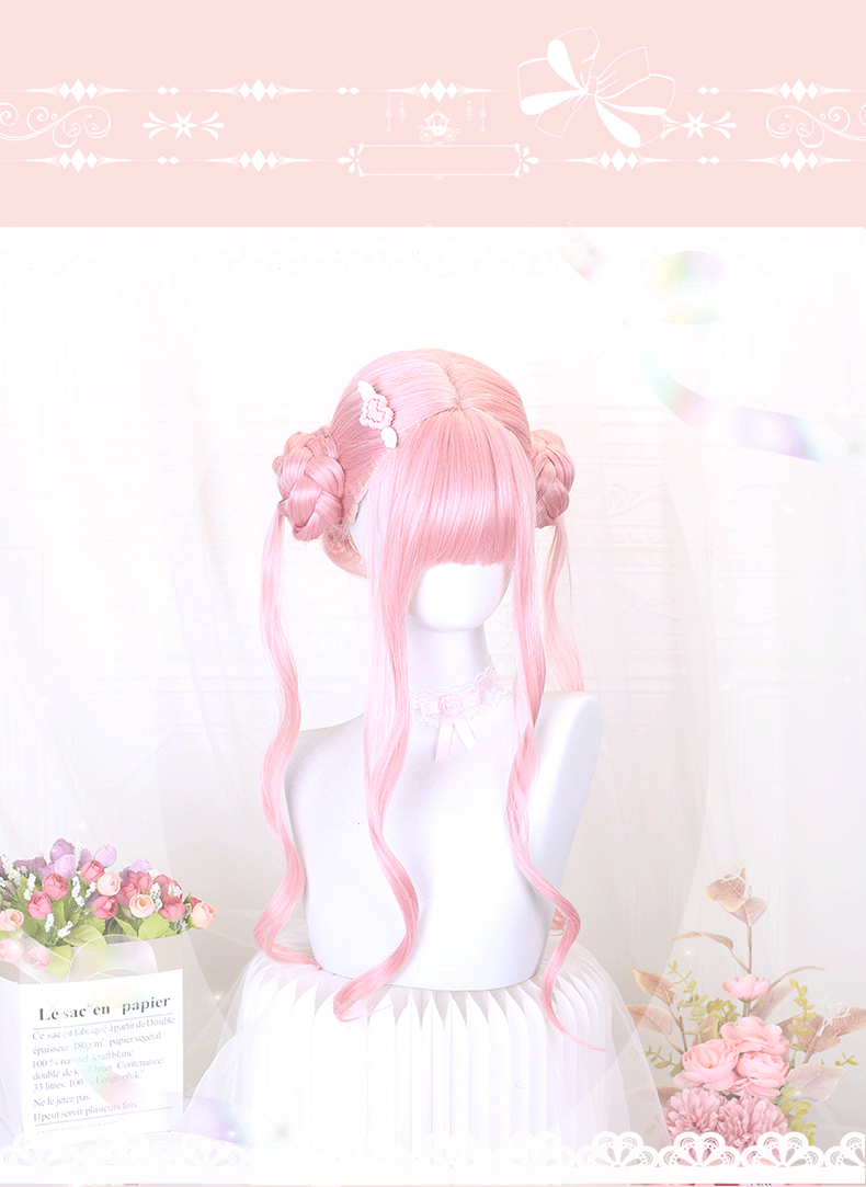 Kiris pink long curly Lolita double ponytail anime cos soft girl princess style daily wig