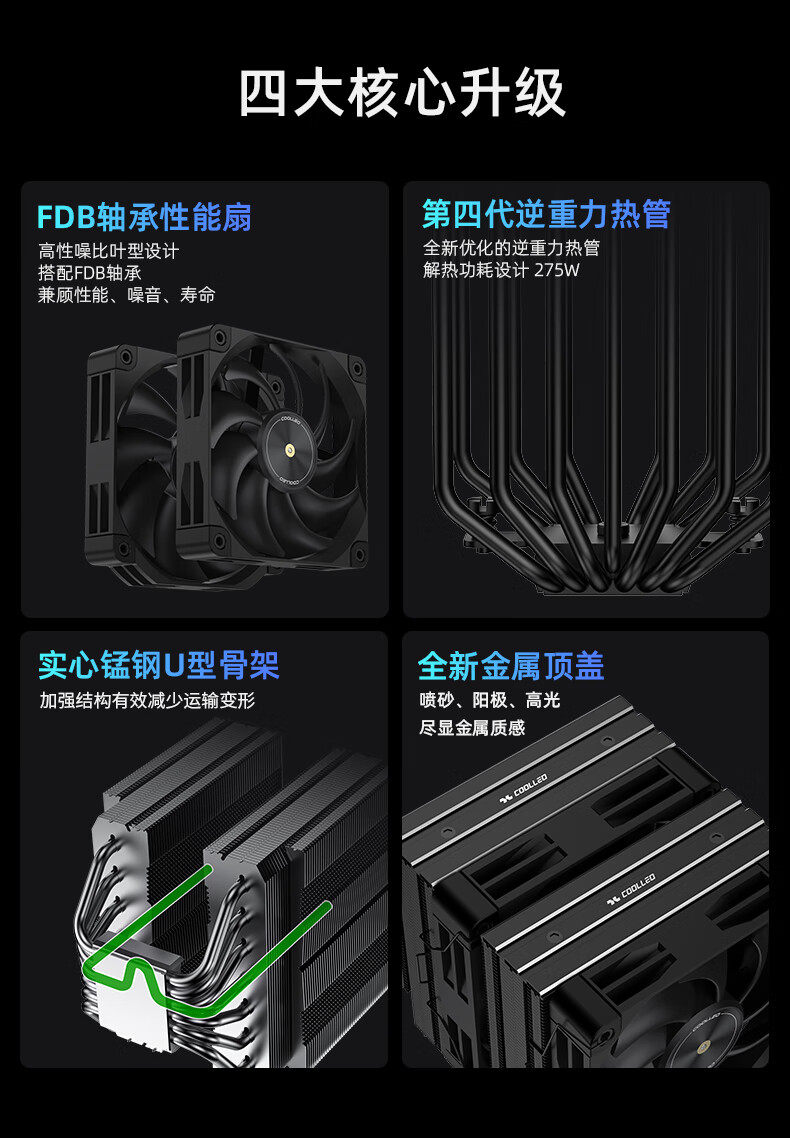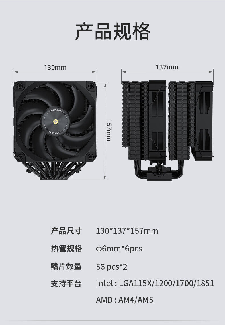 Coolio P60T V3 Ultra dual tower dual fan CPU air cooling radiator six heat pipe U-shaped manganese steel frame