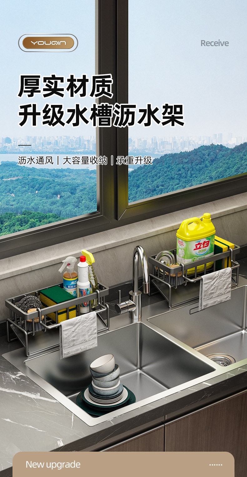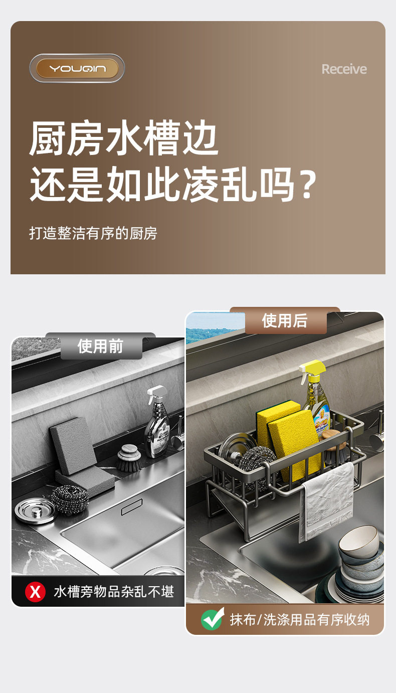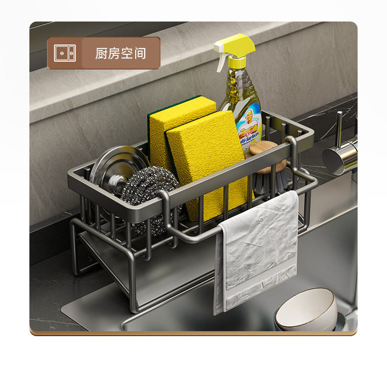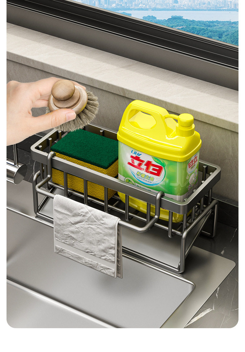 Japanese-Style Light Luxury Kitchen Storage Rack, Sink Cloth Drying Rack, Faucet Sink Dishwashing Detergent Steel Wool Ball Holder