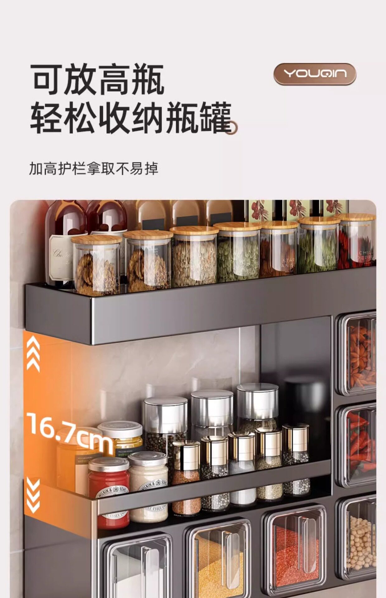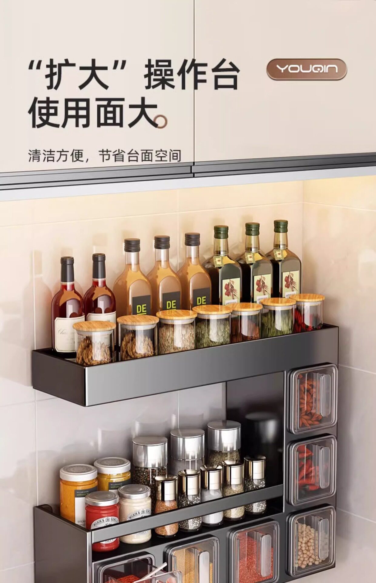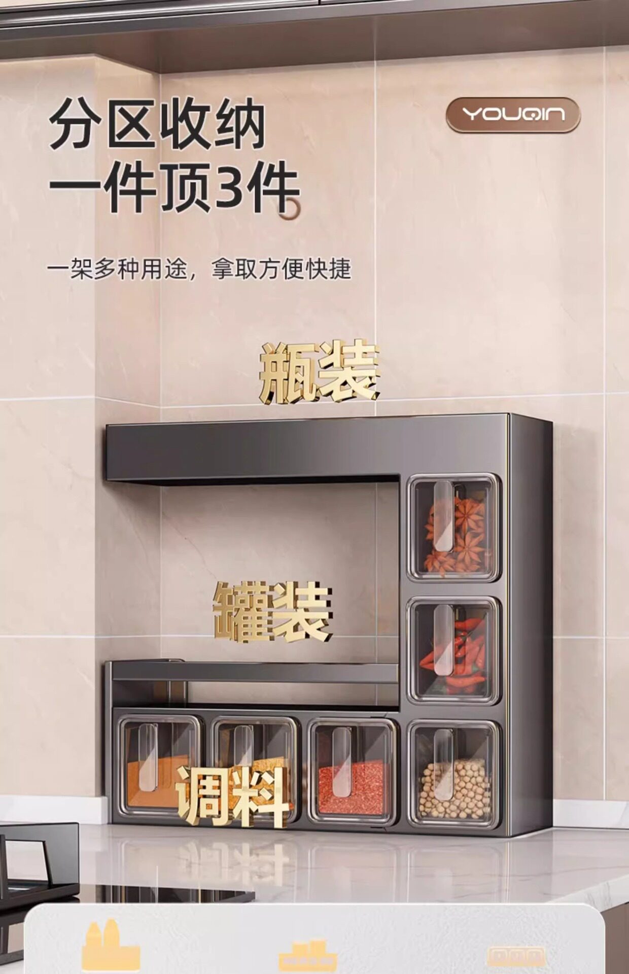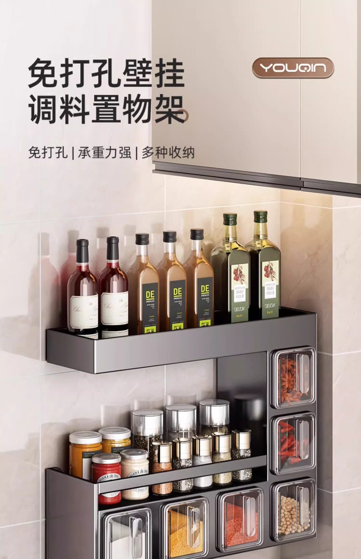 Japanese-Style Light Luxury Seasoning Box Wall-Mounted Home Kitchen High-End New Model Spice Jar Storage Rack Seasoning Storage Box