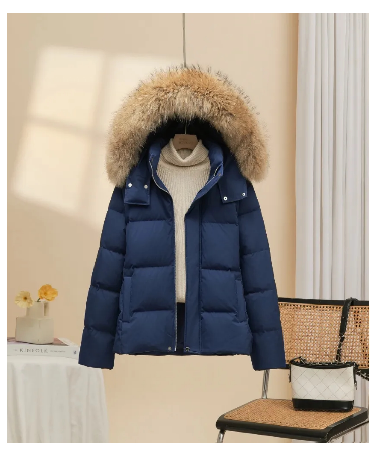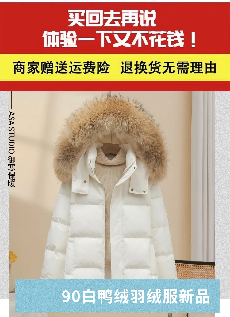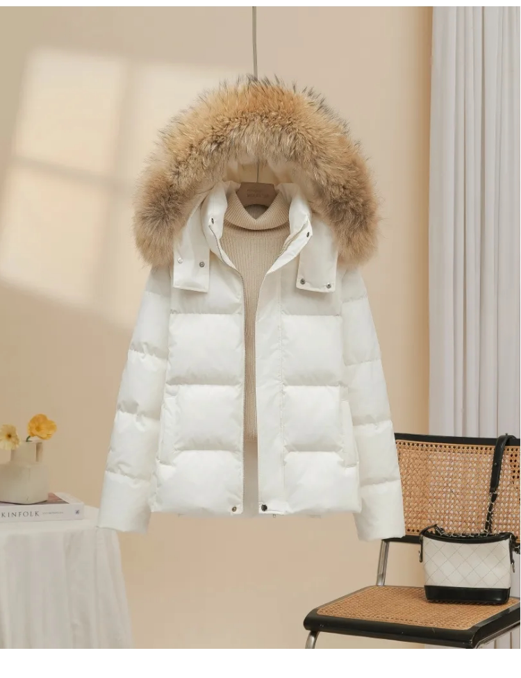 90 White Duck Down Down Jacket Women's Short 2025 New Fashion Small Slim Fur Collar Warmth Thickened Winter Trendy