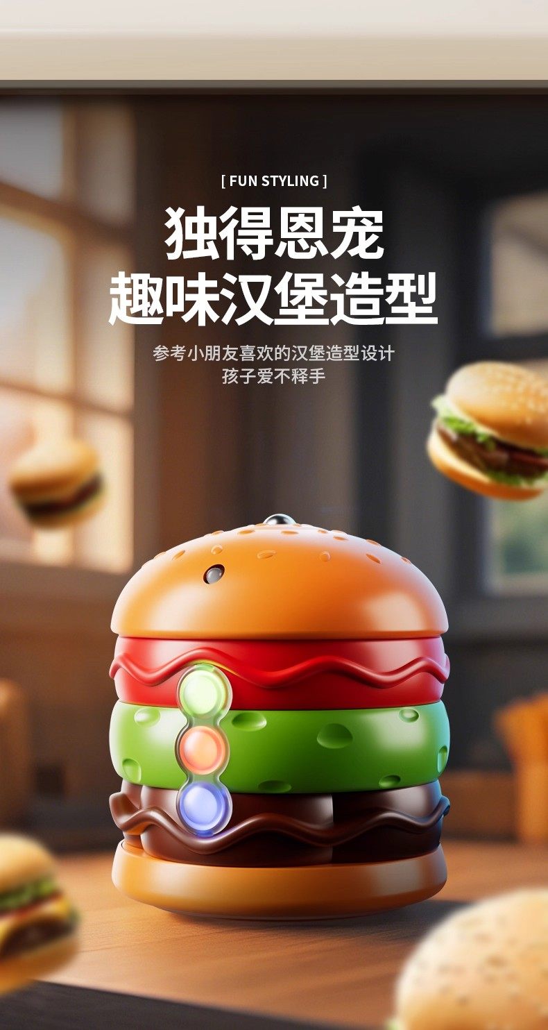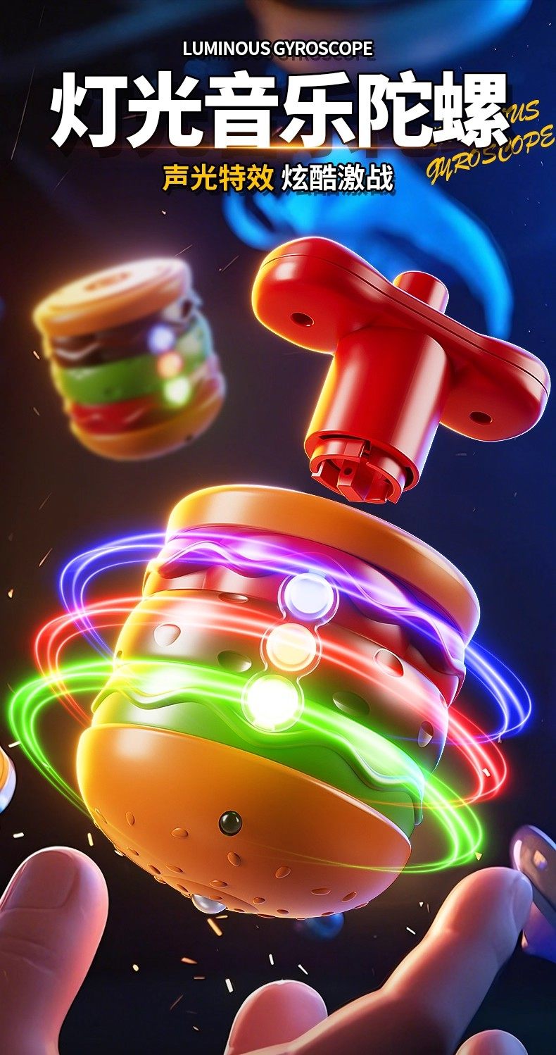 Popular Hamburger Spinning Top with Colorful Lights and Music, Outdoor Educational Toy for Children, Boys and Girls Aged 3 to 6