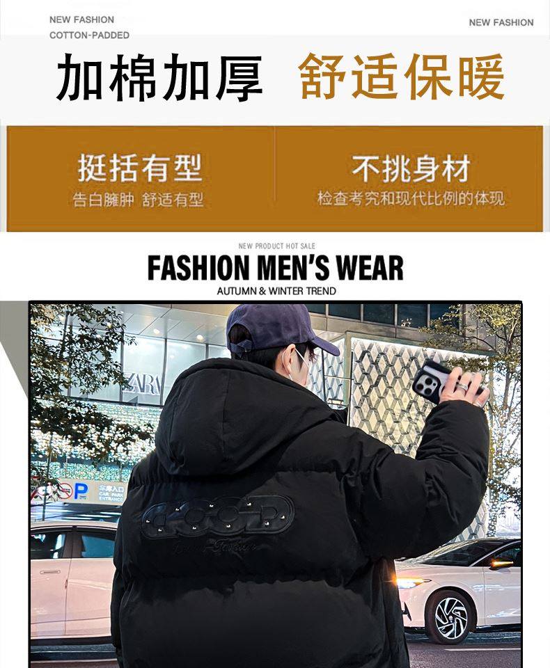 Fake two-piece cotton coat men's new winter thickened cotton coat men's hooded winter coat cotton jacket teenagers warm jacket