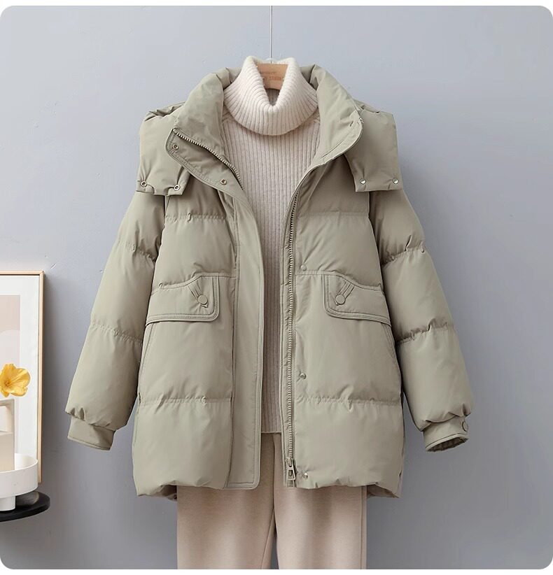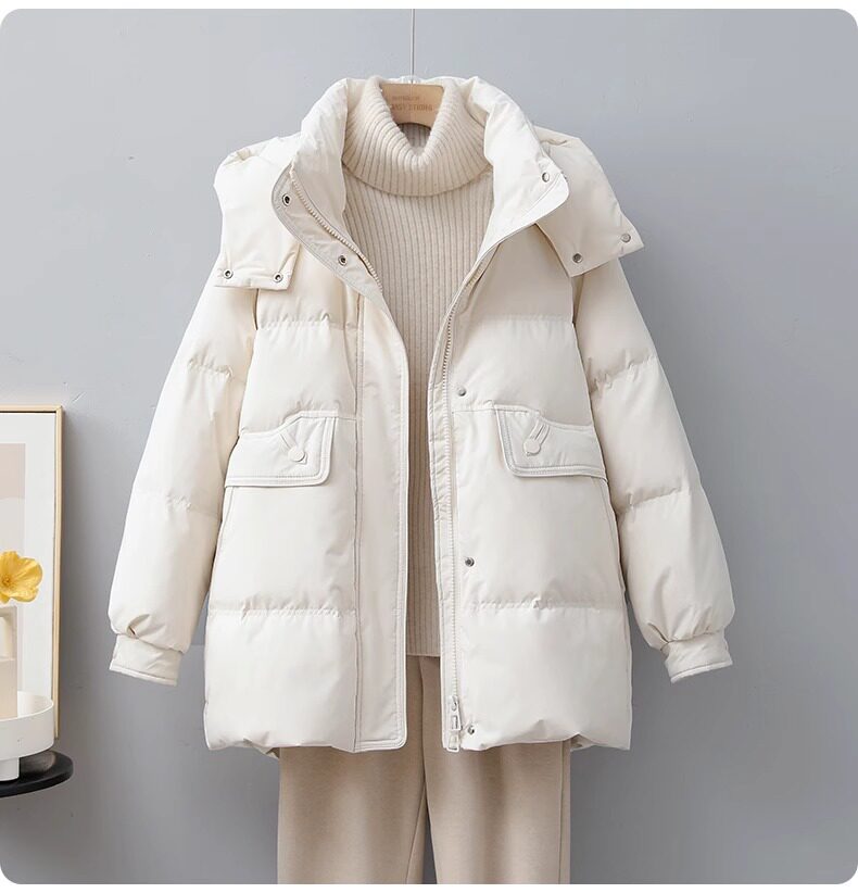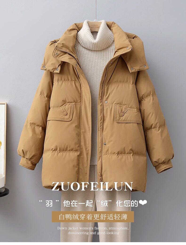 Down jacket women's winter thickening 2026 new loose slimming mid-length white duck down cotton-padded jacket trendy