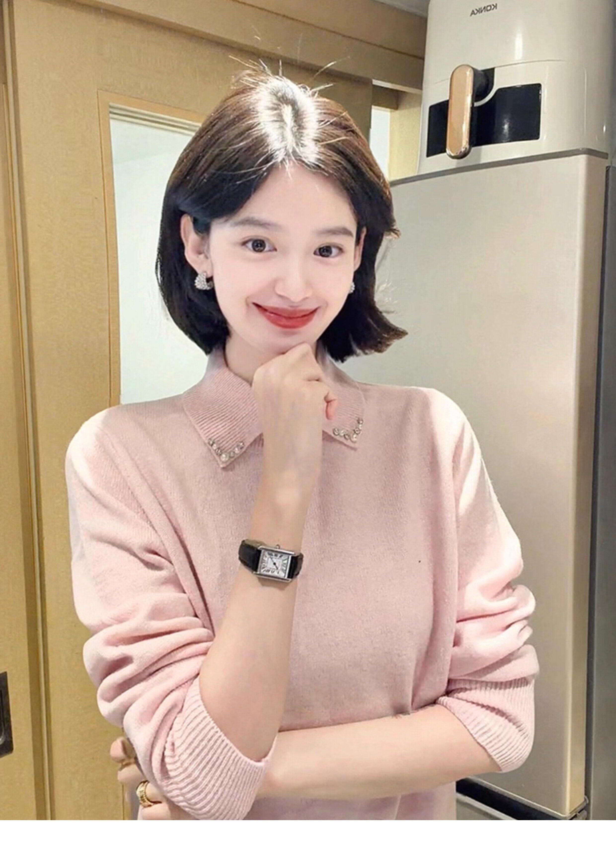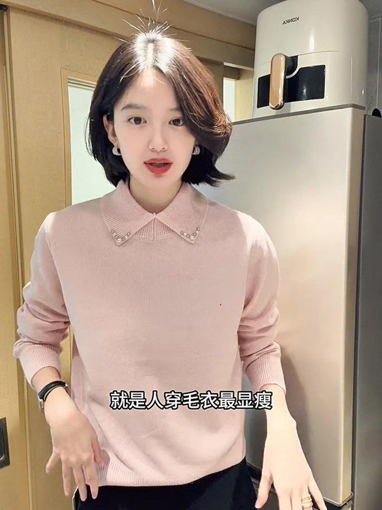 Great looking pink hot diamond lapel sweater for women in autumn and winter, soft and waxy inner sweater base polo collar top