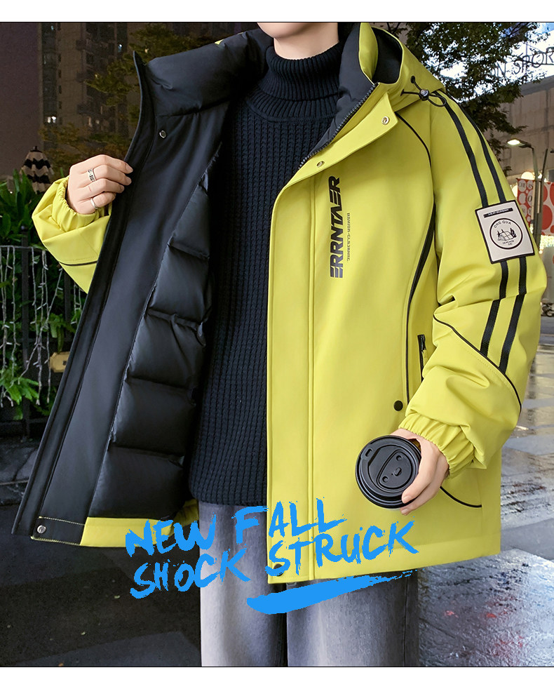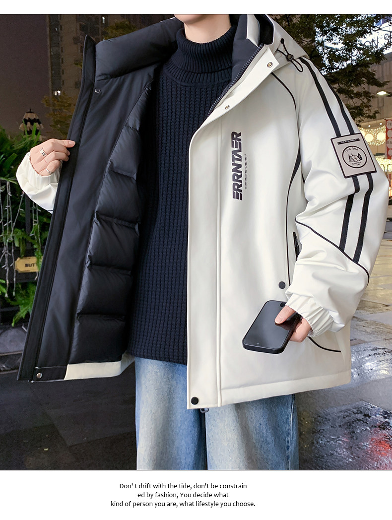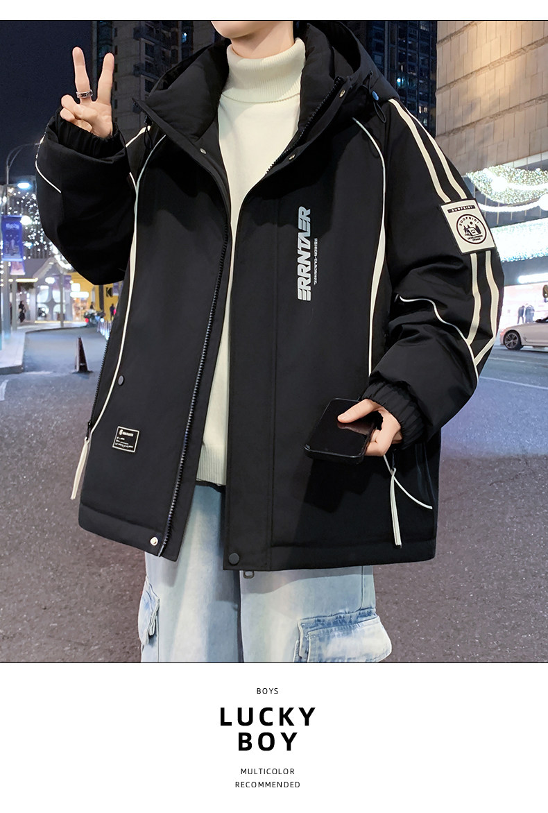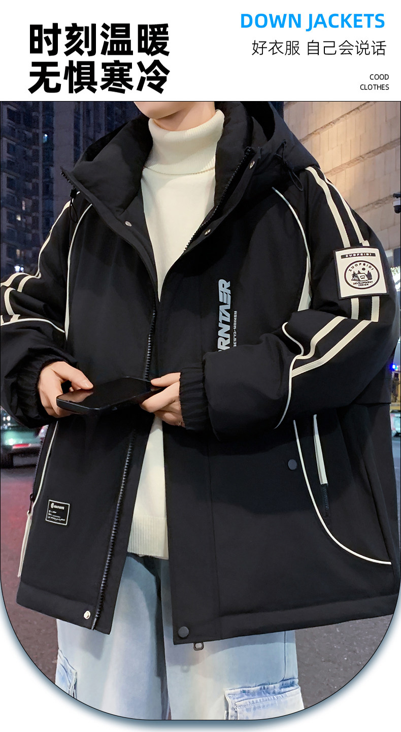 Down jacket men's new winter hooded thickened warm jacket for men, teenagers and big children outdoor color matching cold-proof clothes