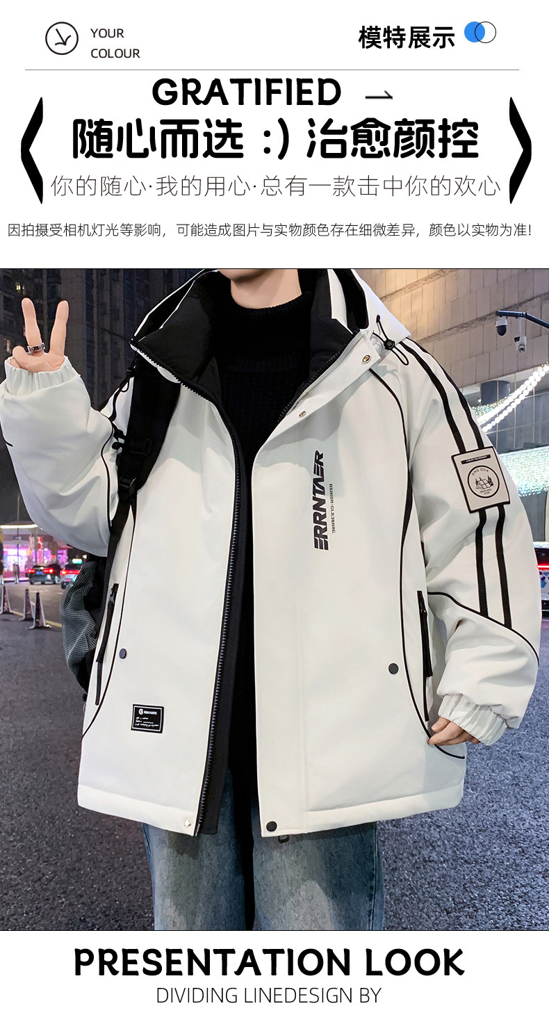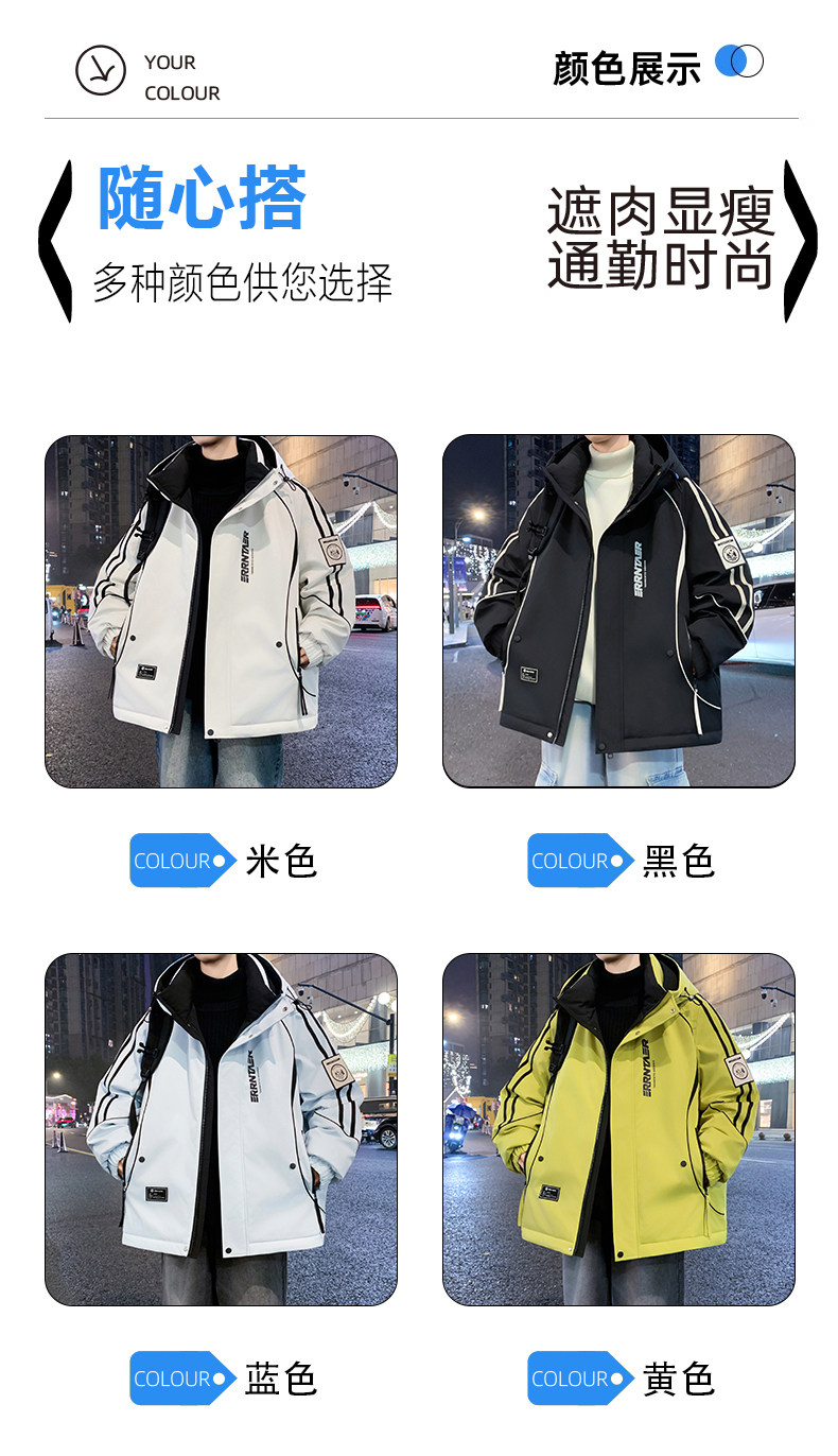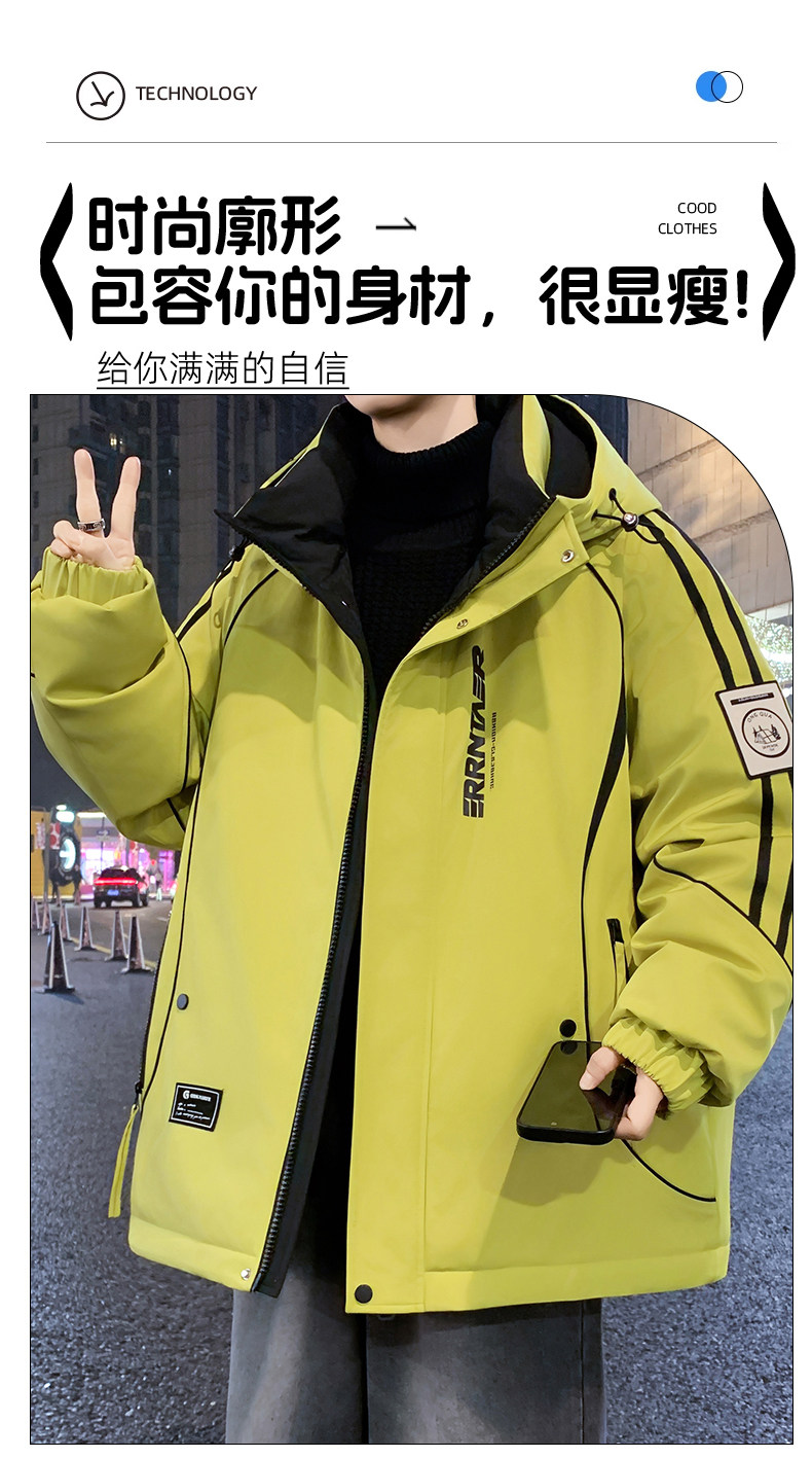 Down jacket men's new winter hooded thickened warm jacket for men, teenagers and big children outdoor color matching cold-proof clothes