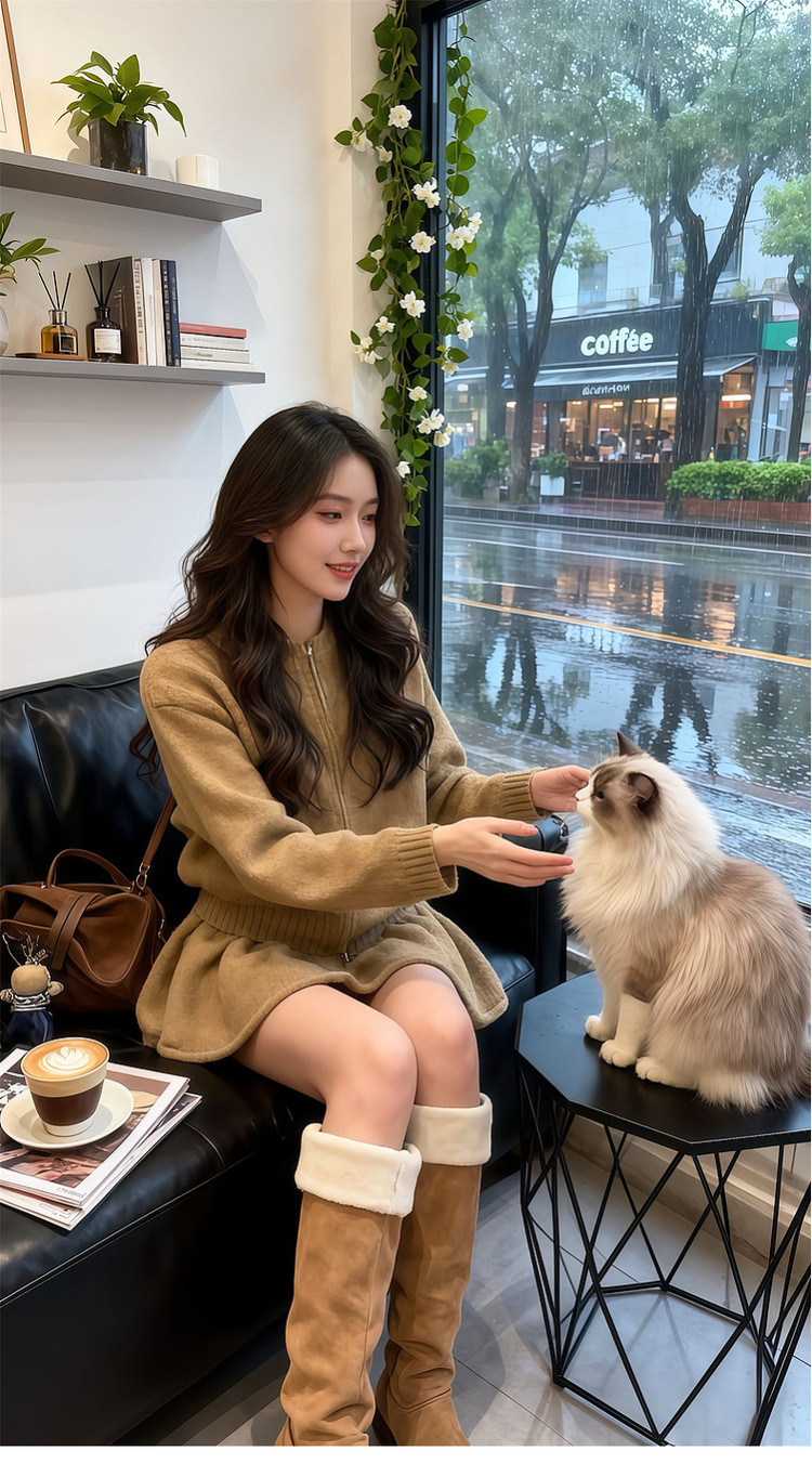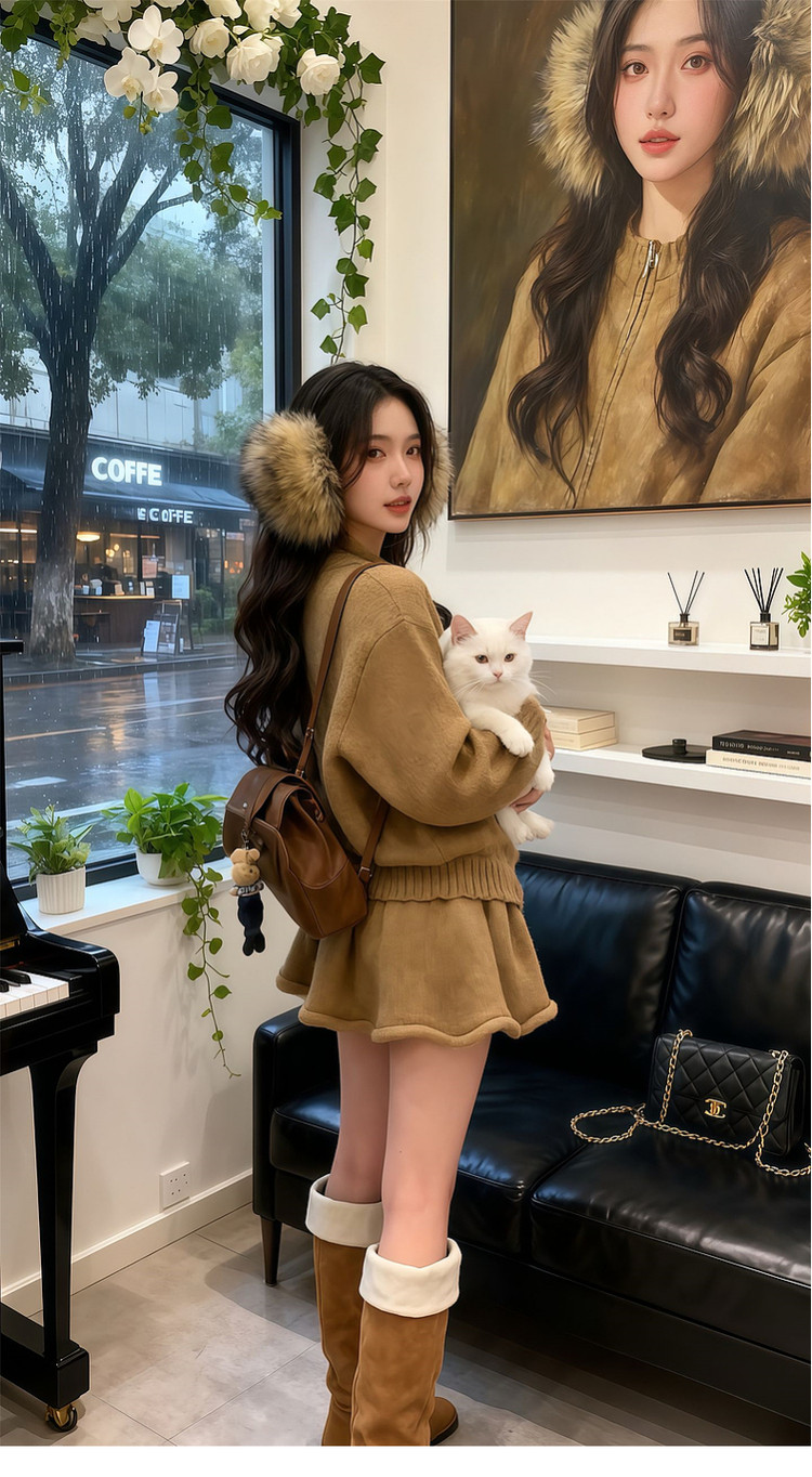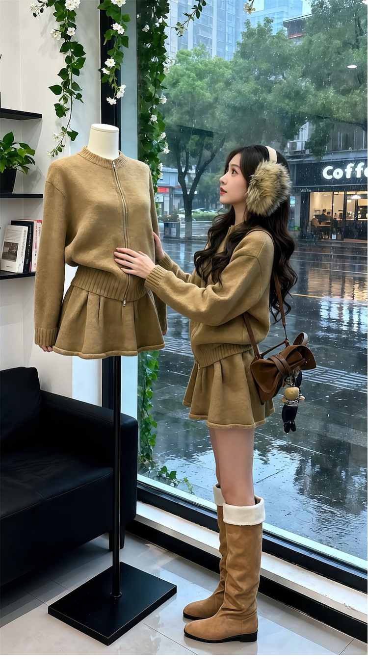 2026 new style for little Maillard to wear knitted sweater suit, short skirt, lazy style dress for women in autumn and winter