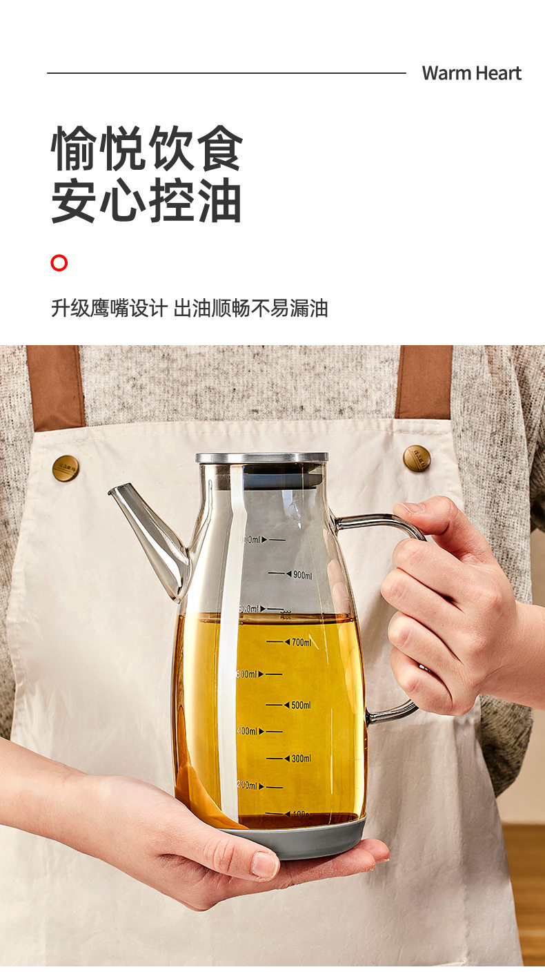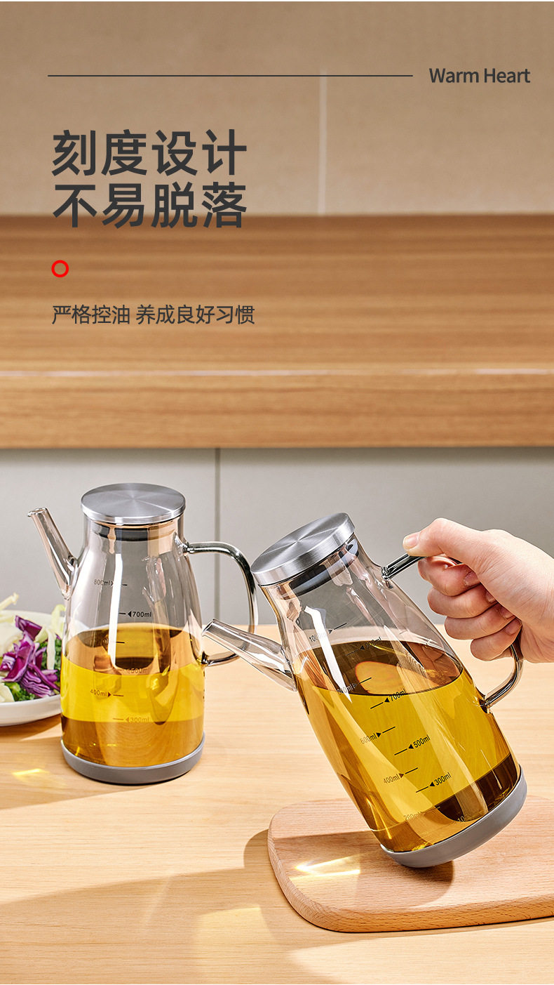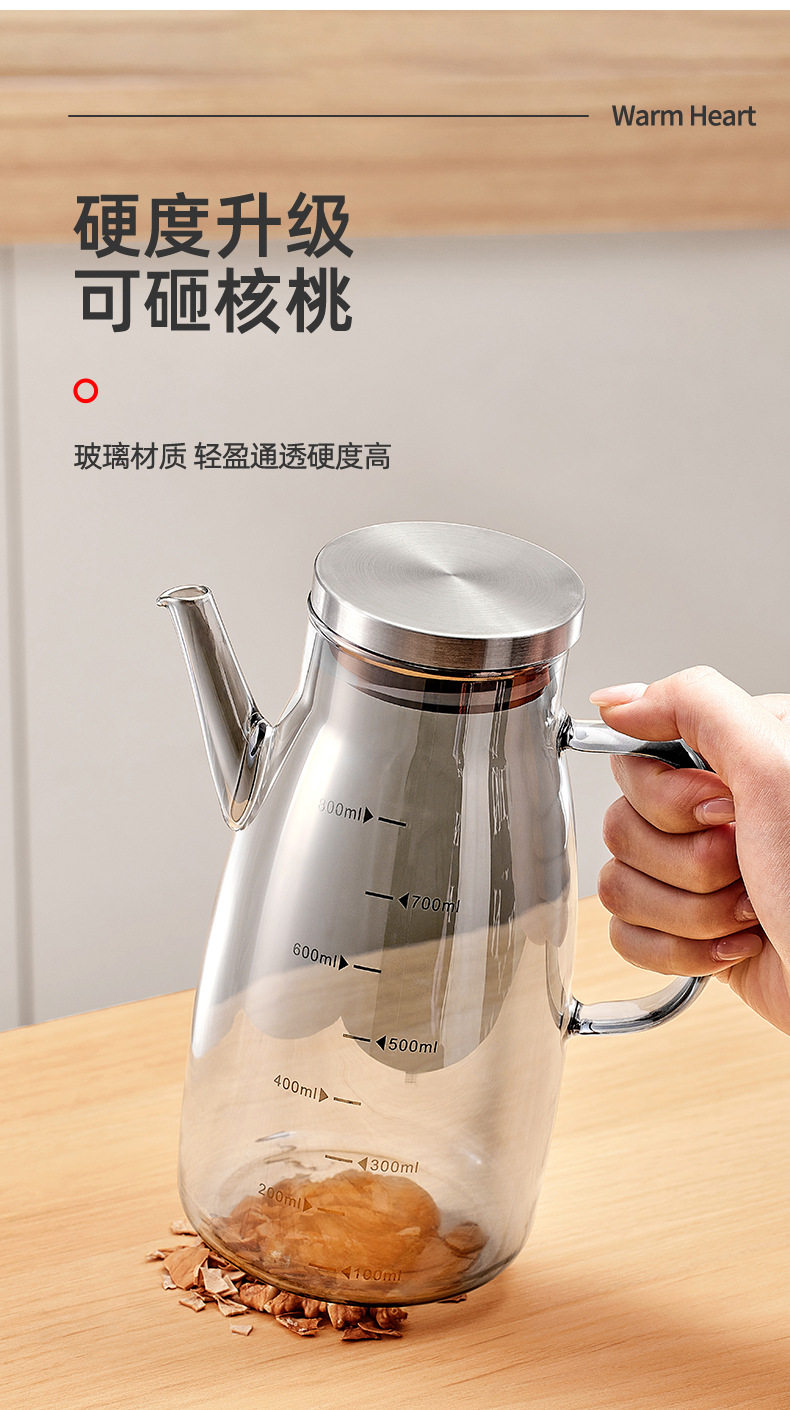 Glass Oil Pot for Kitchen Use, Non-Stick Oil Bottle, Soy Sauce and Vinegar Seasoning Bottle, Stainless Steel Large Oil Container