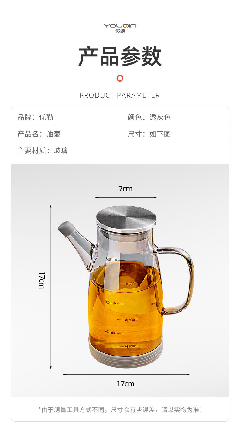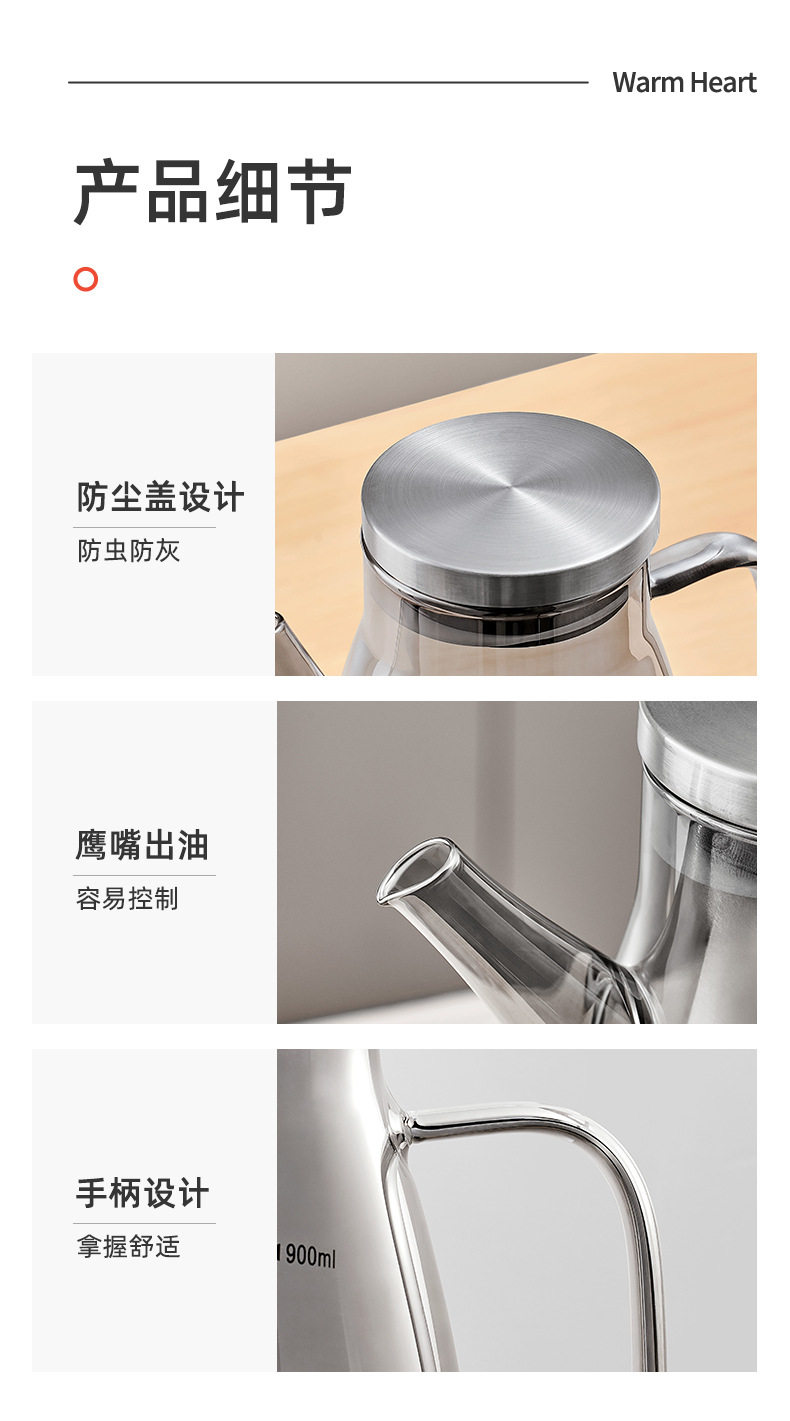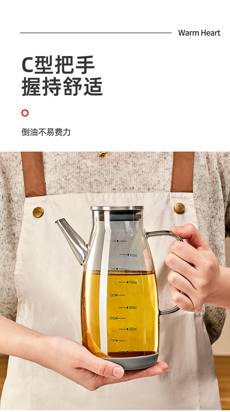Glass Oil Pot for Kitchen Use, Non-Stick Oil Bottle, Soy Sauce and Vinegar Seasoning Bottle, Stainless Steel Large Oil Container
