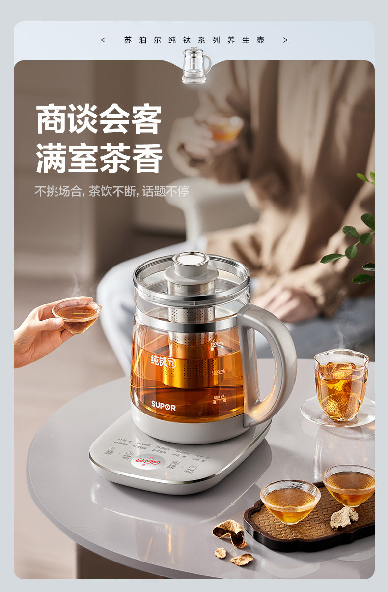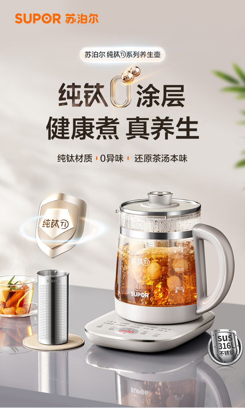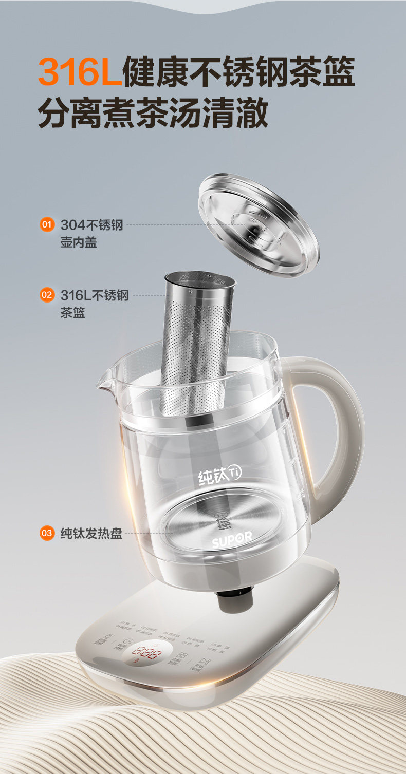Supor Pure Titanium Health Pot and Tea Kettle, 2025 New Model, Multifunctional for Home and Office Use