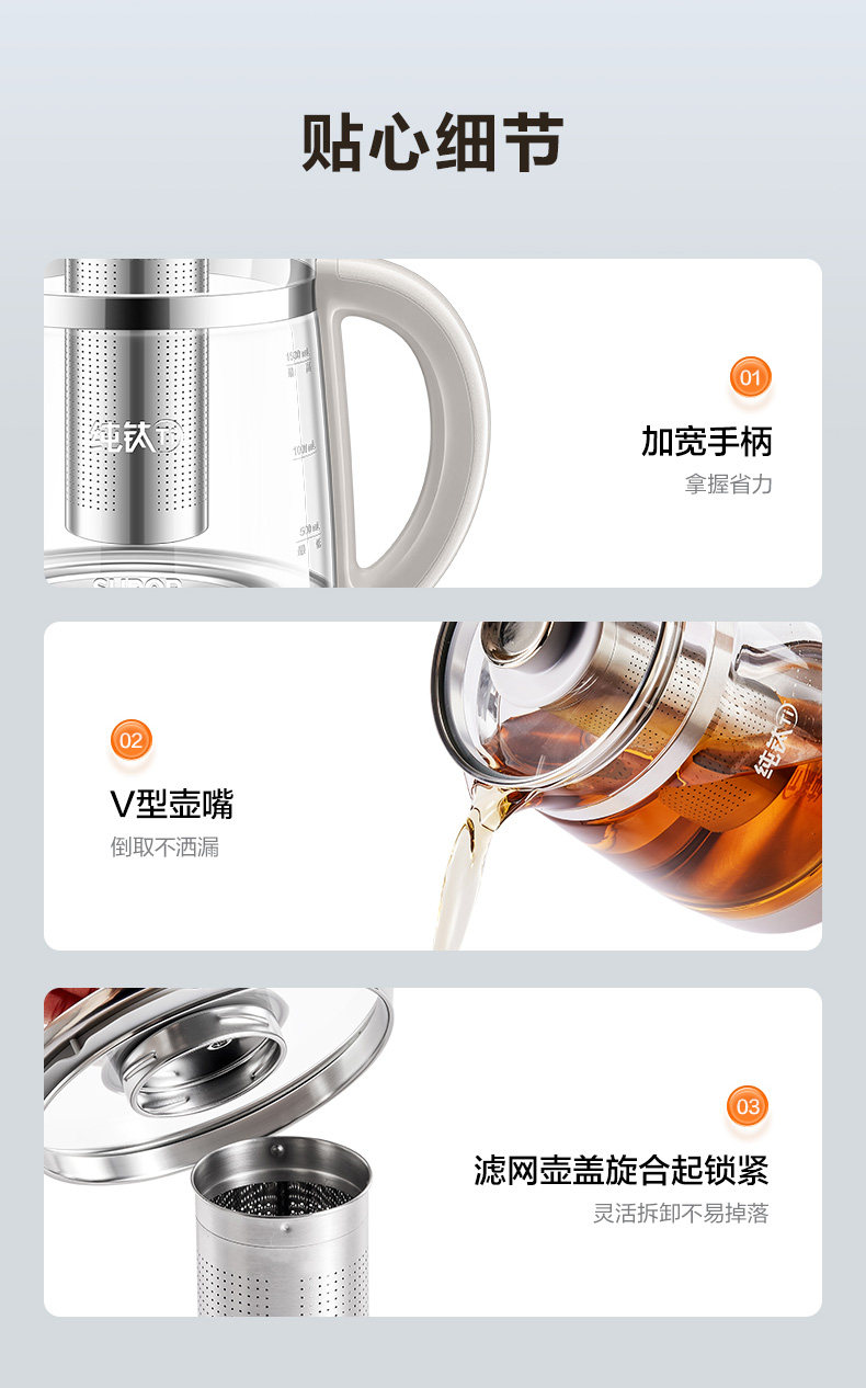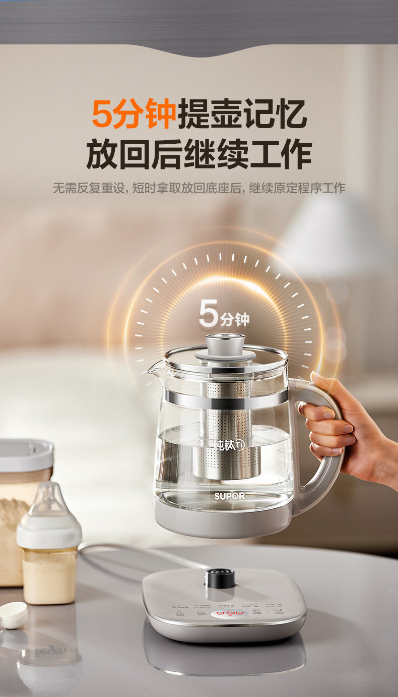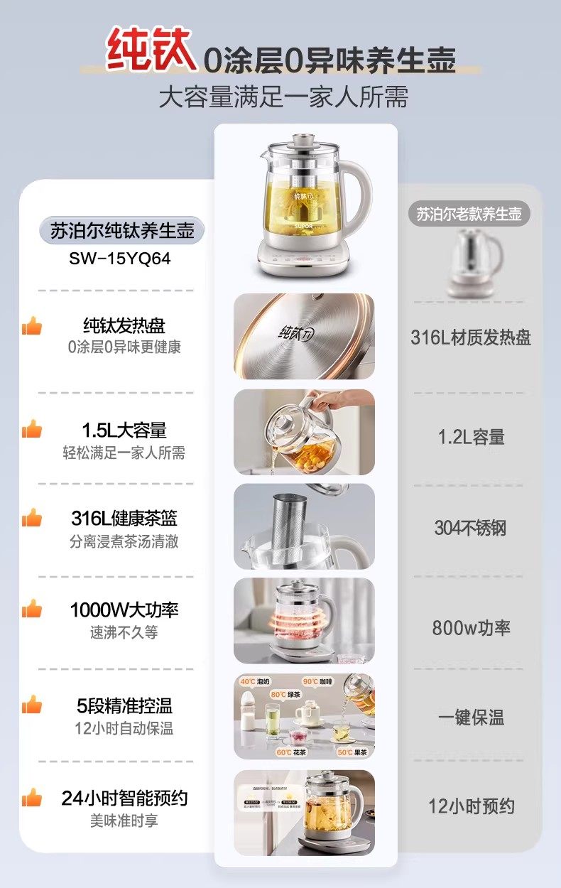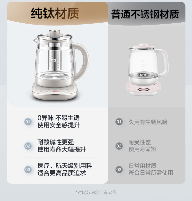 Supor Pure Titanium Health Pot and Tea Kettle, 2025 New Model, Multifunctional for Home and Office Use
