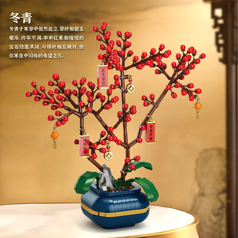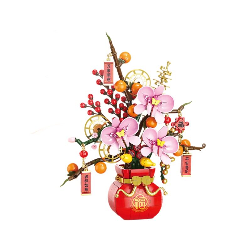 Color Classification 9120 Plum Blossom 547 Capsules,9121 Persimmon Ruyi 818 Capsules,9122 Holly 855 Granules,9123 Phalaenopsis 587 Grains,9124 Narcissus 778 Grains,9125 Peach Blossom 1076 Grains,W1001 New Year Flower Basket Auspicious Ruyi 409 Capsules,W1002 New Year Flower Basket - May Wealth Flow in (484 Pieces),W1003 New Year Flower Basket - "Grand Ambitions" - 532 Pieces,New Year 9020 Lucky Cat 868 Capsules Lighting Version,New Year 9021 Good Luck Lucky Cat 868 Capsules Lighting Version,New Year 9022 Lucky Bag Kumquat Tree 671 Capsules Lighting Version,New Year 9023 Kumquat Tree Music Box Lighting Version 419 Particles + Music Box