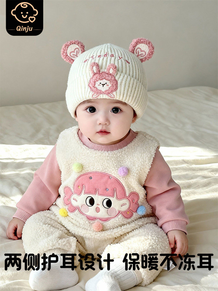 Infant and Toddler Hats for Autumn and Winter, Warm and Thick Knitted Pullover Hats for Baby Girls, Cute Windproof Woolen Hats for Young Babies