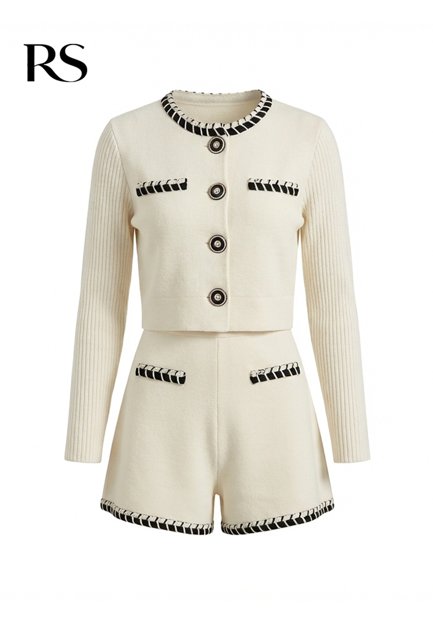 RUSUI Rusui high-end petty bourgeoisie light luxury high-end small fragrance white short jacket top shorts two-piece suit