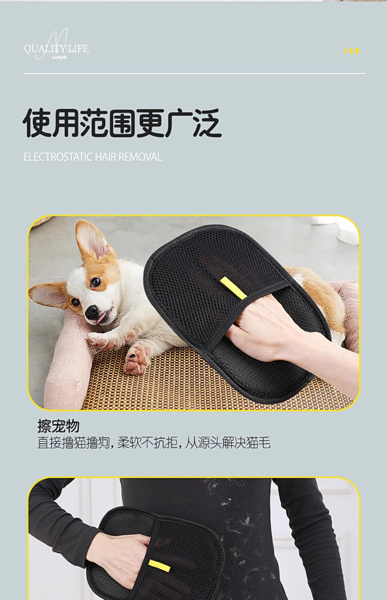 Pet Static Hair Removal Glove, Household Two-Way Hair Brush, Sticky Hair Remover, Cat and Dog Hair Cleaning, Complete Pet Supplies