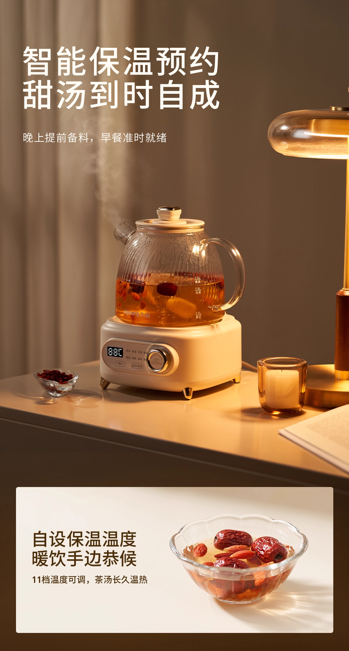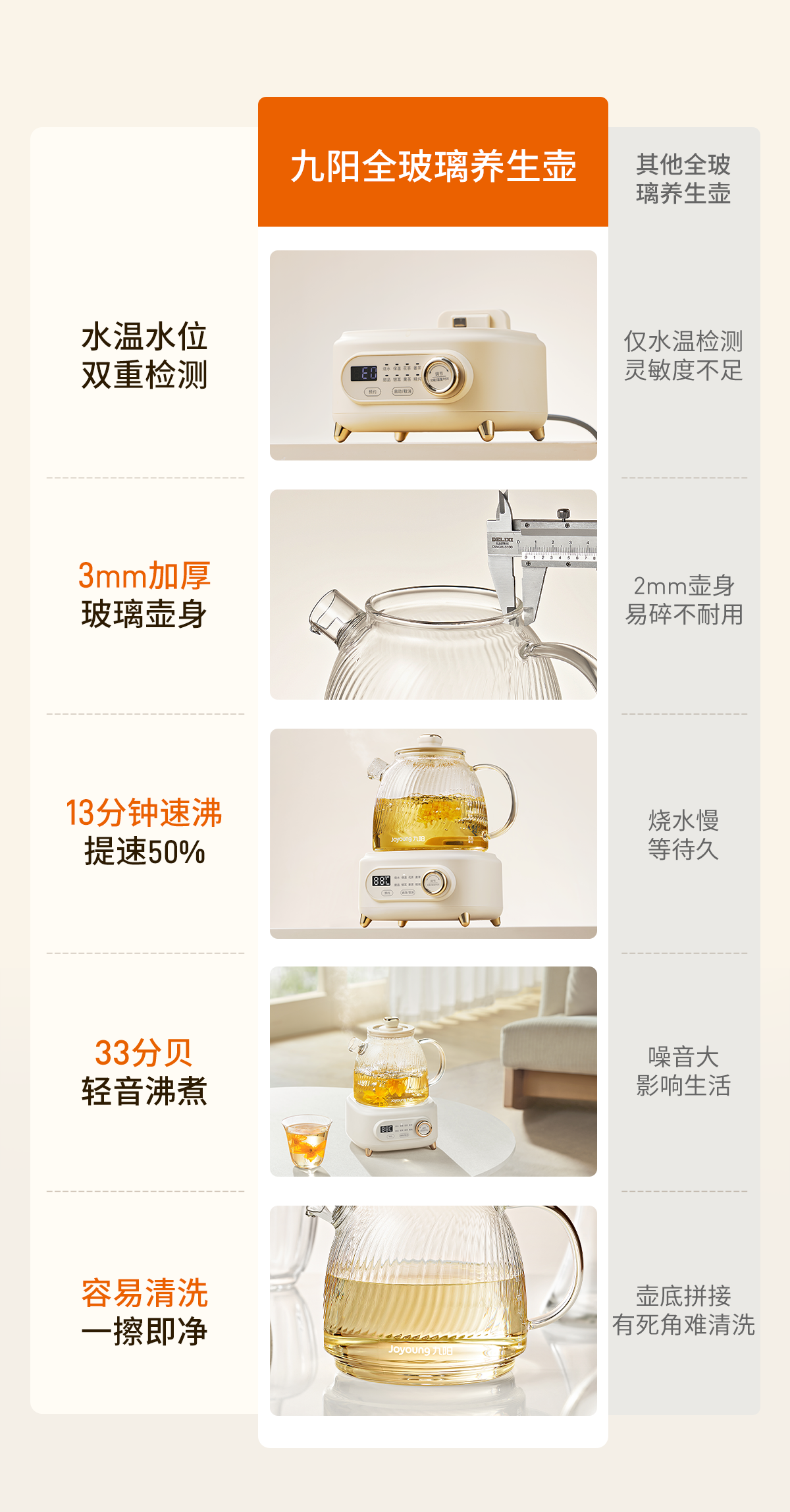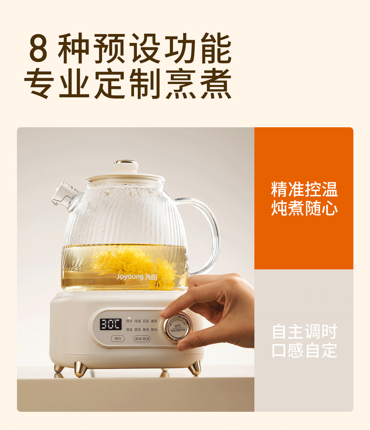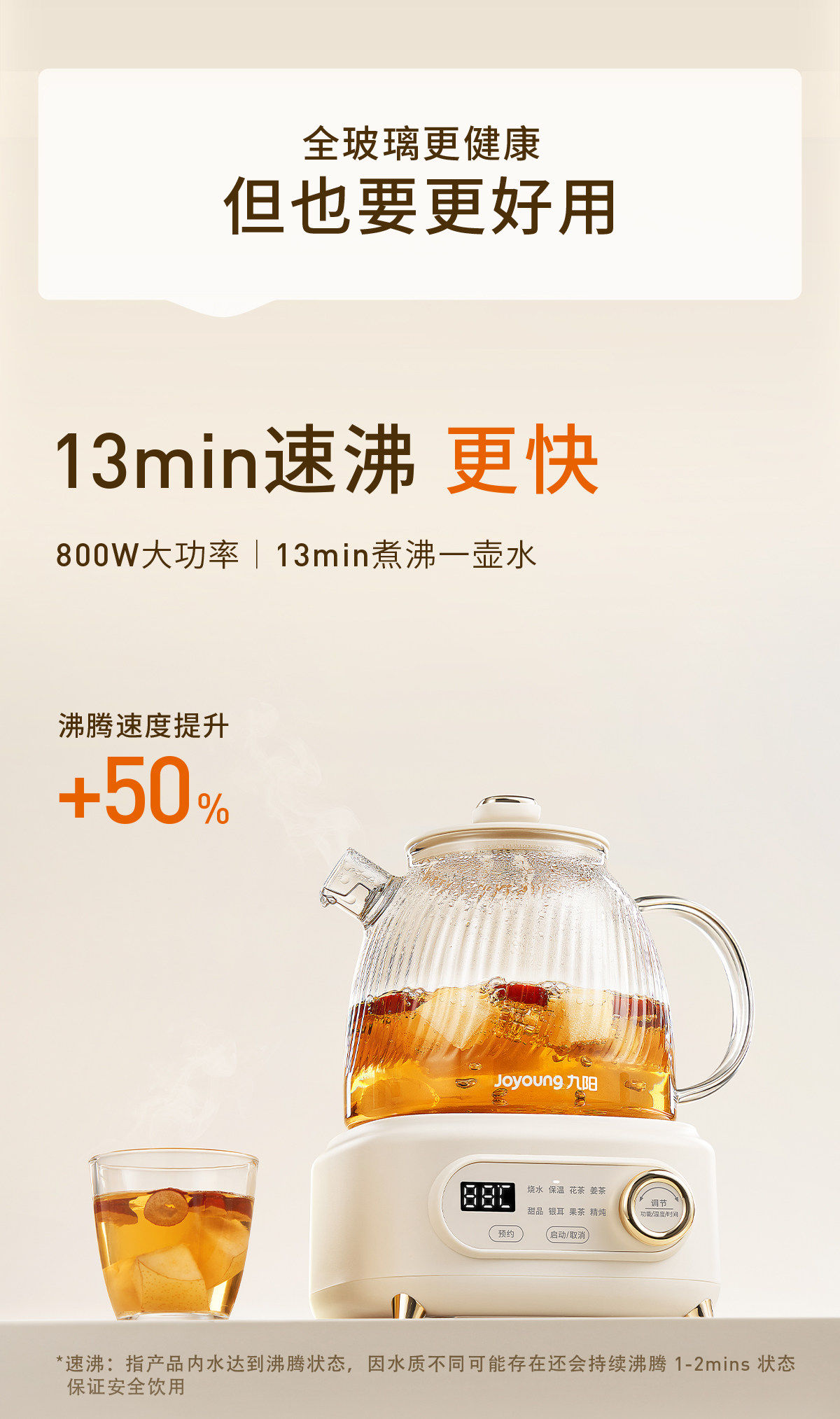 Joyoung All-Glass Constant Temperature Health Kettle, Small Multifunctional Office and Home Use Tea Brewing and Water Boiling Kettle, Water Dispenser