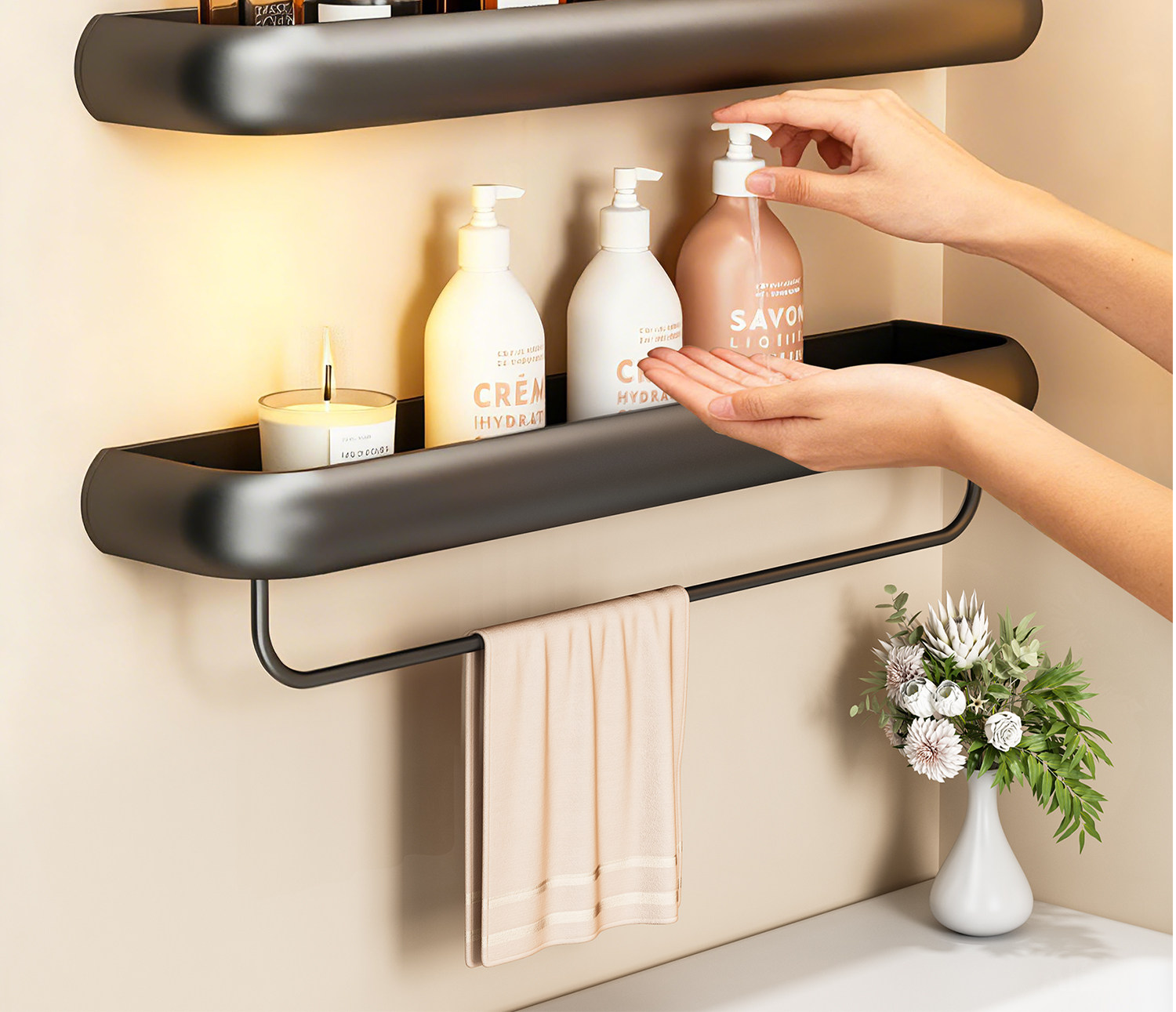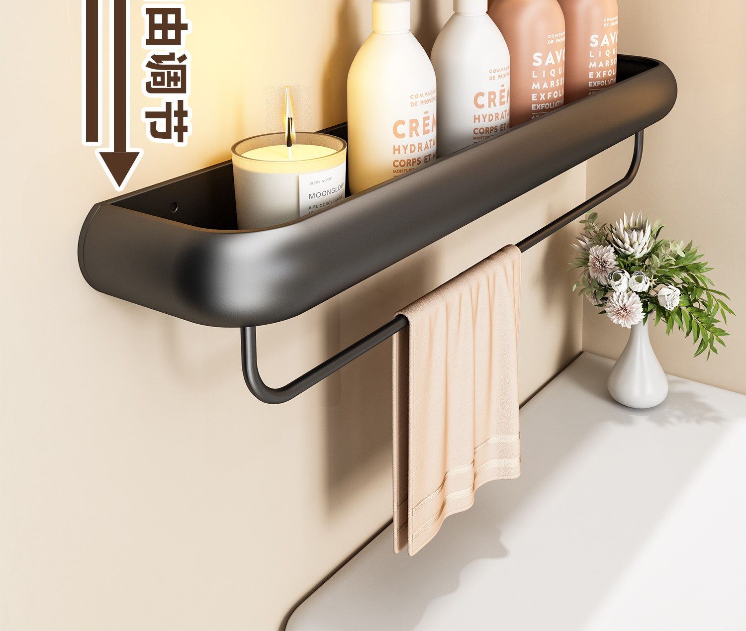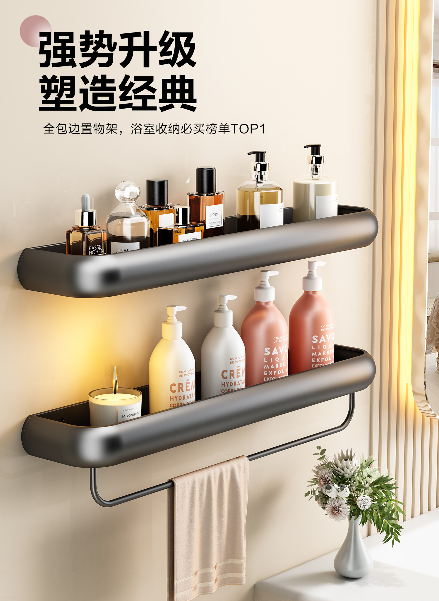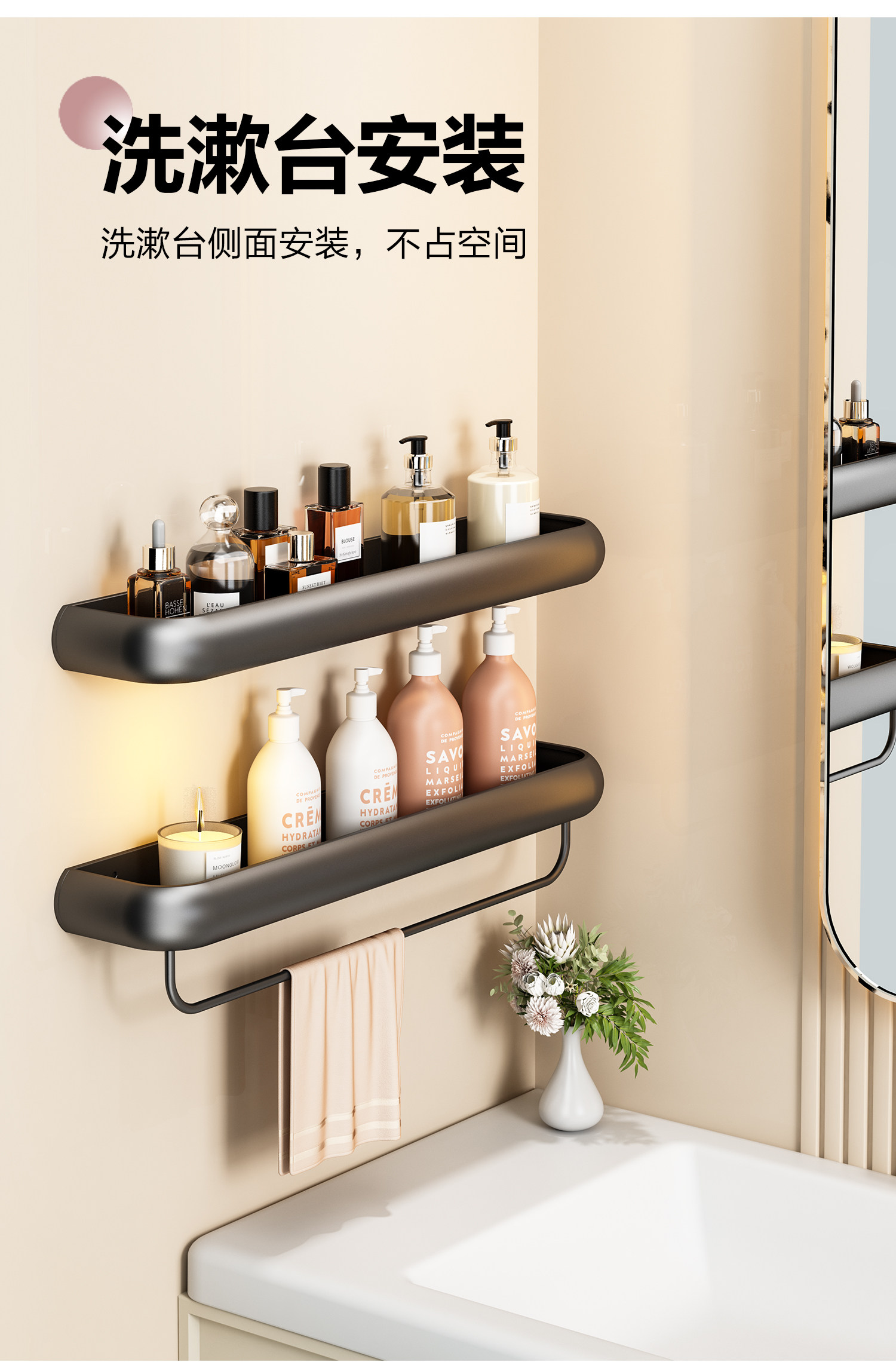 Bathroom storage rack, bathroom wall-mounted towel rack, toilet washbasin, bathroom wall shampoo storage rack
