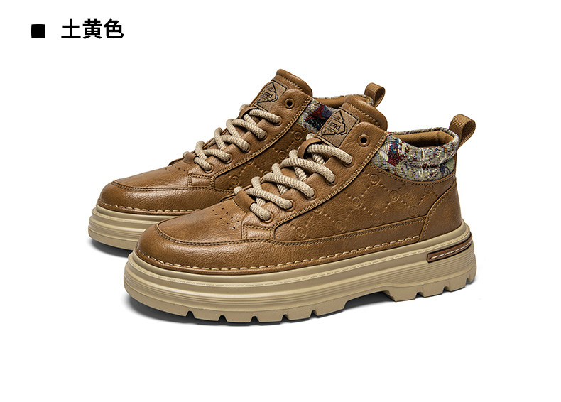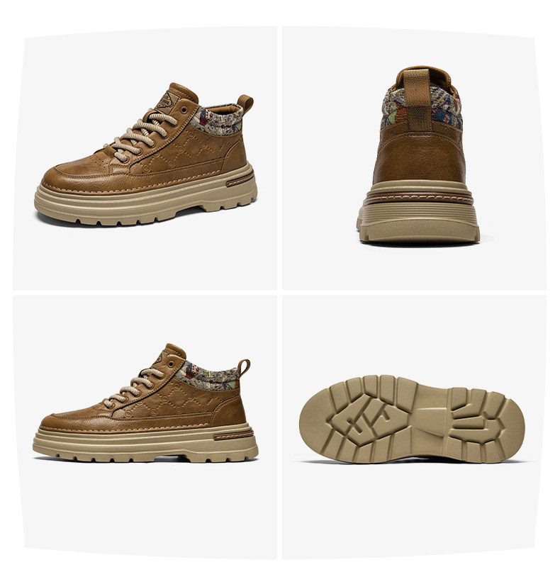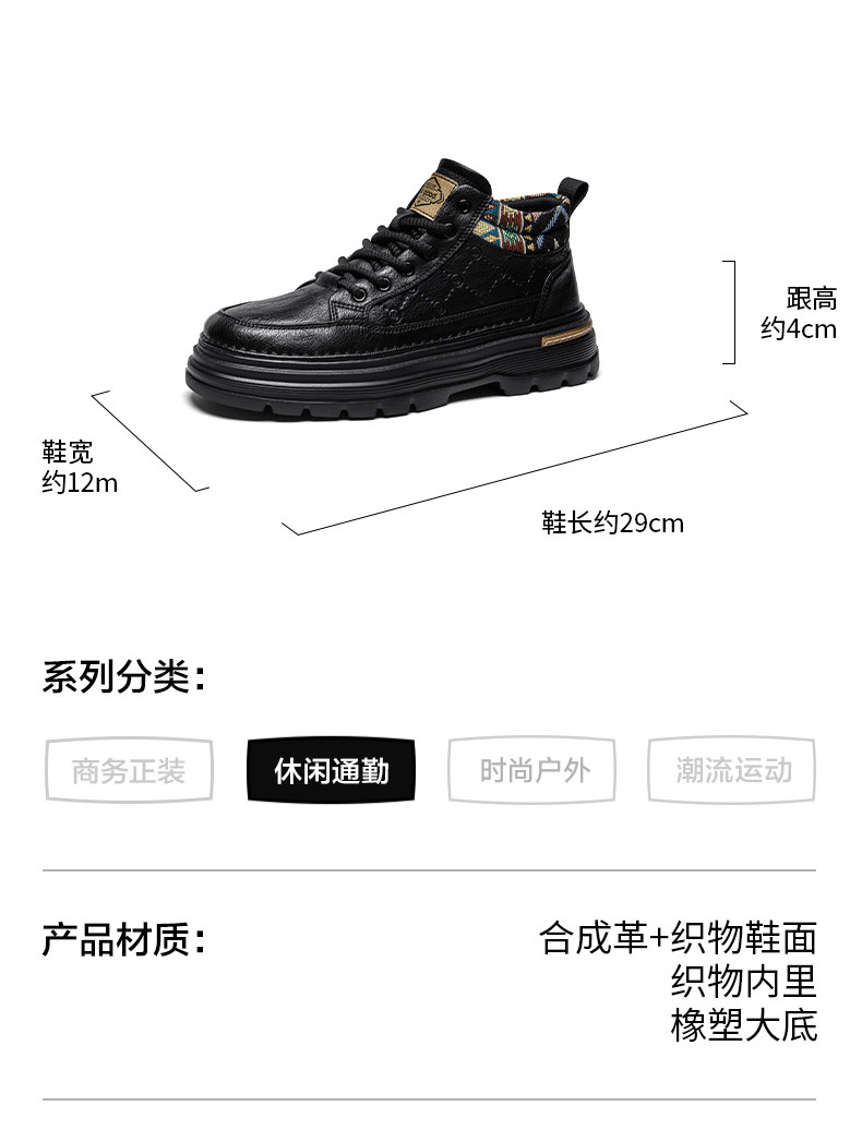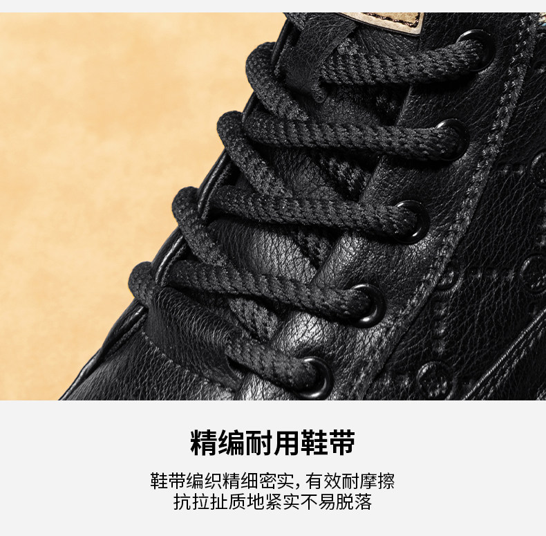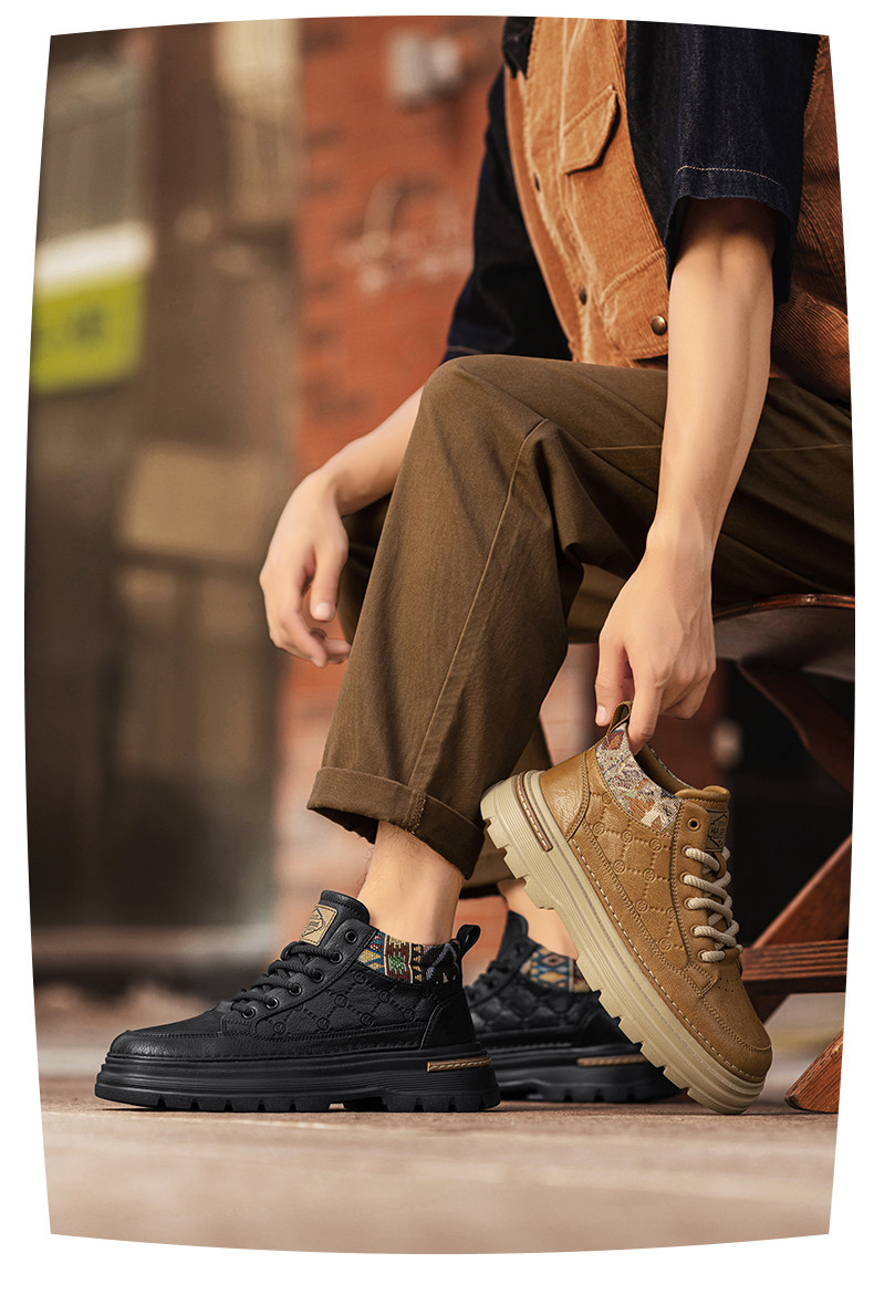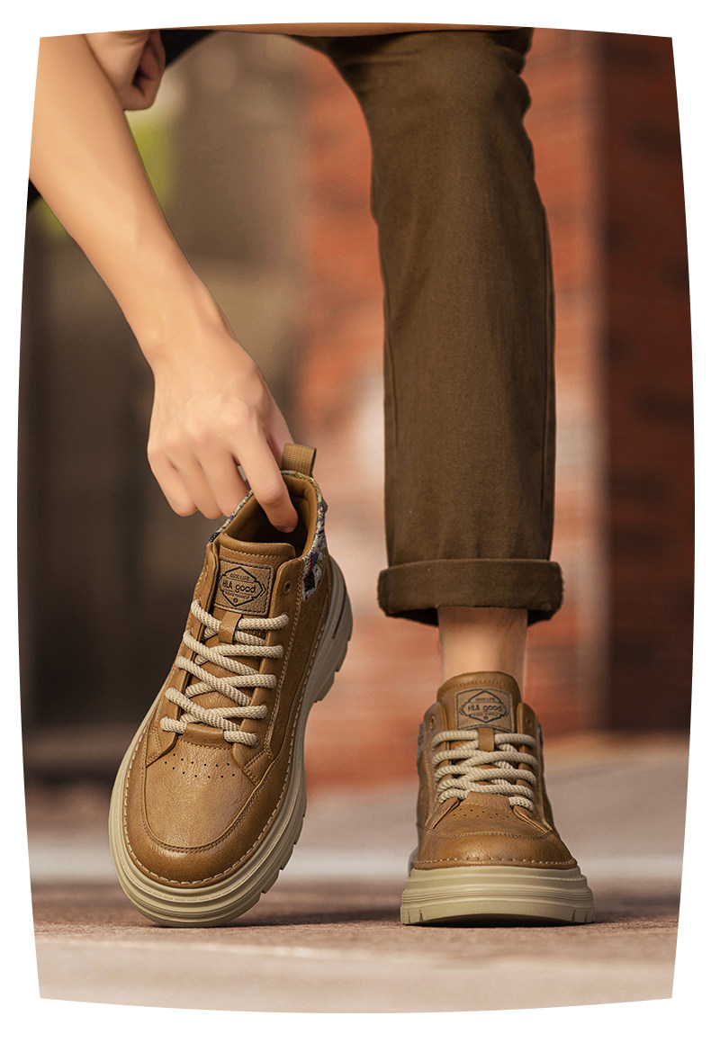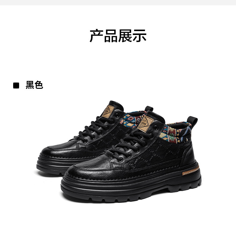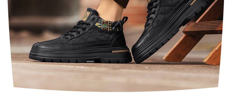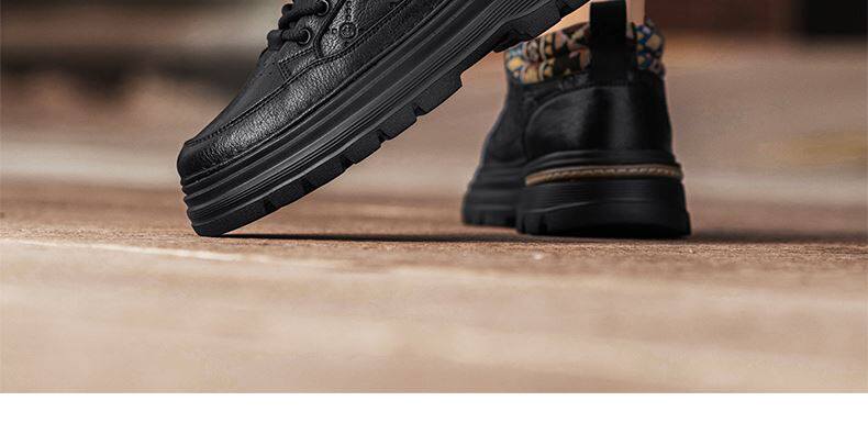 Heilan Home Men's Shoes Spring Leather Sports Casual Work Shoes Black High-Top British Style Thick-Soled Martin Boots