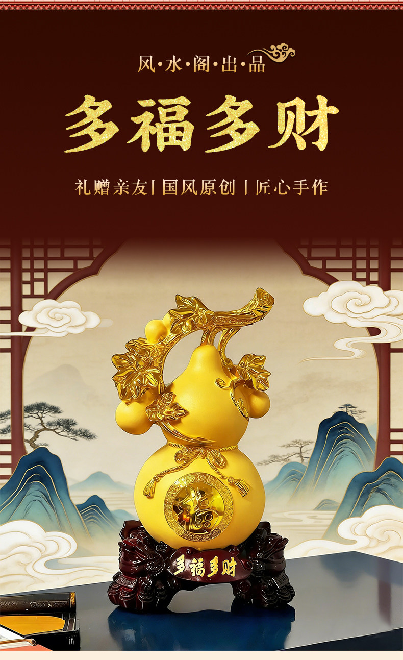 Taishan Direct Delivery Multi-Blessing and Wealth Gourd Ornament, Symbolizing Fortune and Prosperity, for Living Room Tv Cabinet, Wine Cabinet, Entryway, and Tabletop Decoration