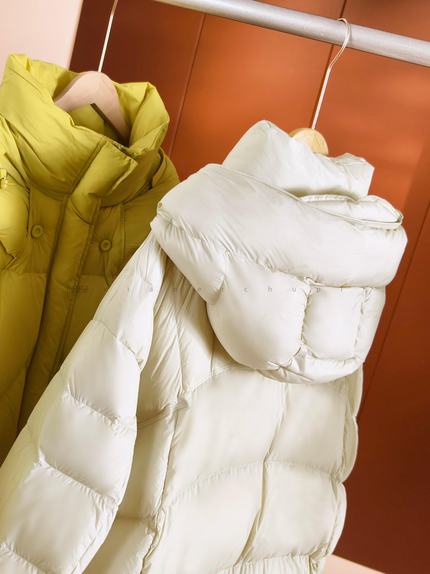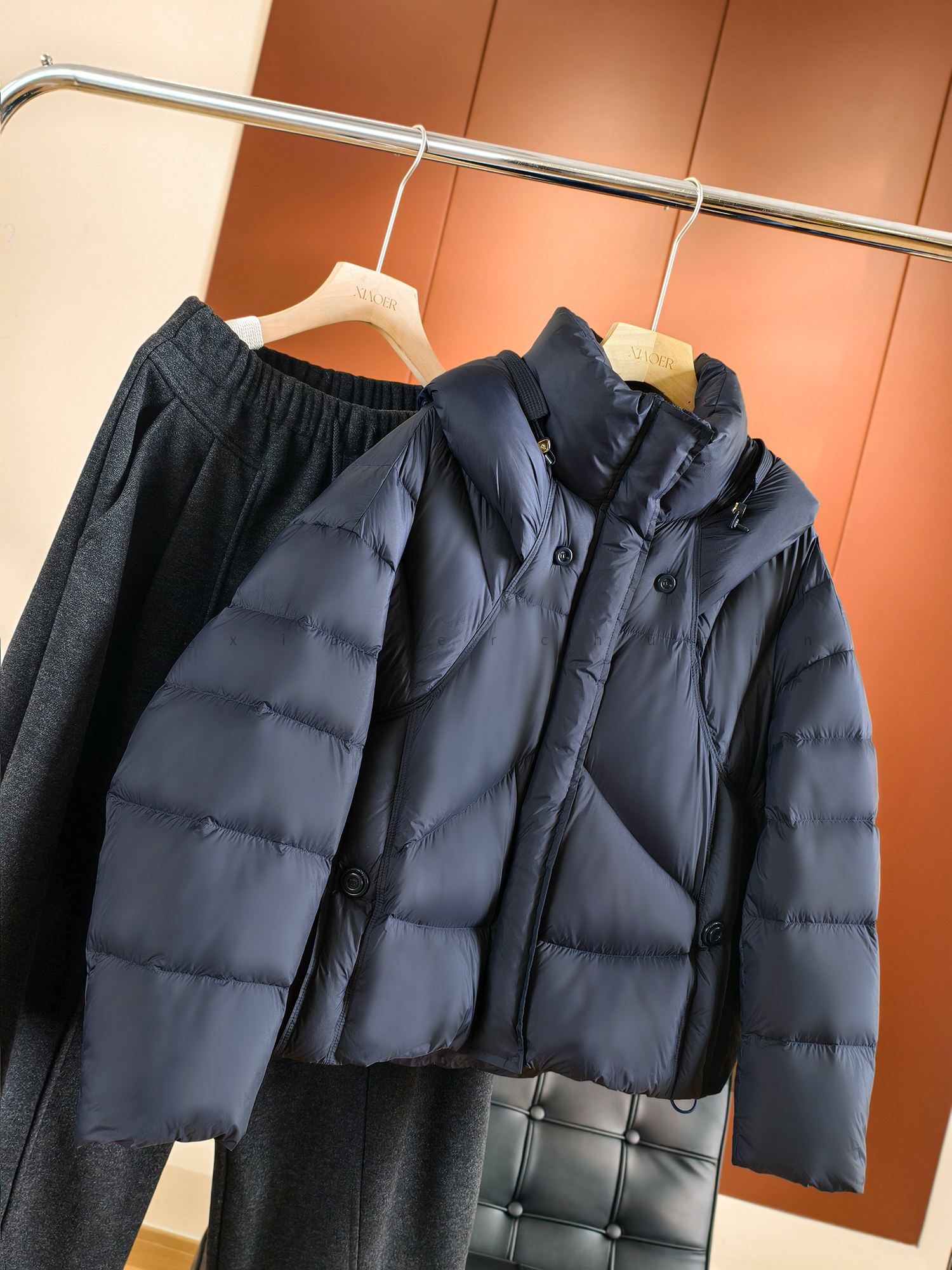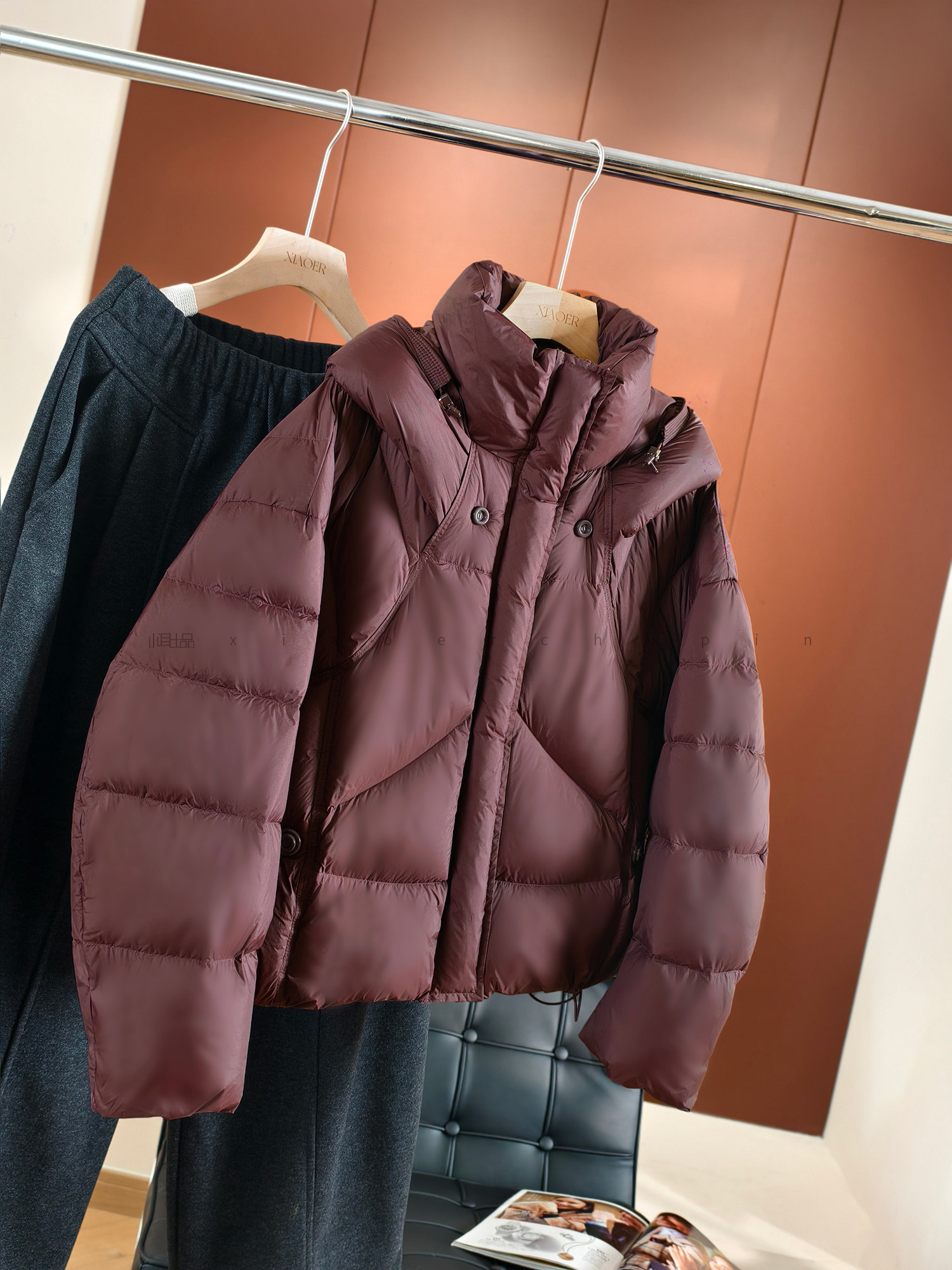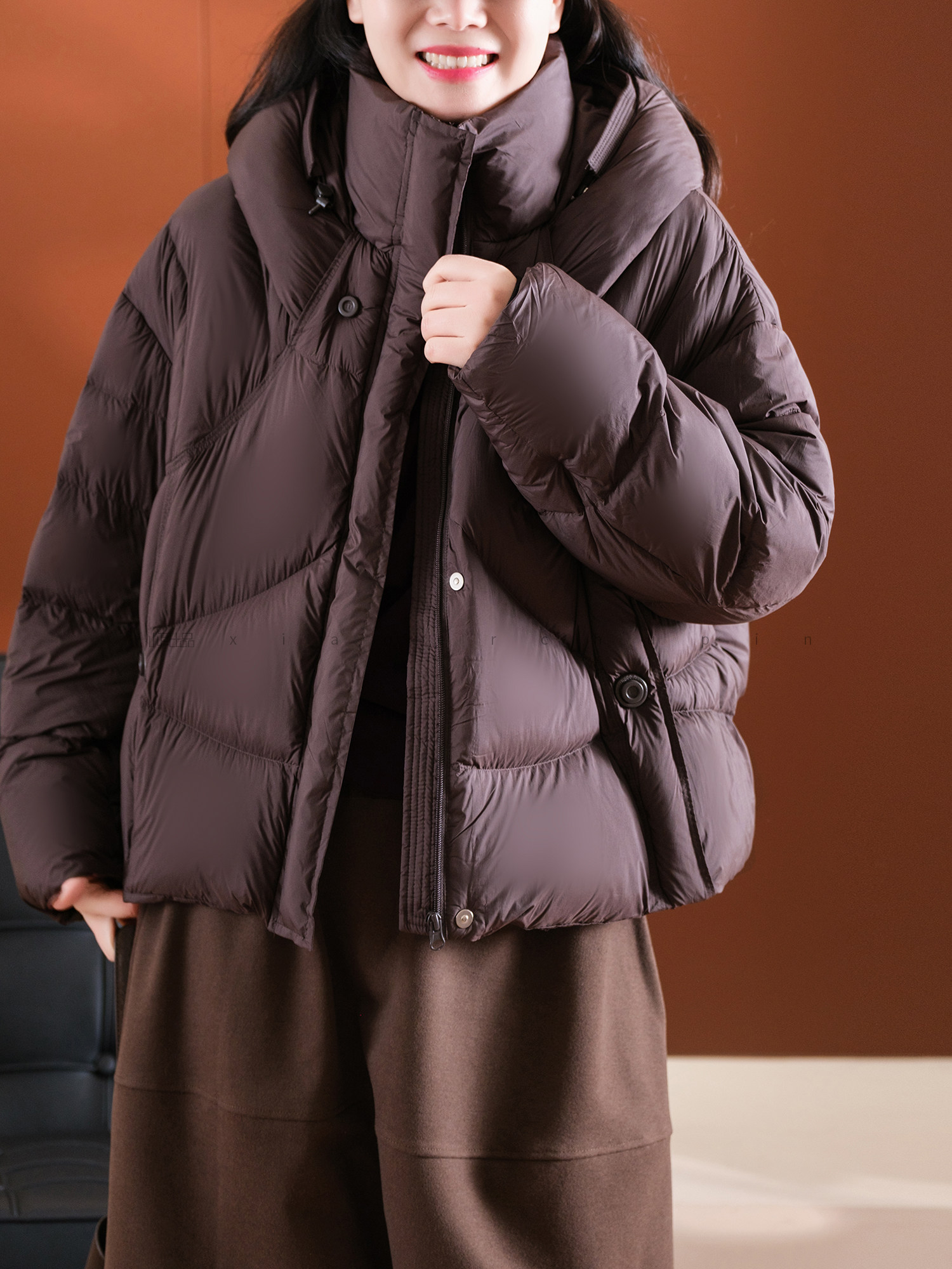 Produced by Xiaoer, fluffy and full! New national standard 90 duck down/cut and split/round button stand collar hooded down jacket