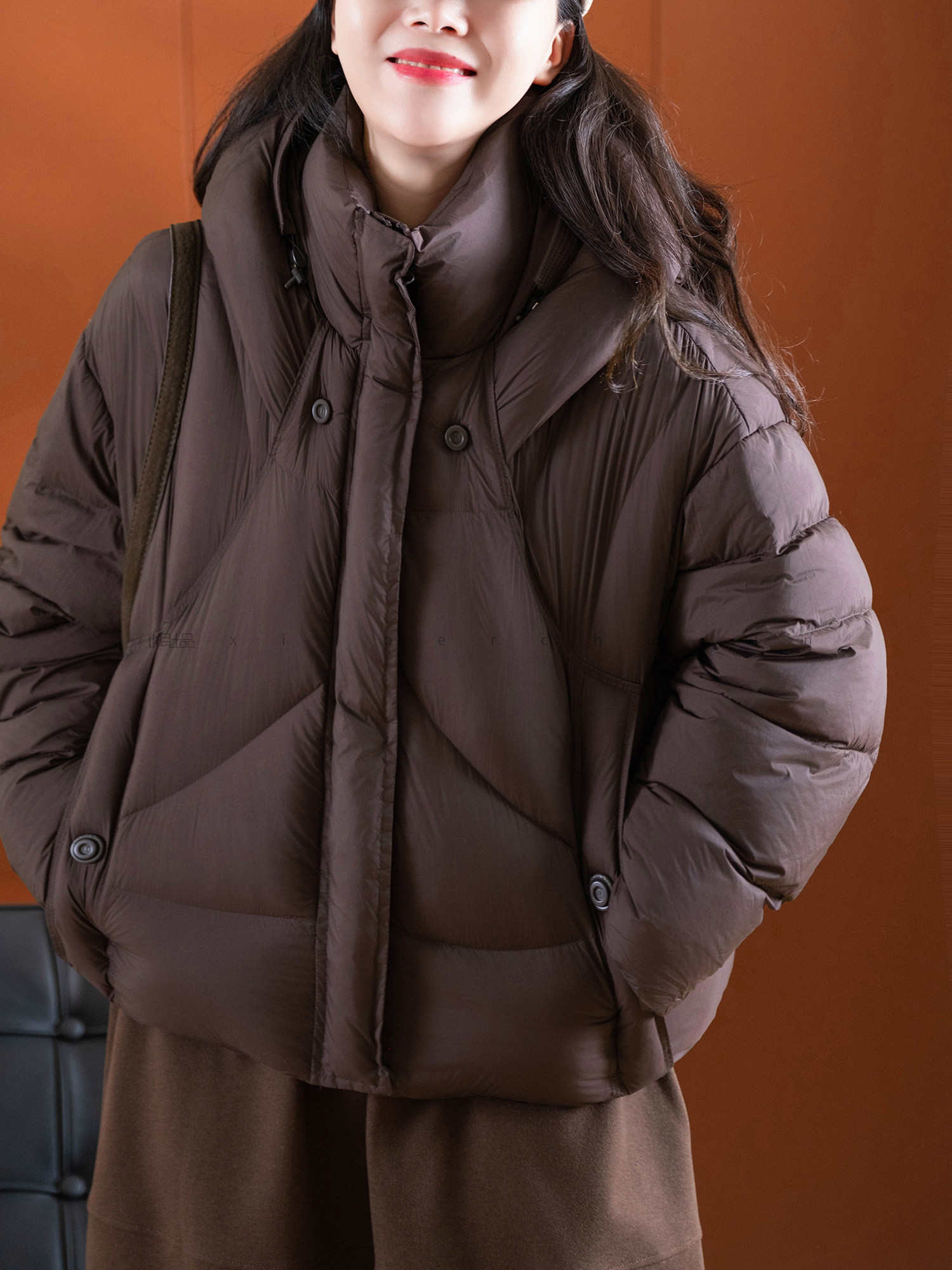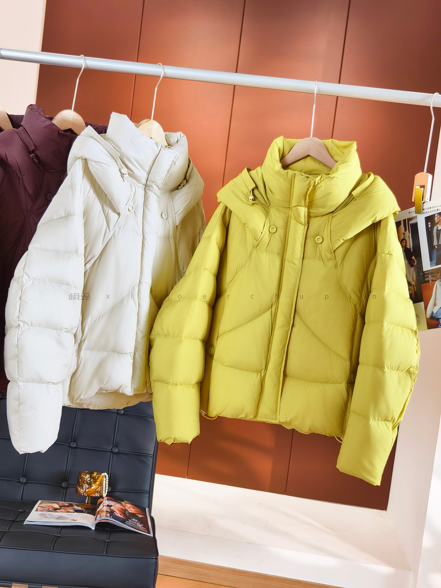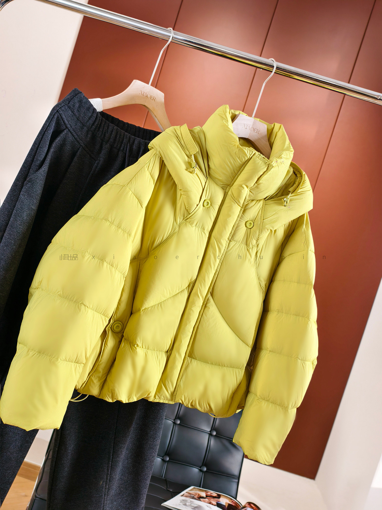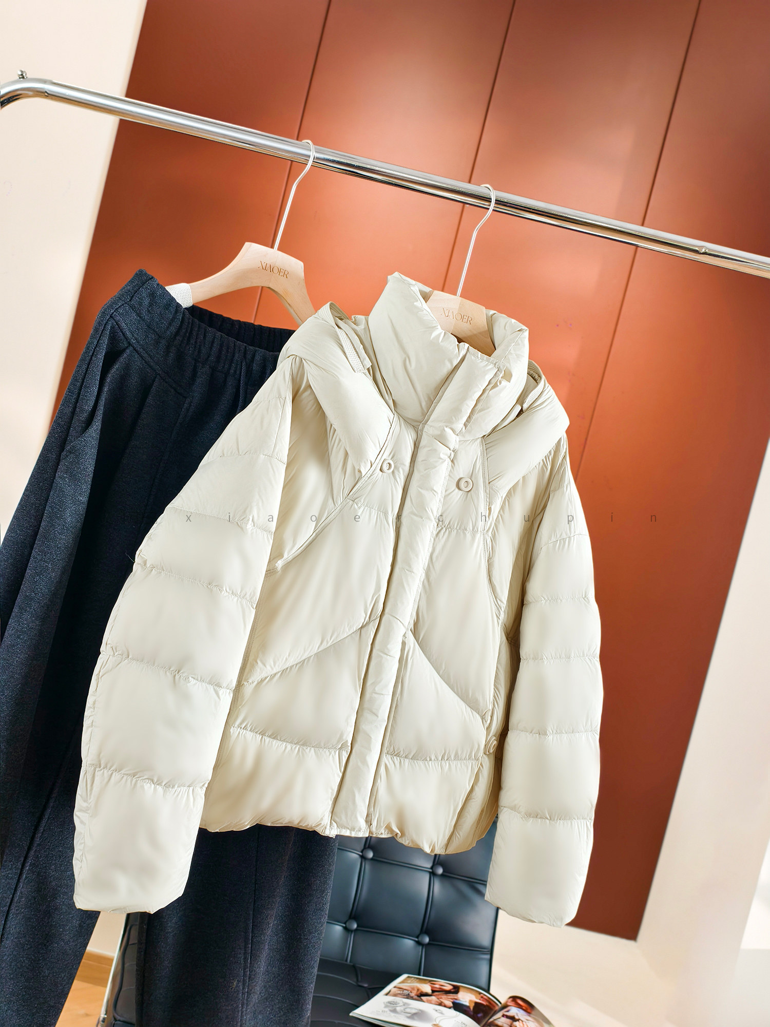 Produced by Xiaoer, fluffy and full! New national standard 90 duck down/cut and split/round button stand collar hooded down jacket